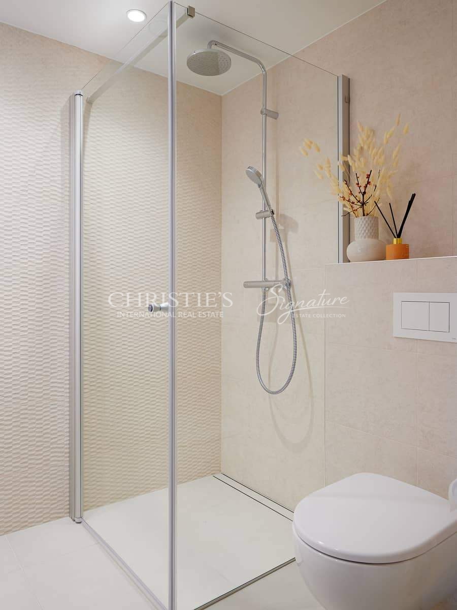 The building has energy class A, district heating with water-based floor heating, and an apartment-based heat recovery ventilation system. Temperature and ventilation can be conveniently controlled via a smart home system.
