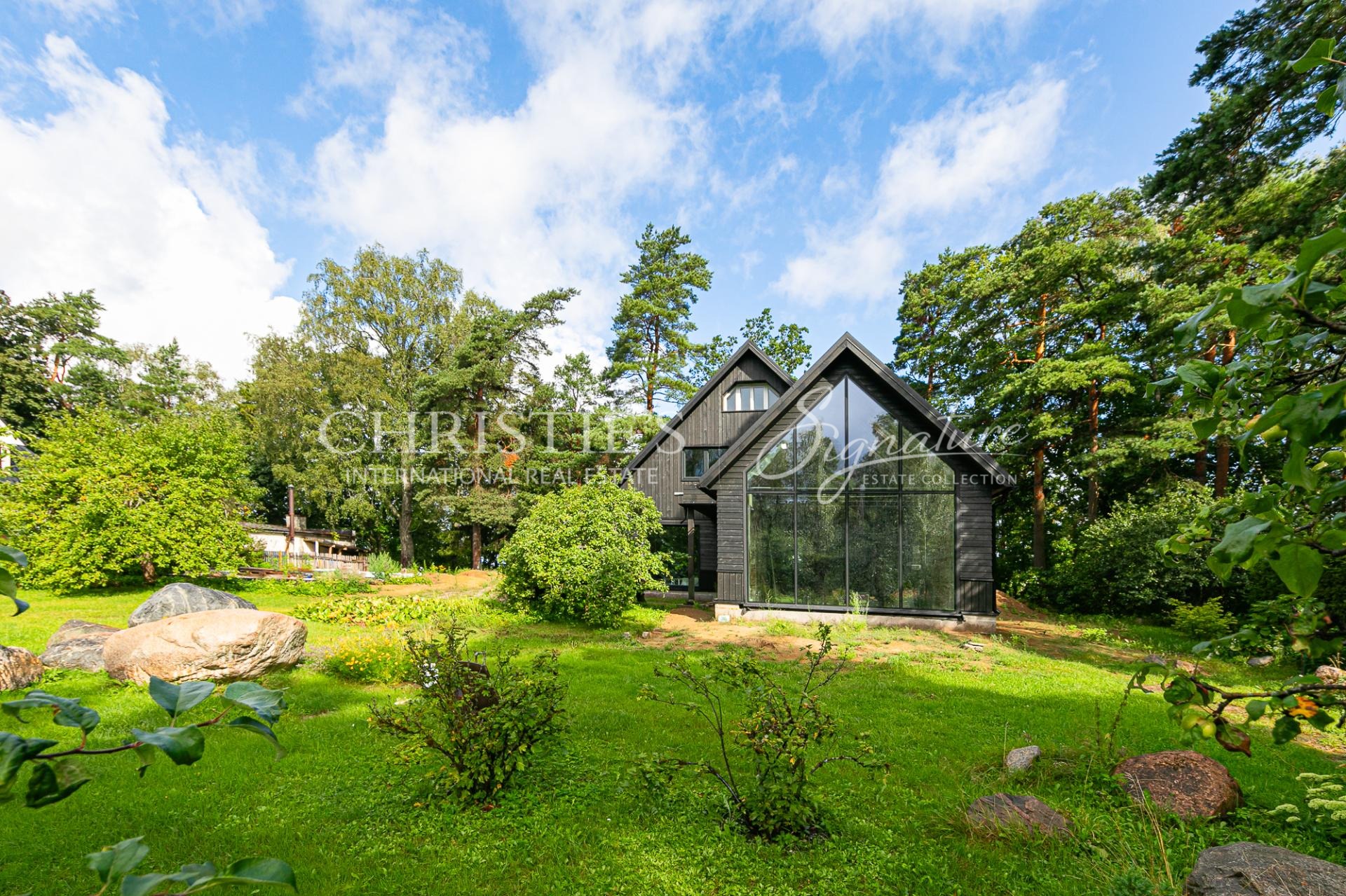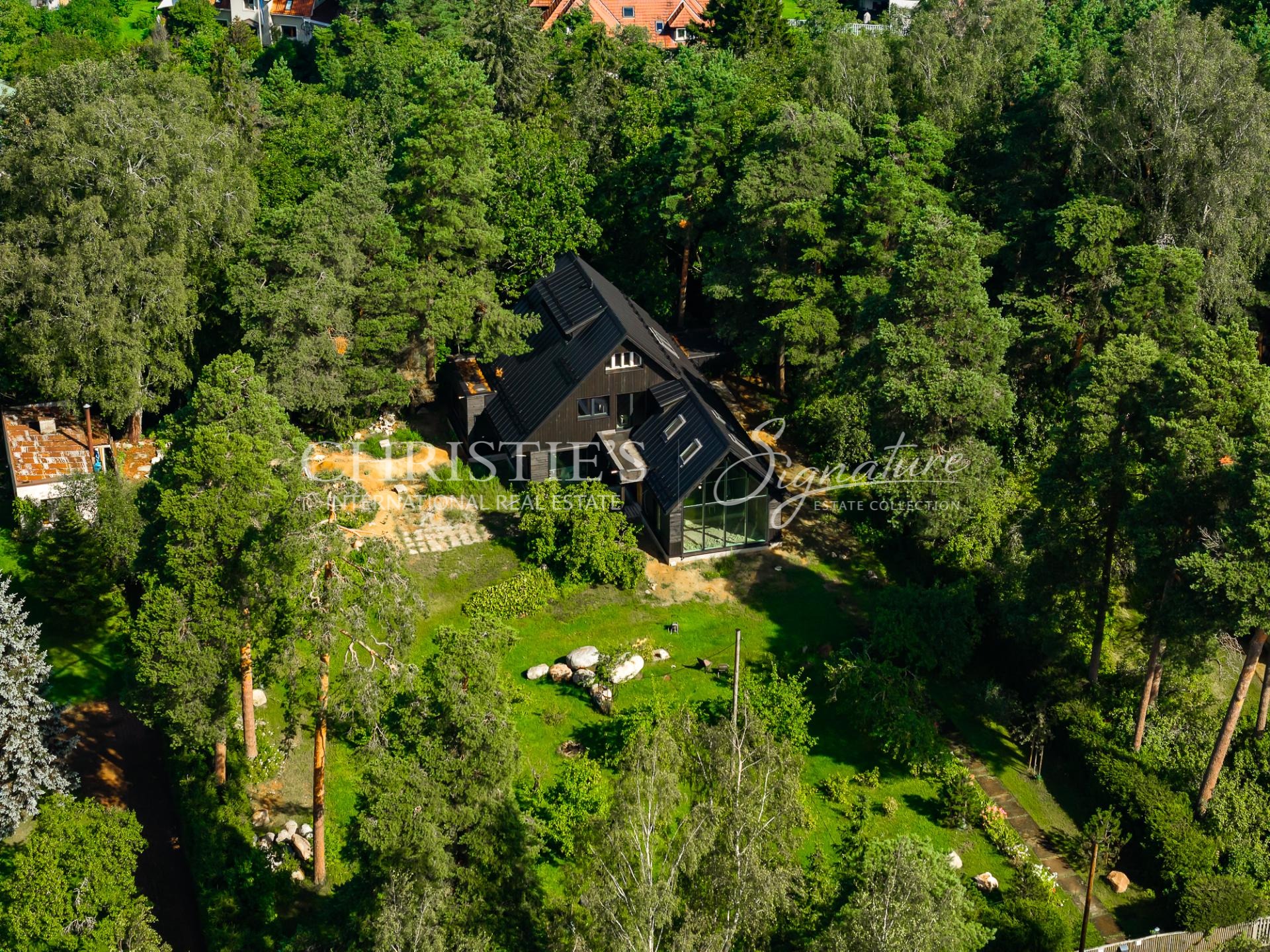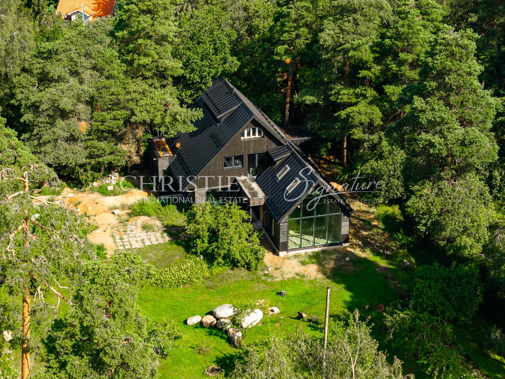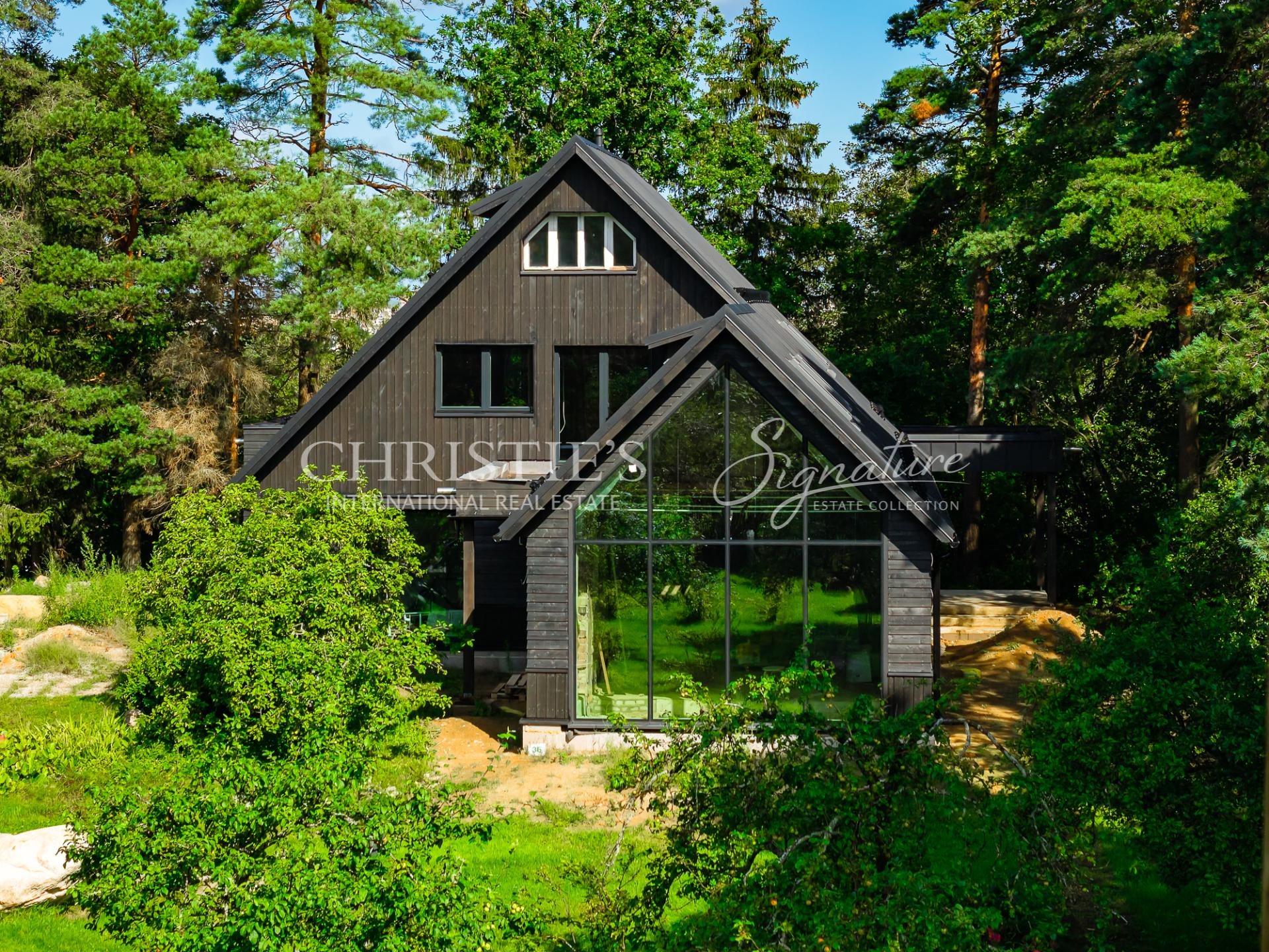 The architectural solutions of the house are detailed and high-quality, creating a strong relationship between interior and exterior spaces. The plot is surrounded by a mature and beautifully landscaped garden, ensuring greenery, tranquility, and privacy throughout the year.
