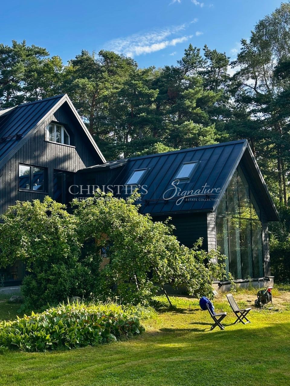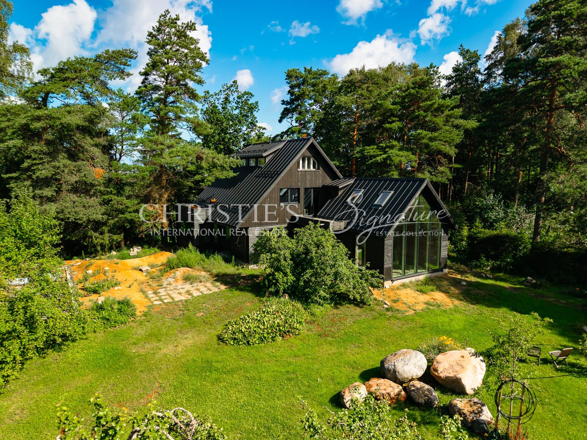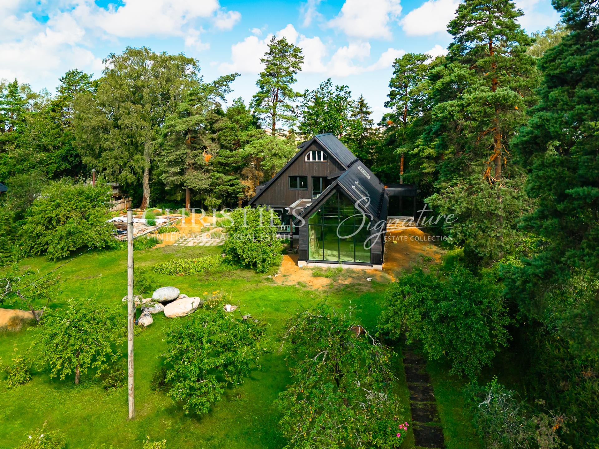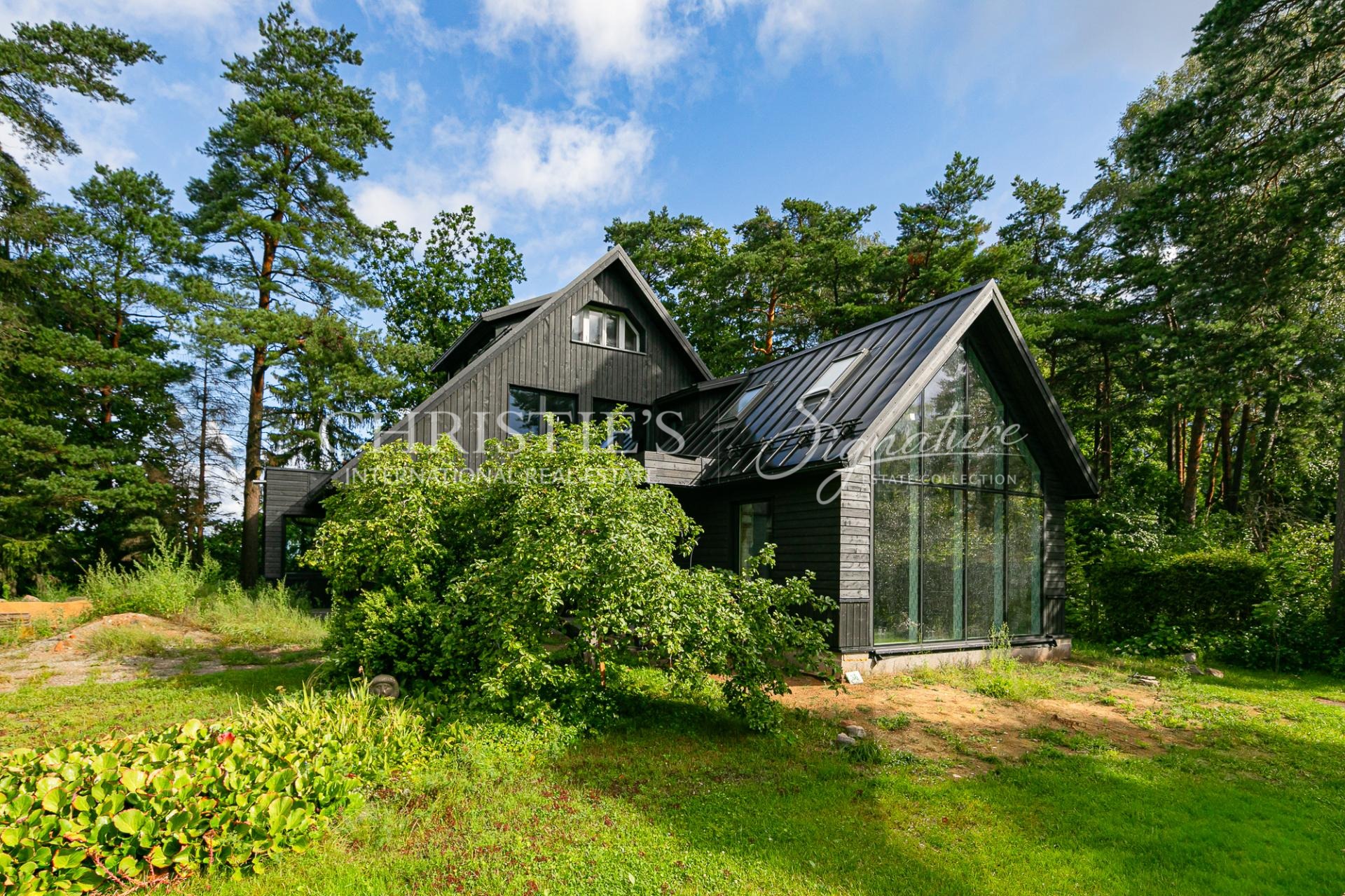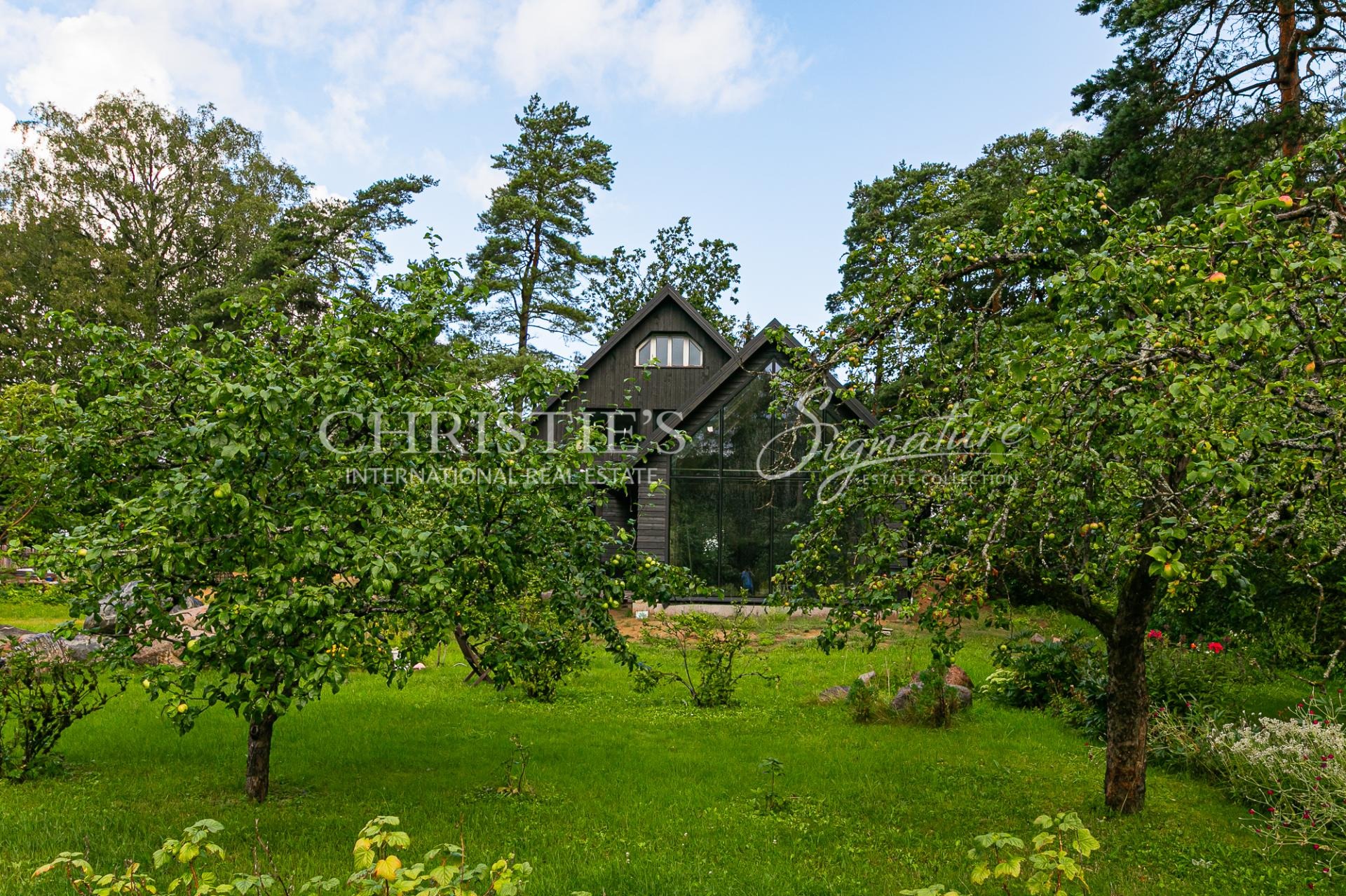 The architectural solutions of the house are detailed and high-quality, creating a strong relationship between interior and exterior spaces. The plot is surrounded by a mature and beautifully landscaped garden, ensuring greenery, tranquility, and privacy throughout the year.