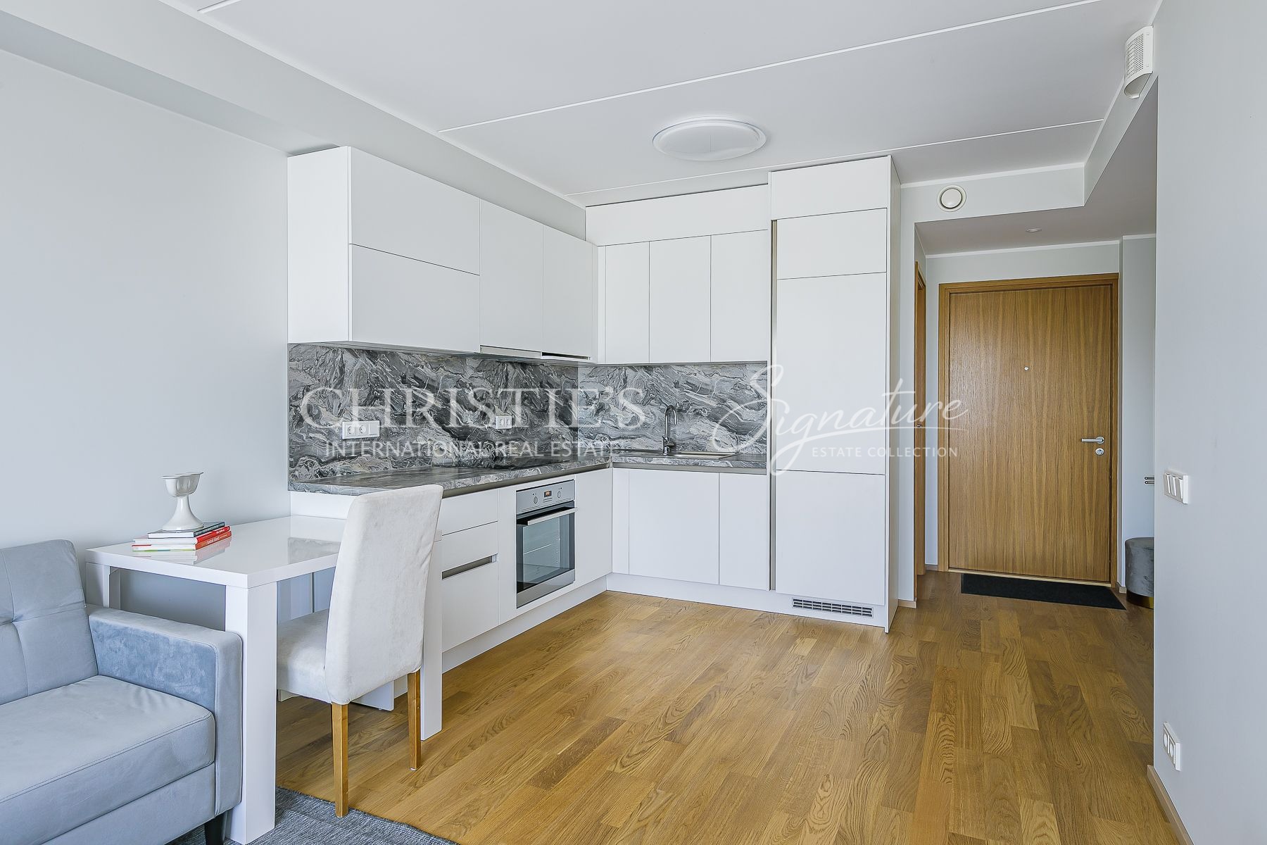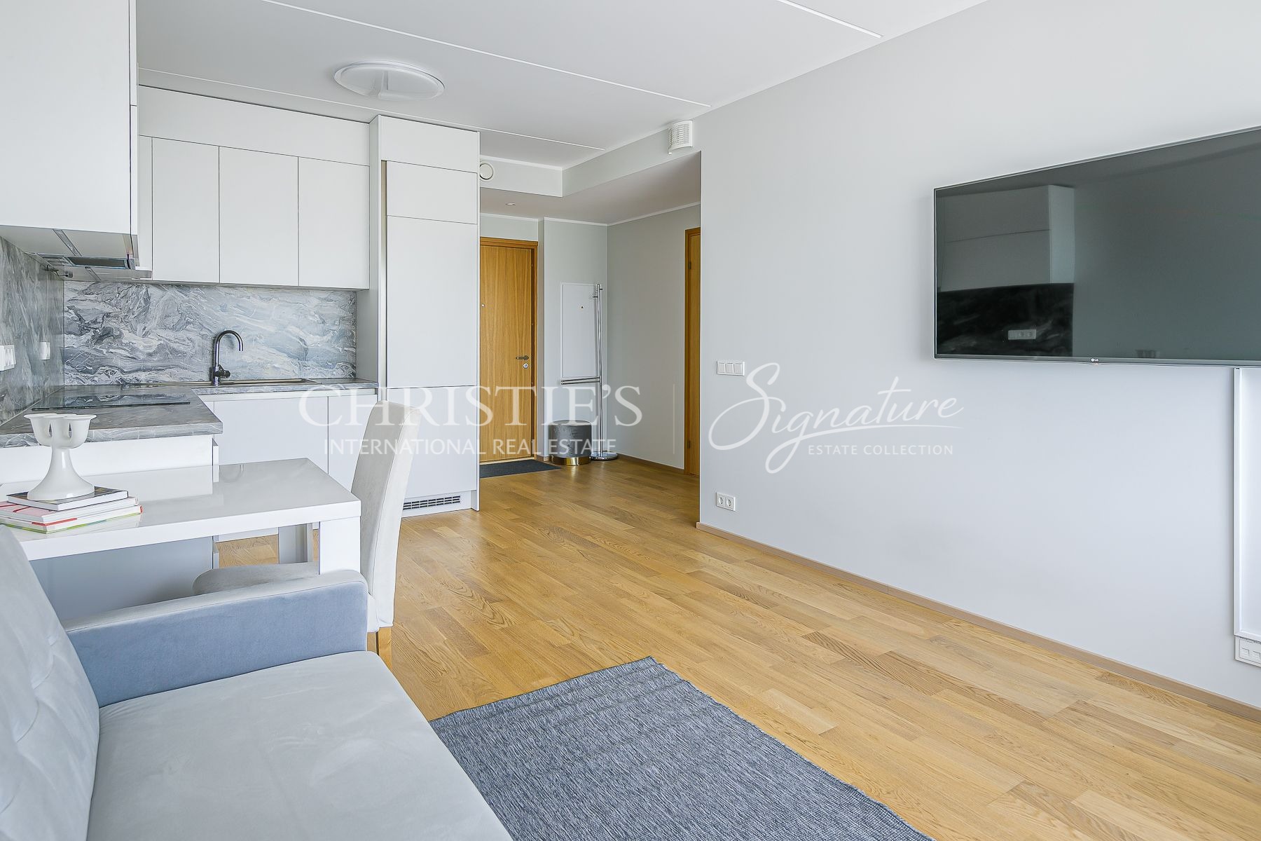 This property includes a cozy living-room with an open kitchen (21,8 m2), bedroom with a spacious closet (10,4 m2), spacious bathroom with a washing machine and a shower (5,4 m2), entrance area and a separate walk-in closet/storage room.