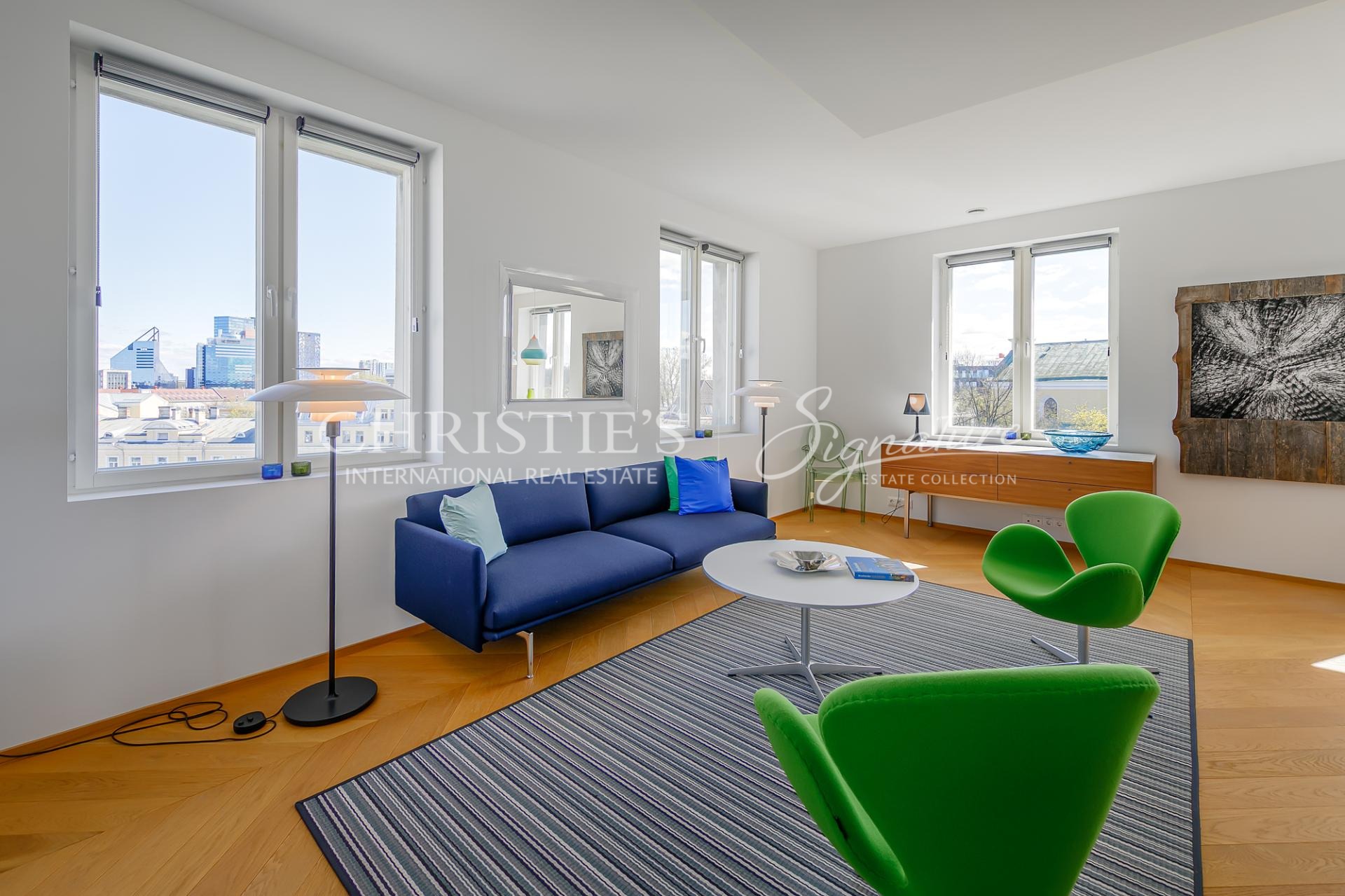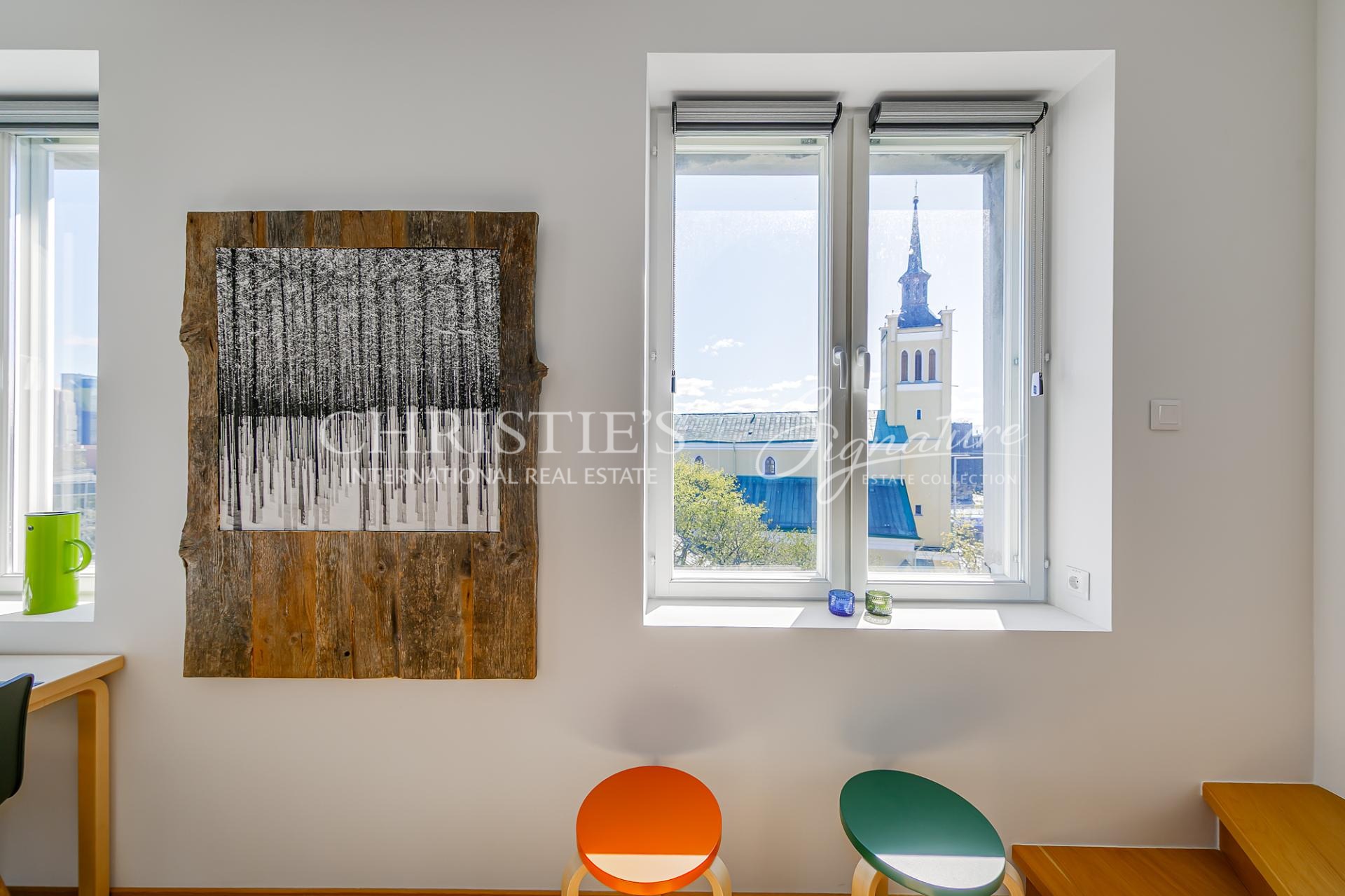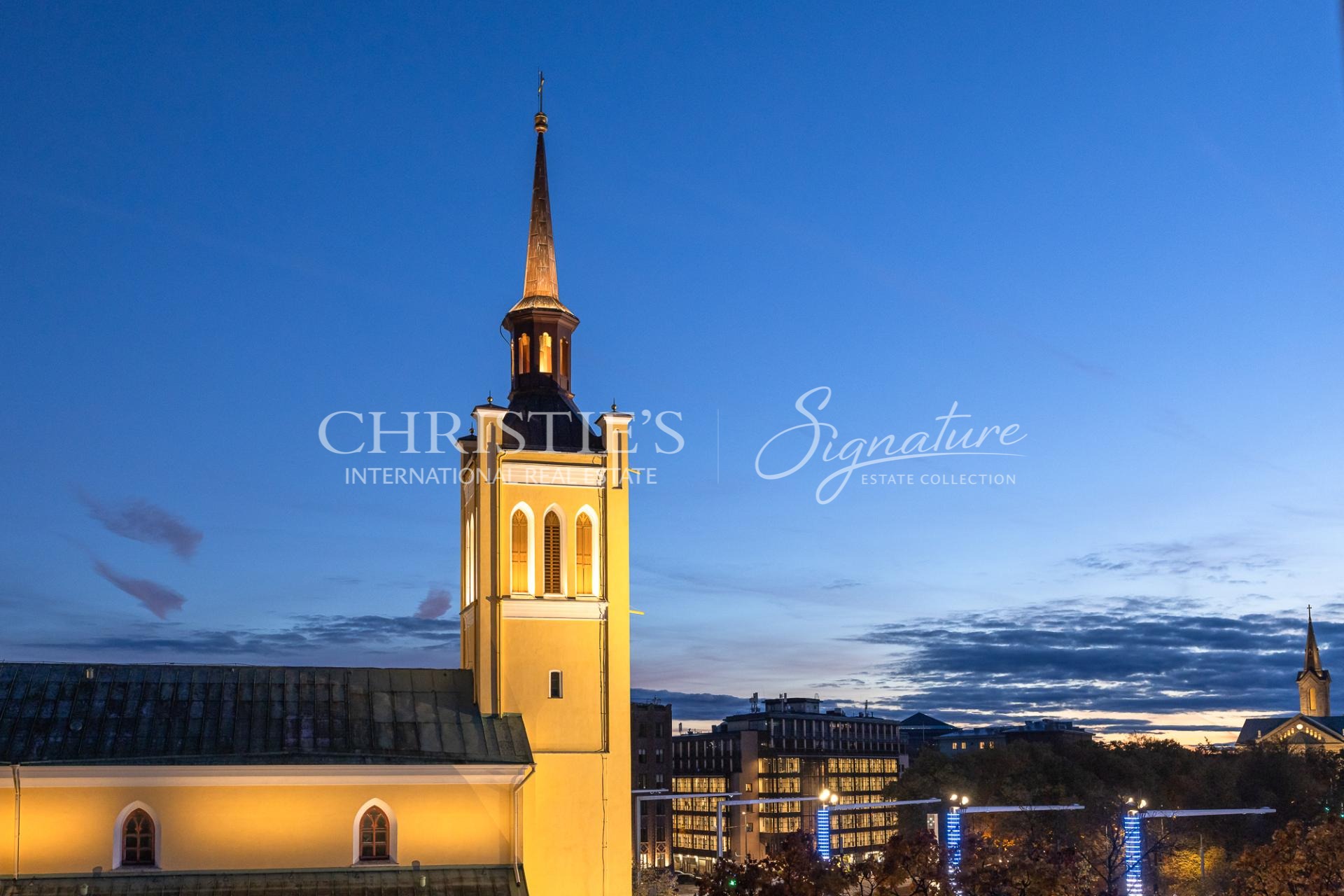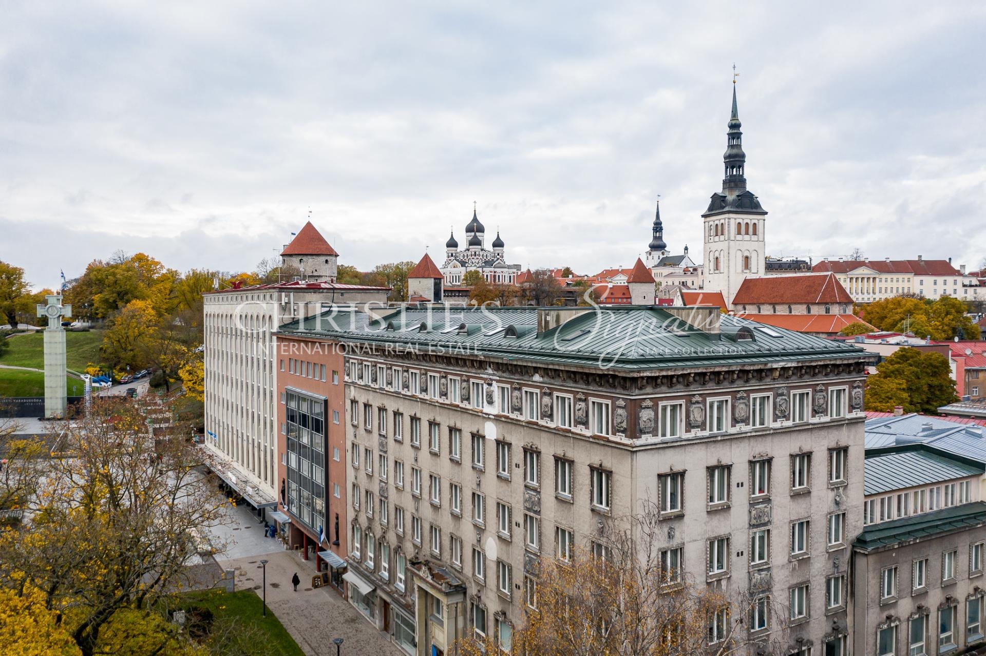 This exclusive 80,5 m² penthouse apartment with 83,6 m² total floor area is spread out over two floors and is for sale in a prime location in an iconic building at the edge of Tallinn’s Old Town – where unique dining, a rich cultural and educational environment and the medieval Old Town as a UNESCO World Heritage Site meet. The apartment offers unrivalled and unique views of Freedom Square and benefits from a direct south and east exposure meaning that it is full of light.