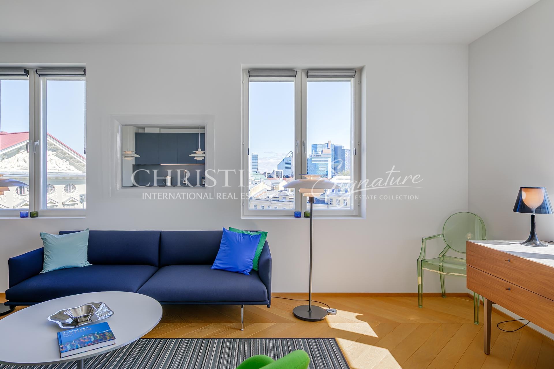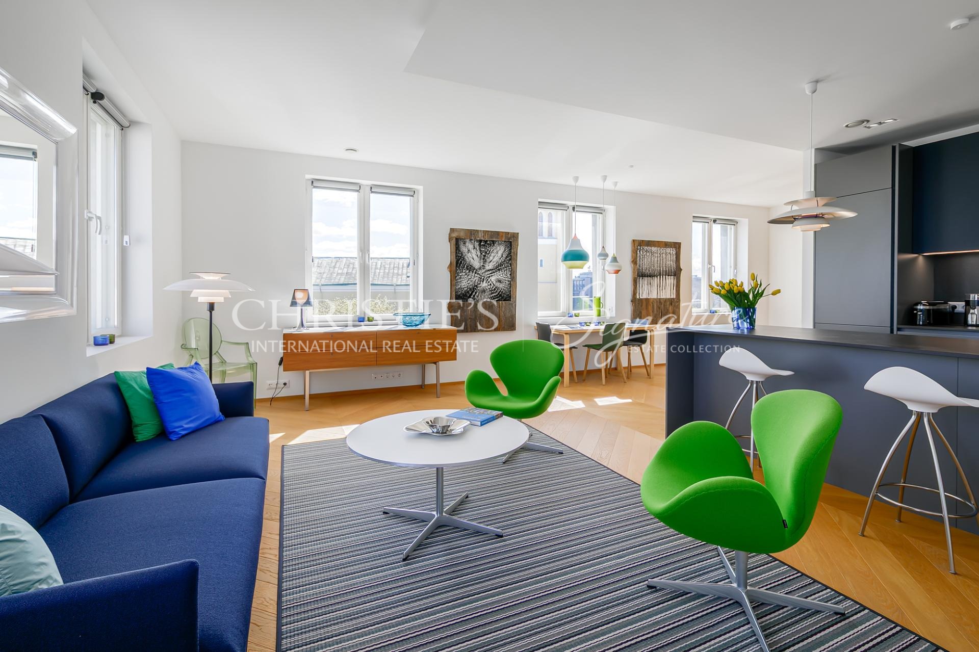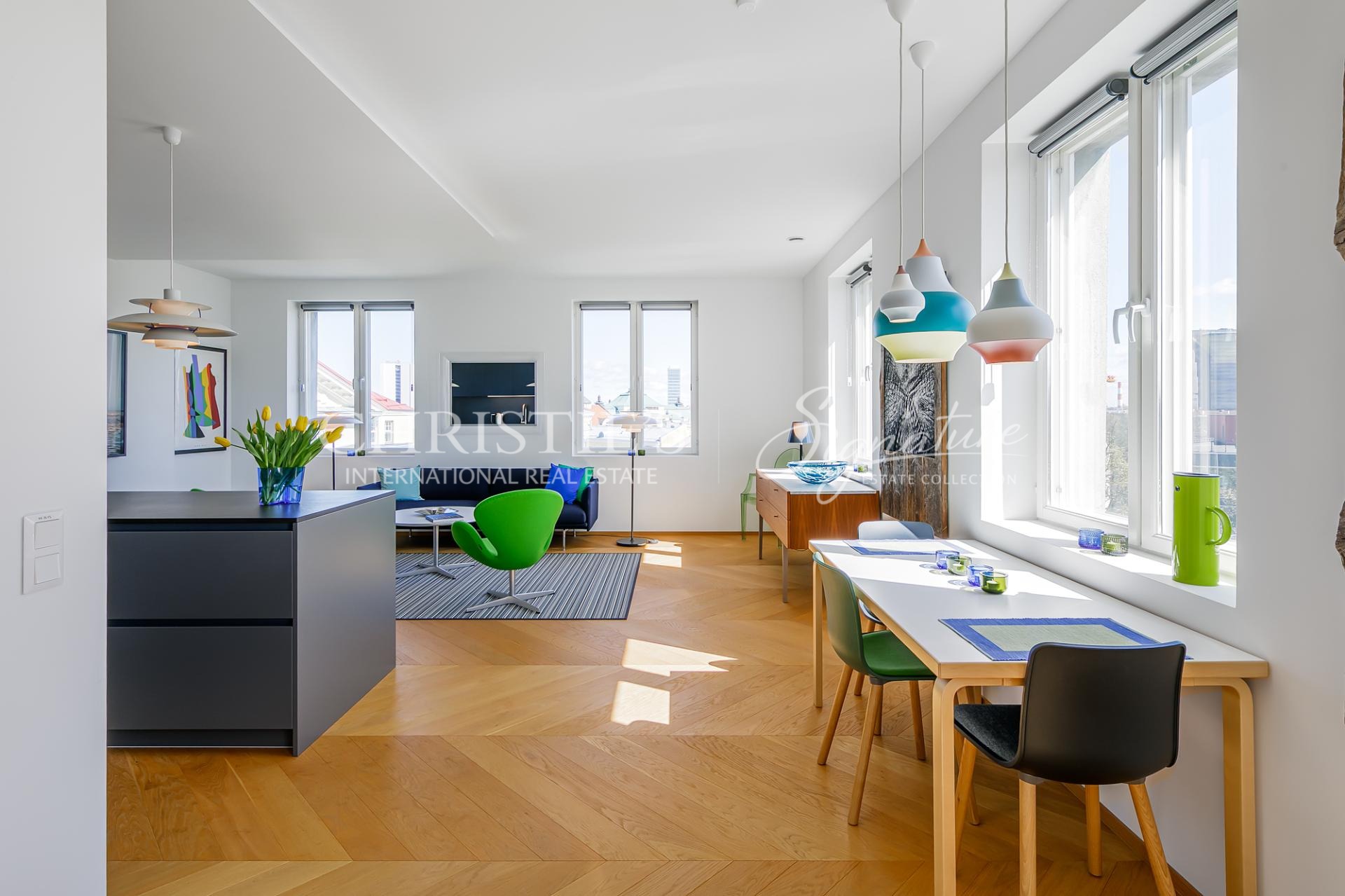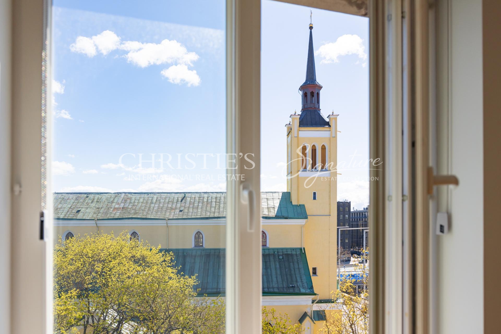 This exclusive 80,5 m² penthouse apartment with 83,6 m² total floor area is spread out over two floors and is for sale in a prime location in an iconic building at the edge of Tallinn’s Old Town – where unique dining, a rich cultural and educational environment and the medieval Old Town as a UNESCO World Heritage Site meet. The apartment offers unrivalled and unique views of Freedom Square and benefits from a direct south and east exposure meaning that it is full of light.