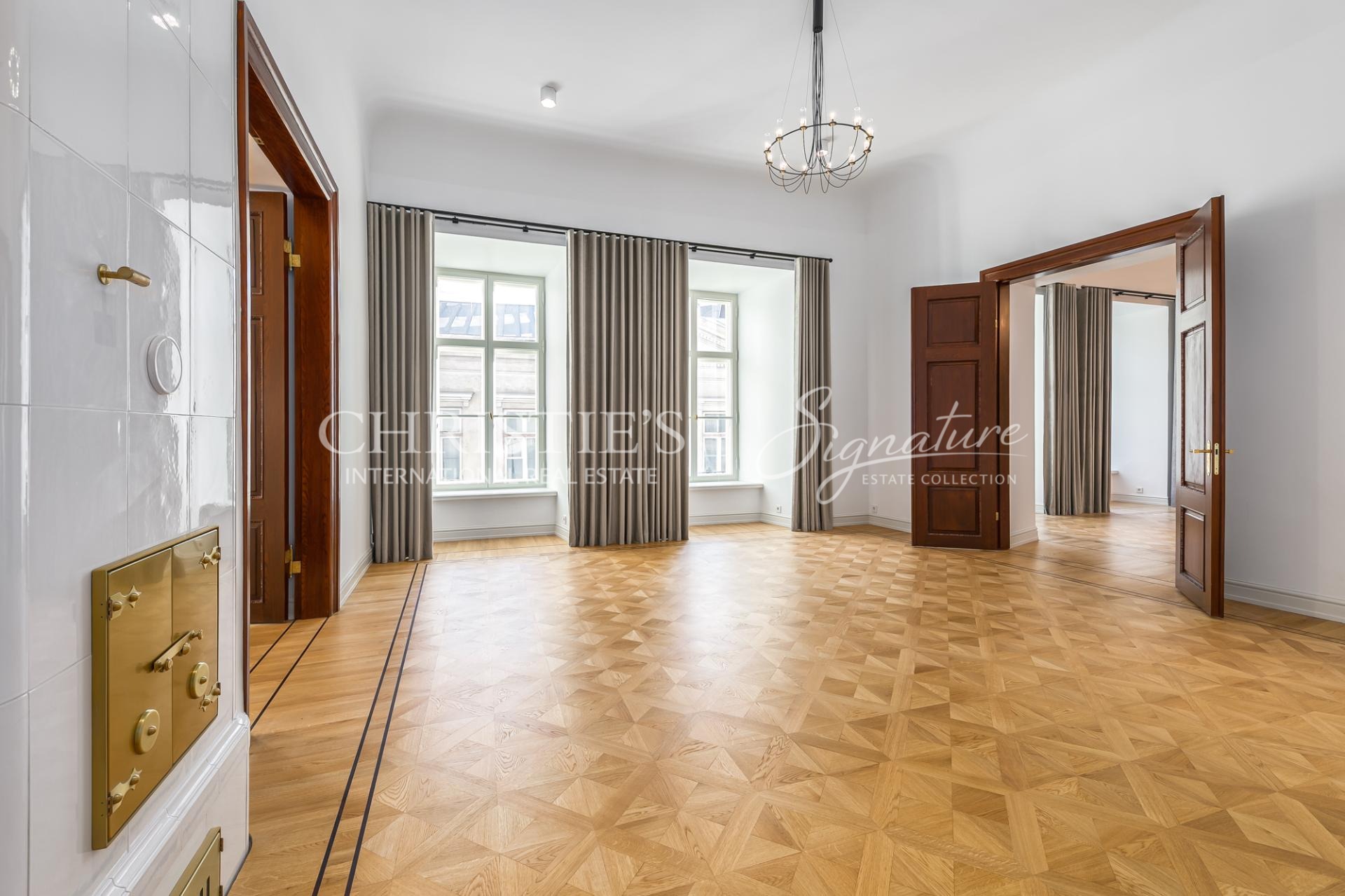 This unique four-bedroom apartment with high ceilings that covers the whole second floor, with a large living room, offers everything you could dream of for a luxurious old town life.