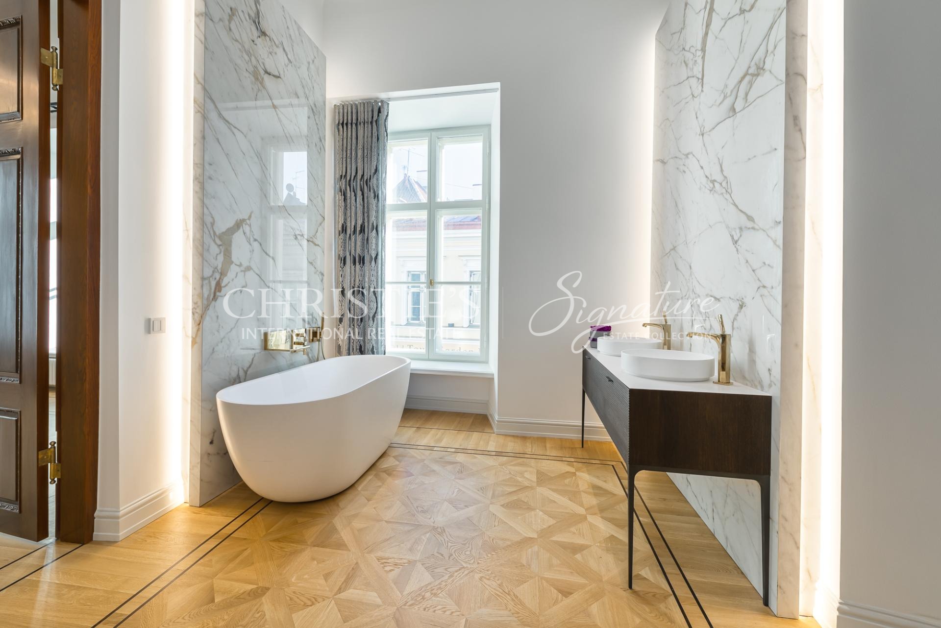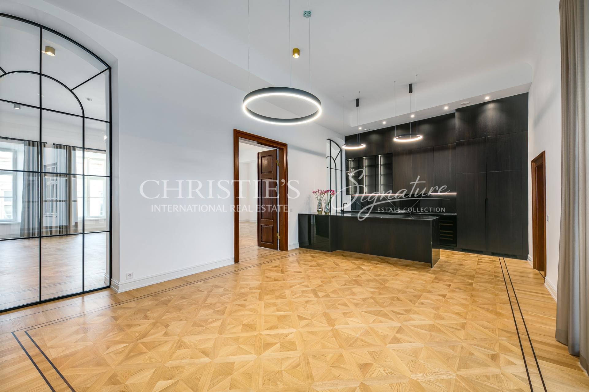 The apartment is equipped with high-quality furniture, kitchen furniture and kitchen appliances. Grand double-sided doors, natural parquet and underfloor heating based on city central heating.