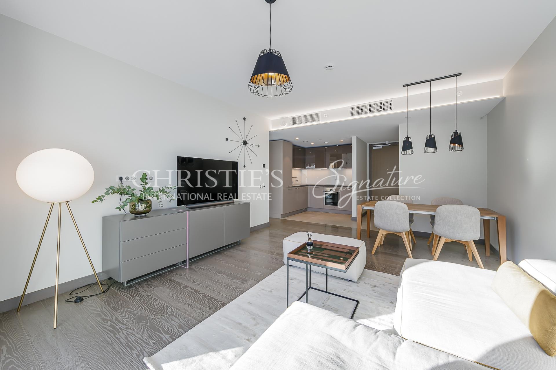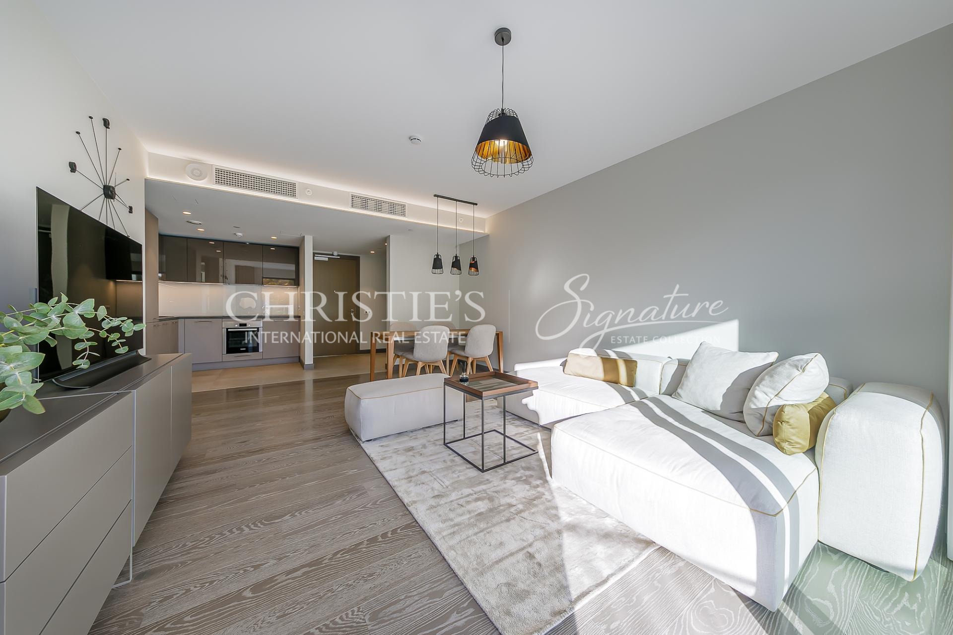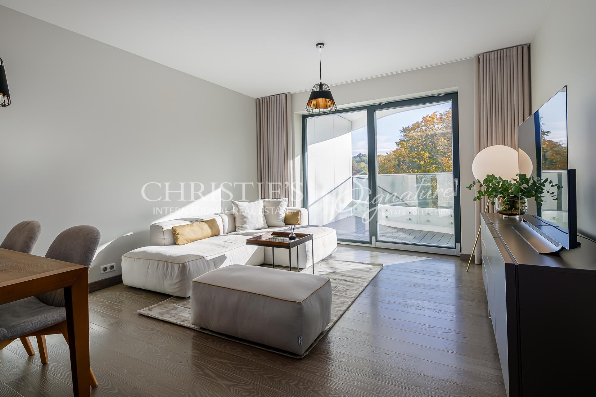 The interior trim of this property has been done with the use of high quality and premium class interior materials. Floors of the entrance hall, kitchen and bathroom are covered with practical ceramic tiles. Floors of the living-room and bedrooms are covered with natural oak parquetted flooring. Floor of the balcony is covered by very practical and stylish brown ECO-Deck flooring. Apartment has an air-conditioning.