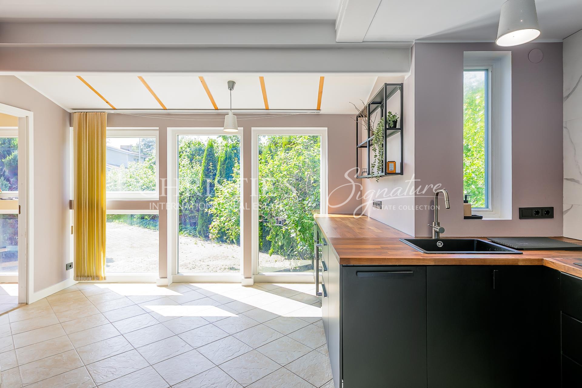 The house is located on a quiet cul-de-sac in Pringi village, Viimsi. The surroundings consist only of private houses and pleasant neighbors, ensuring a peaceful living environment. All necessary amenities are located a few kilometers away in Viimsi center: schools, kindergartens, cinema, Viimsi SPA, sports complex, and various grocery stores and restaurants. Good bus connections with Viimsi center and the city center, the nearest stop is about 300m away. The sea is 500m away.