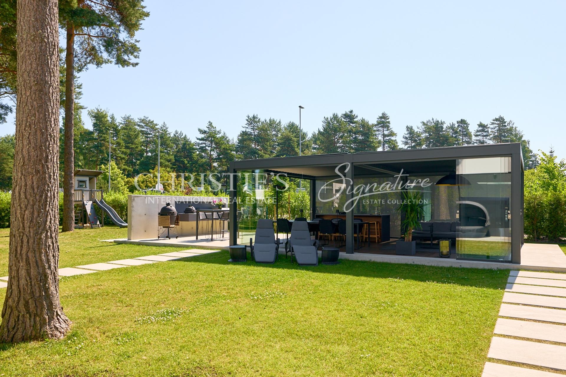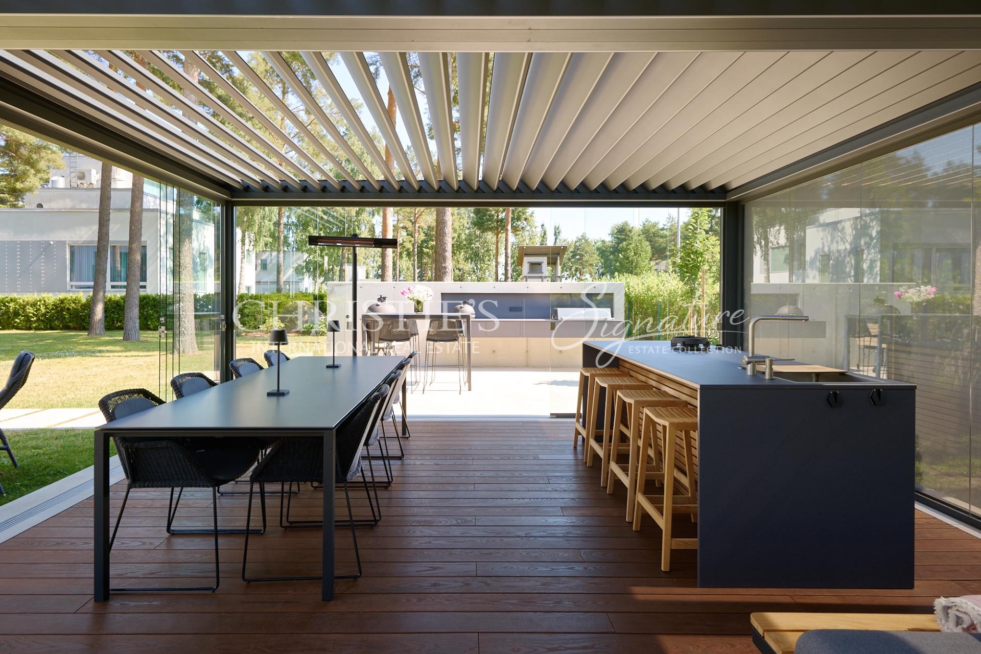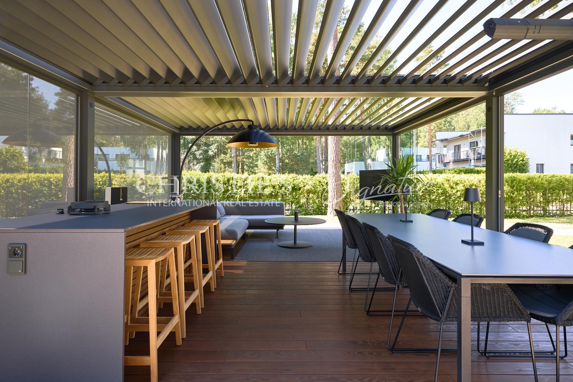 The garden has been professionally designed and meticulously maintained, offering both visual beauty and practicality. A newly completed pergola with an outdoor kitchen creates a perfect setting for summer dinners, entertaining guests, and spending time with family. The courtyard is private.