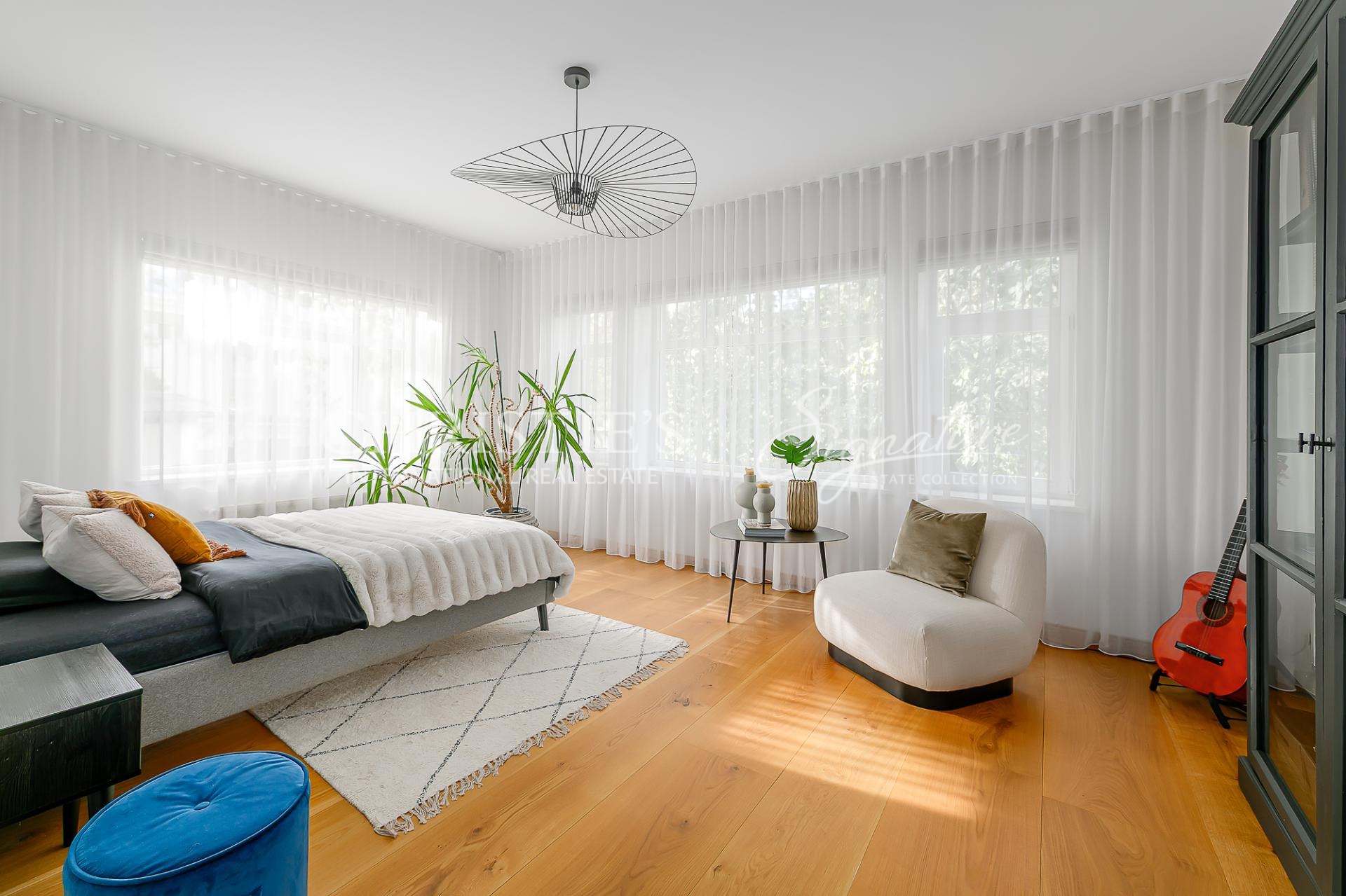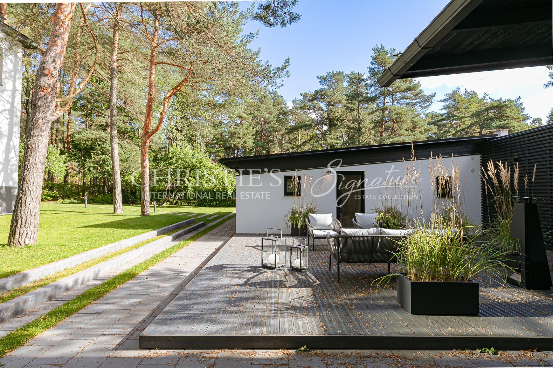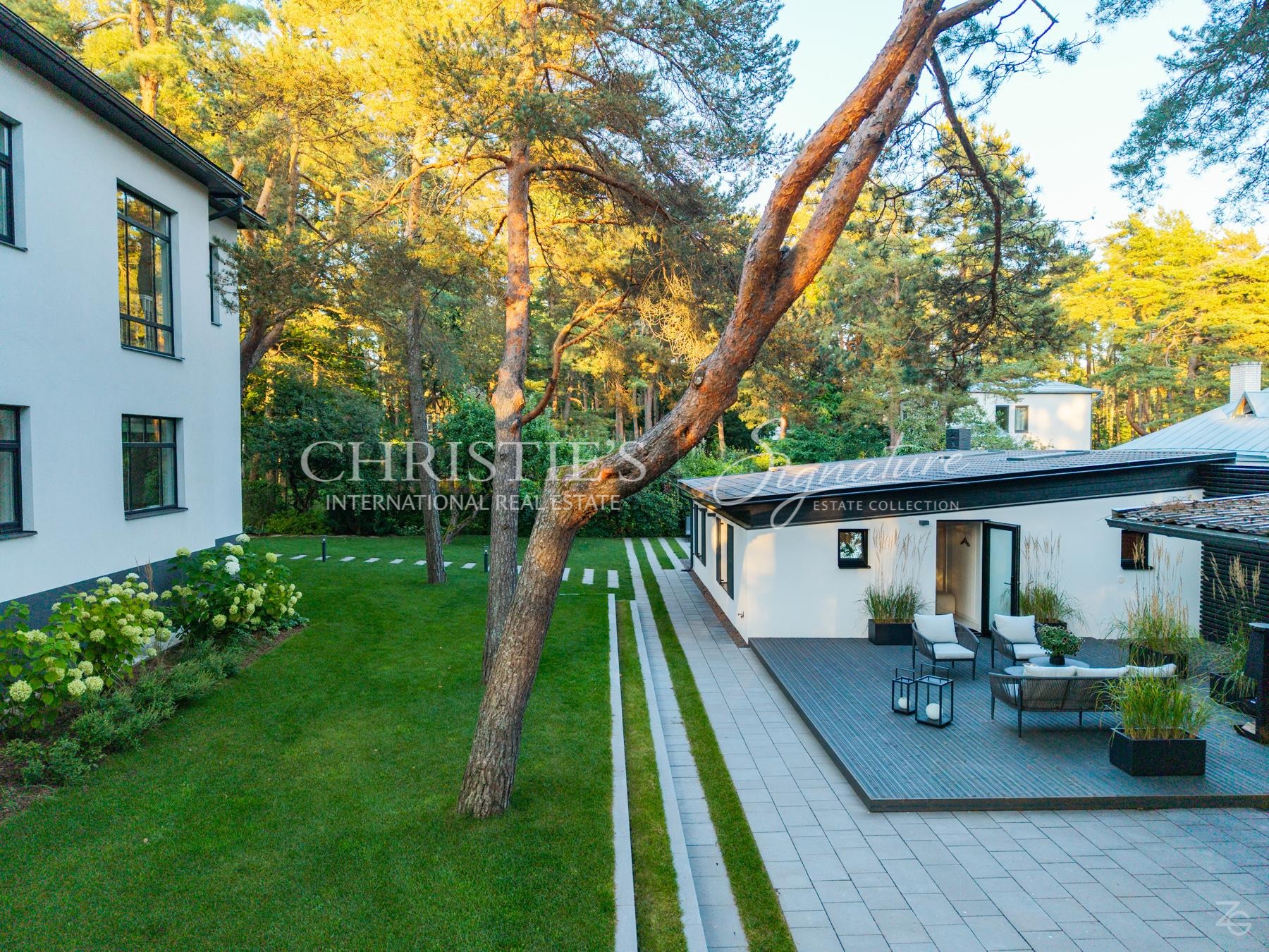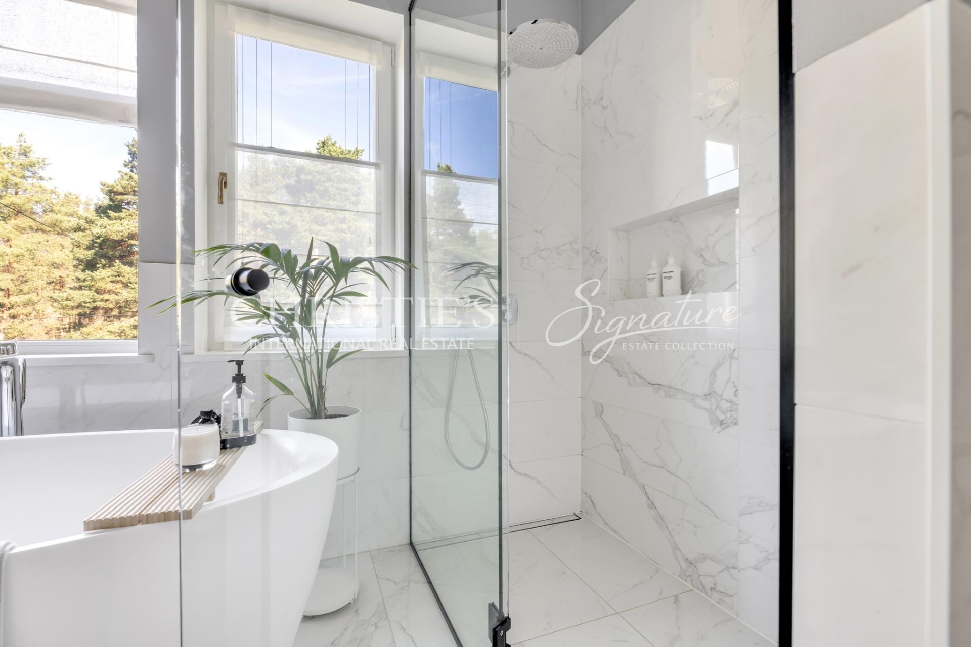 Backyard area features additionally a separate storeroom, multiple terraces and private seating zones, perfect for outdoor living surrounded by nature. This fully furnished property is ready to move in. Located on a quiet street, bordered by a beautiful pine forest and with excellent quick access to the city center. A safe, green, and family-friendly environment that is hard to find.