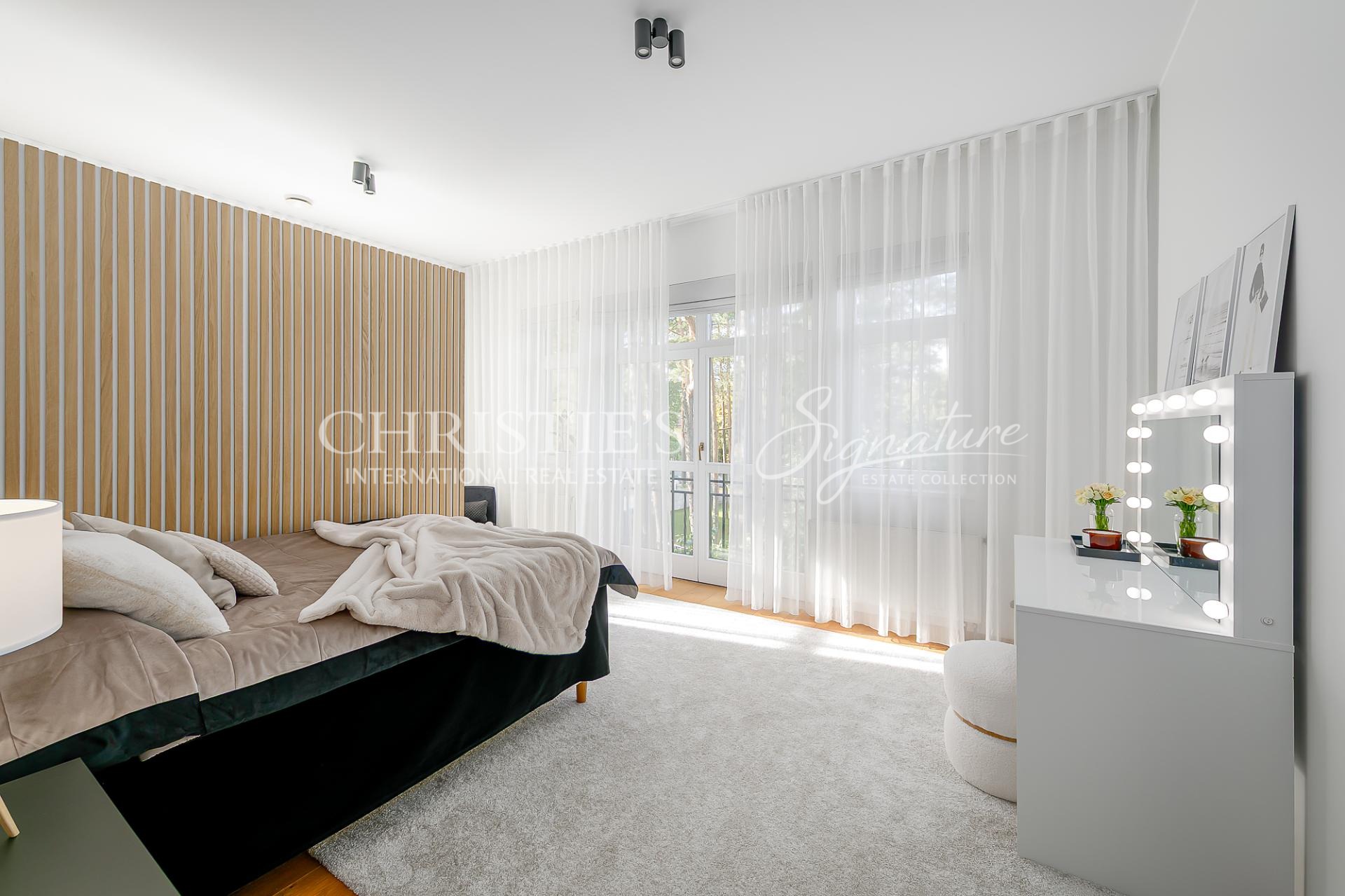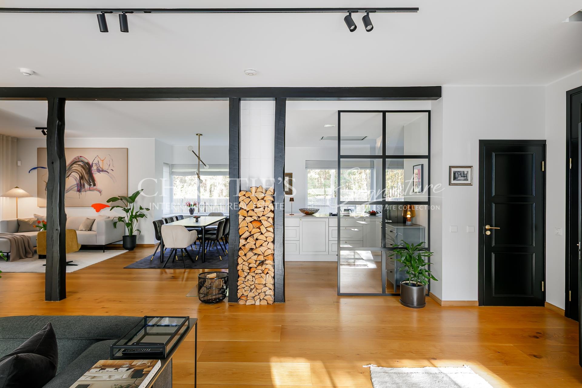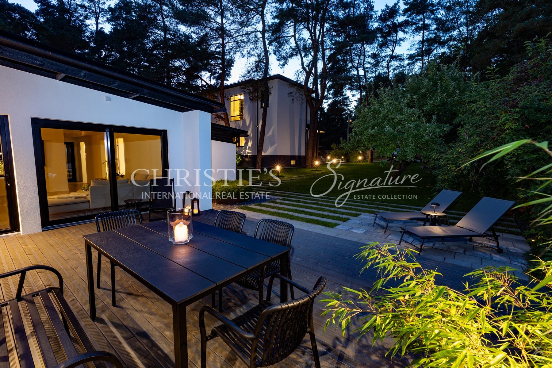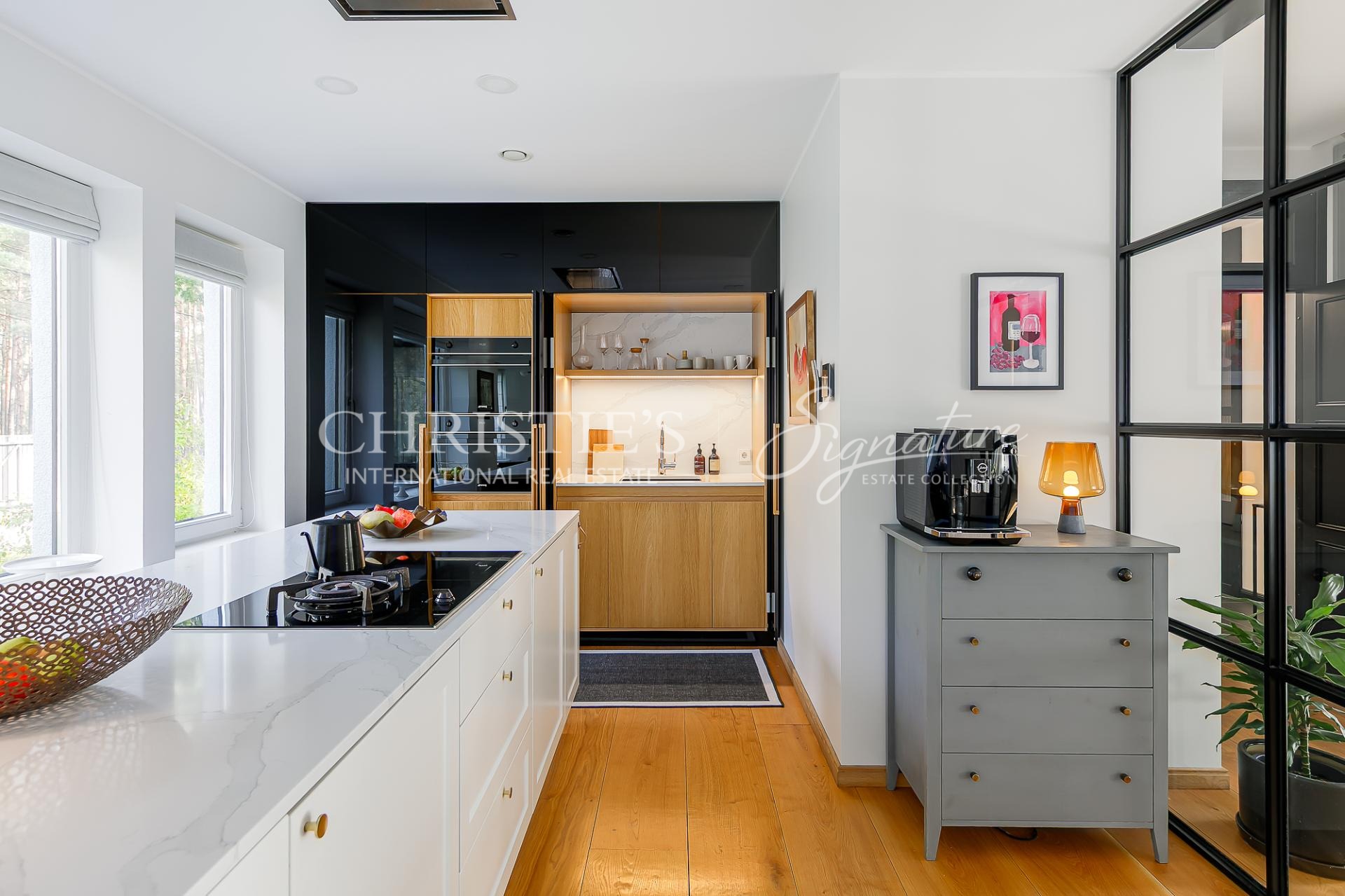 Backyard area features additionally a separate storeroom, multiple terraces and private seating zones, perfect for outdoor living surrounded by nature. This fully furnished property is ready to move in. Located on a quiet street, bordered by a beautiful pine forest and with excellent quick access to the city center. A safe, green, and family-friendly environment that is hard to find.