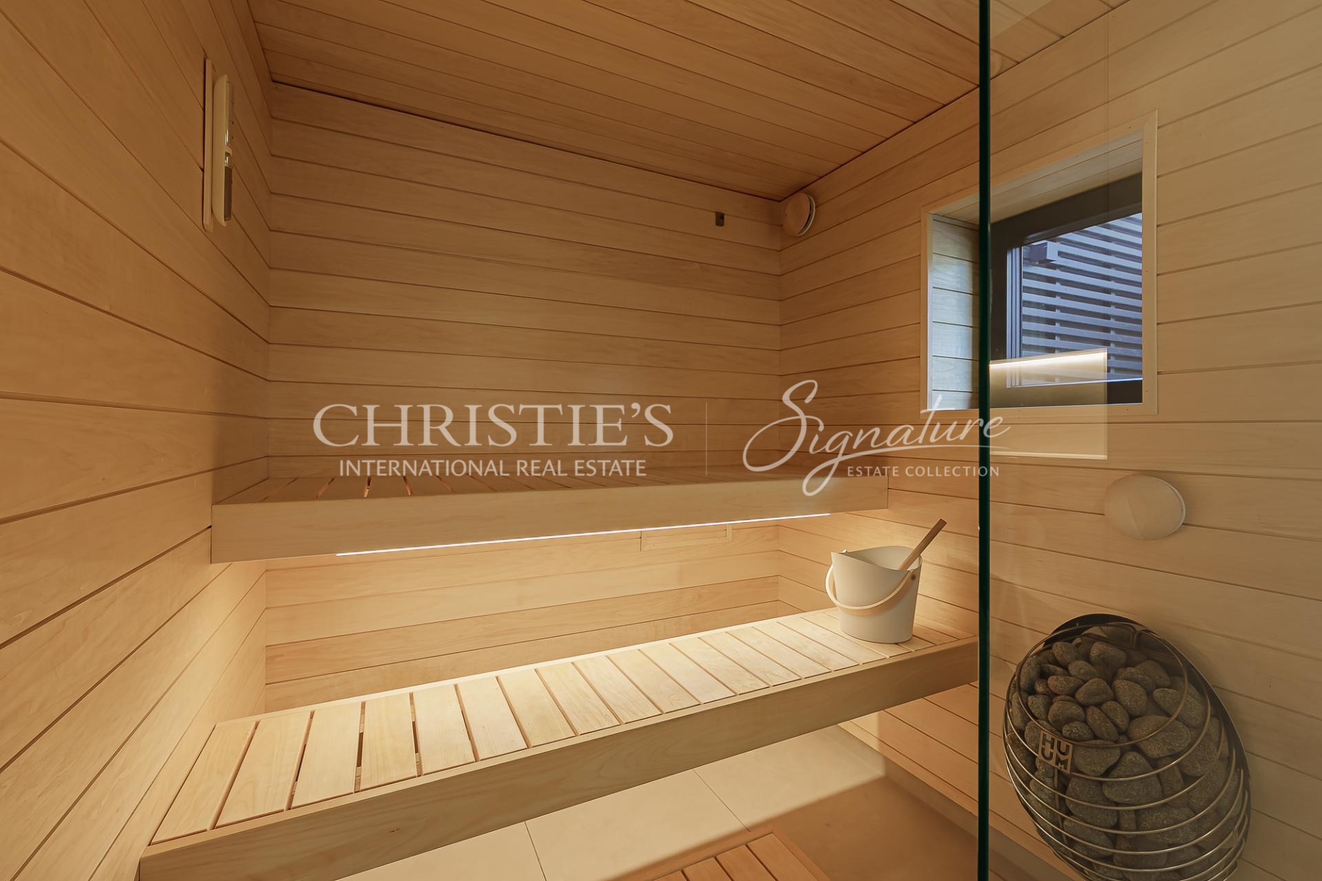 Features such as a fireplace, built-in custom furniture, premium materials, and smart locks make this residence truly one-of-a-kind.