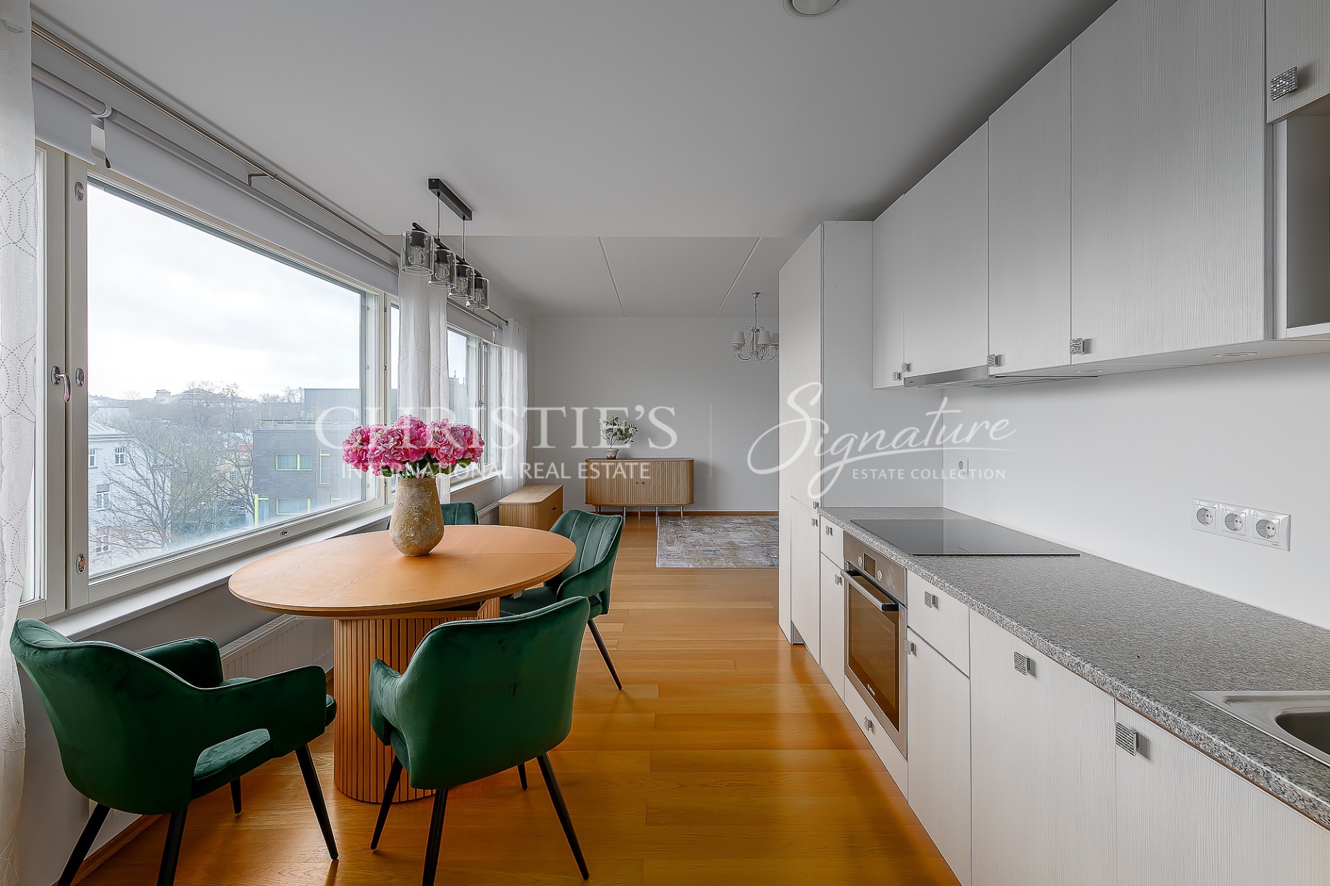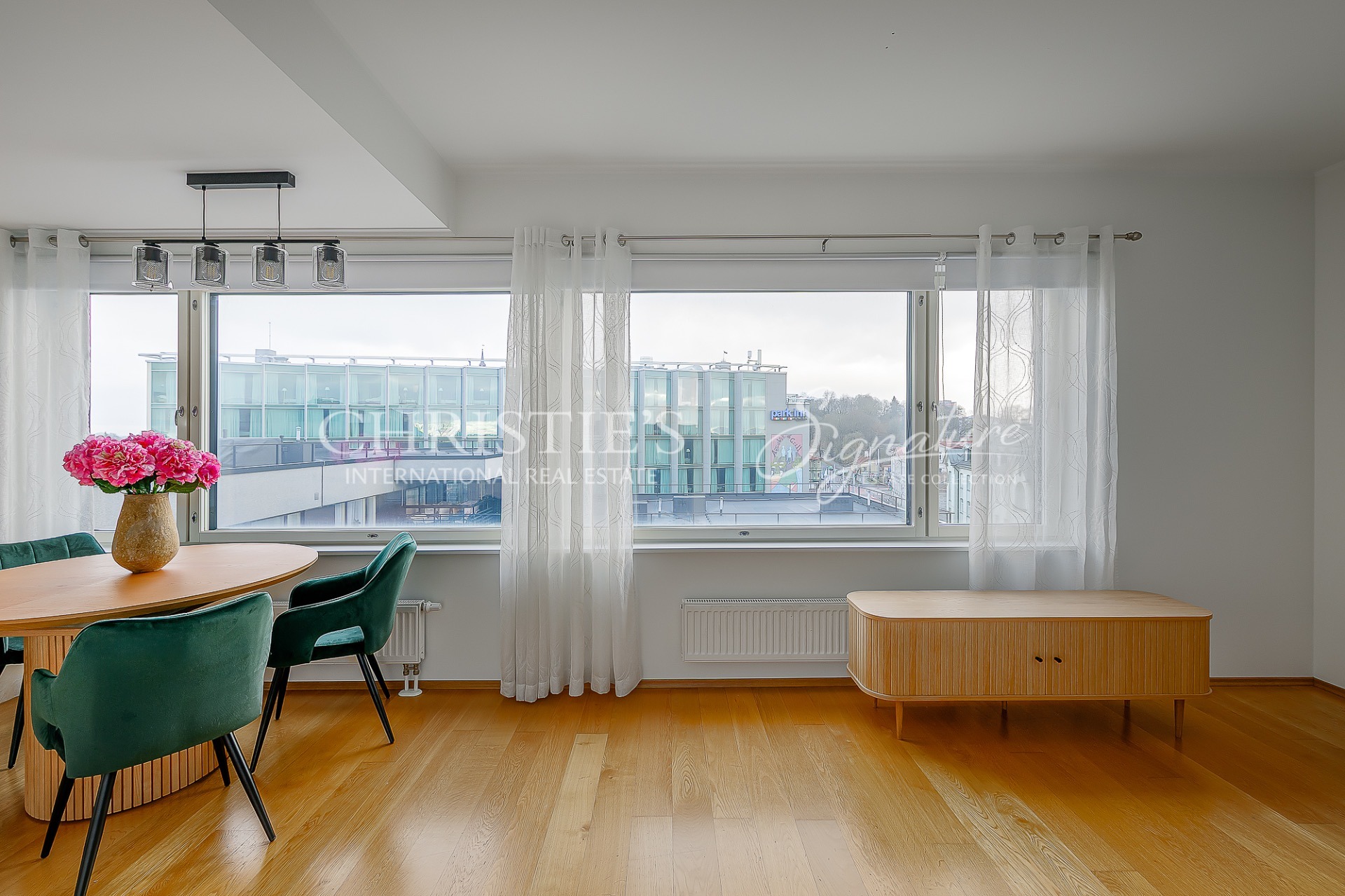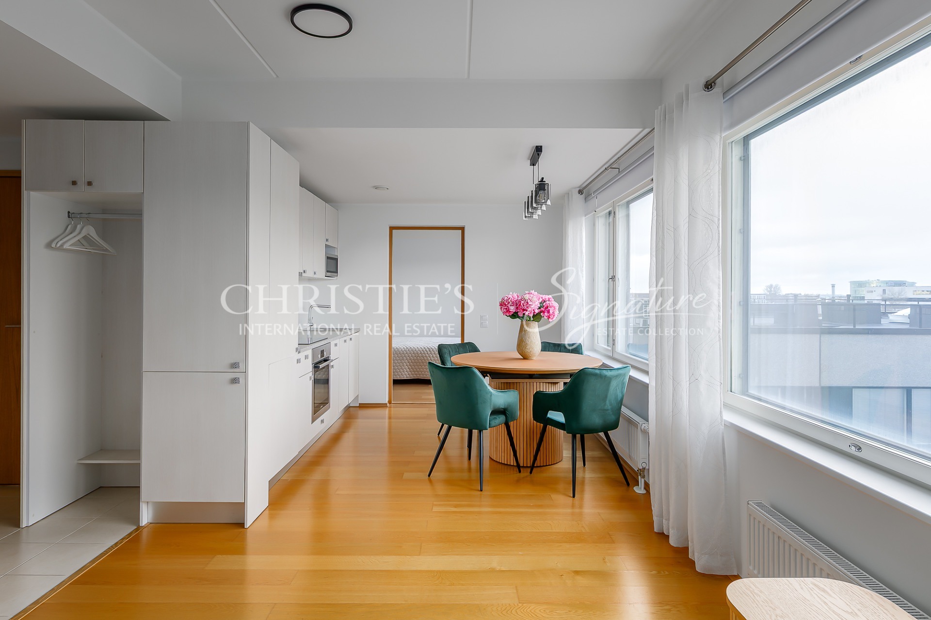 At Suve 2, an elegant and fully furnished 57.4 m² home awaits its new owner. Situated on the sixth floor of a modern seven-storey building, this residence is bathed in natural light thanks to large windows that span almost the entire exterior wall. The result is a bright, airy and welcoming living space, where harmony, openness and a homely warmth come together seamlessly. A well-considered layout and carefully planned use of space add to the apartment’s sense of spaciousness, while energy efficiency, central heating and air conditioning ensure a comfortable indoor climate with stable temperatures throughout the year.