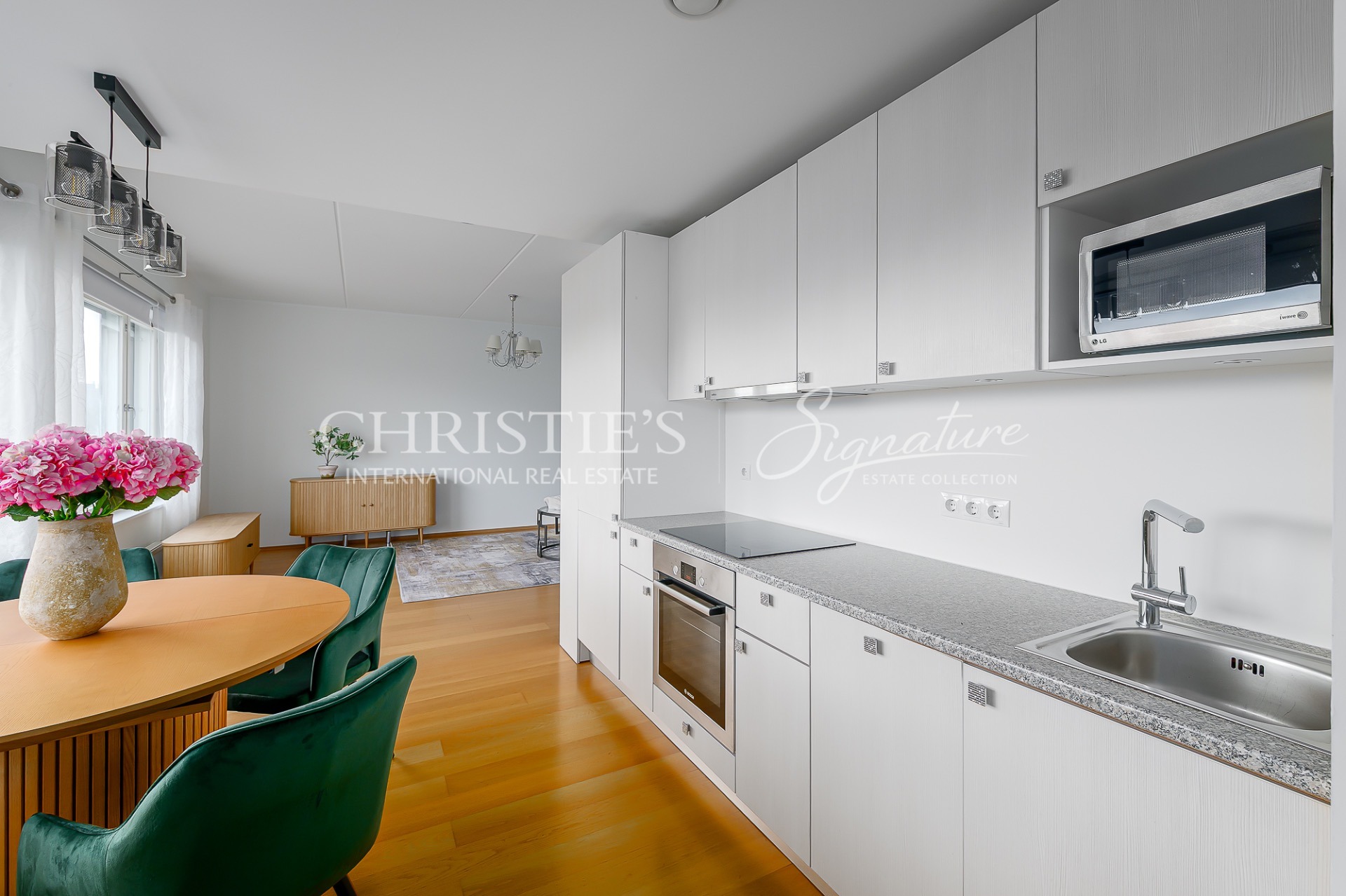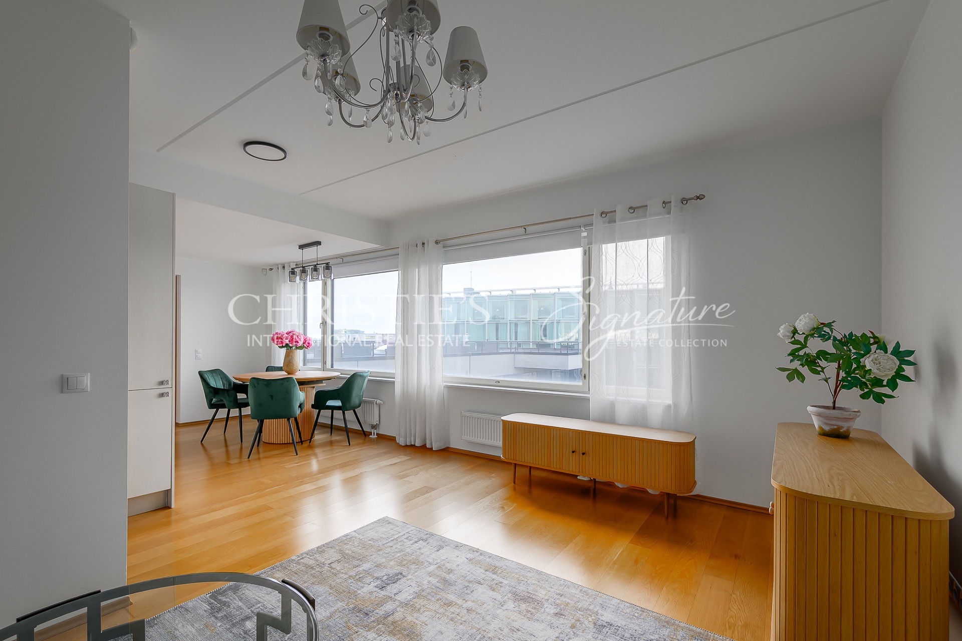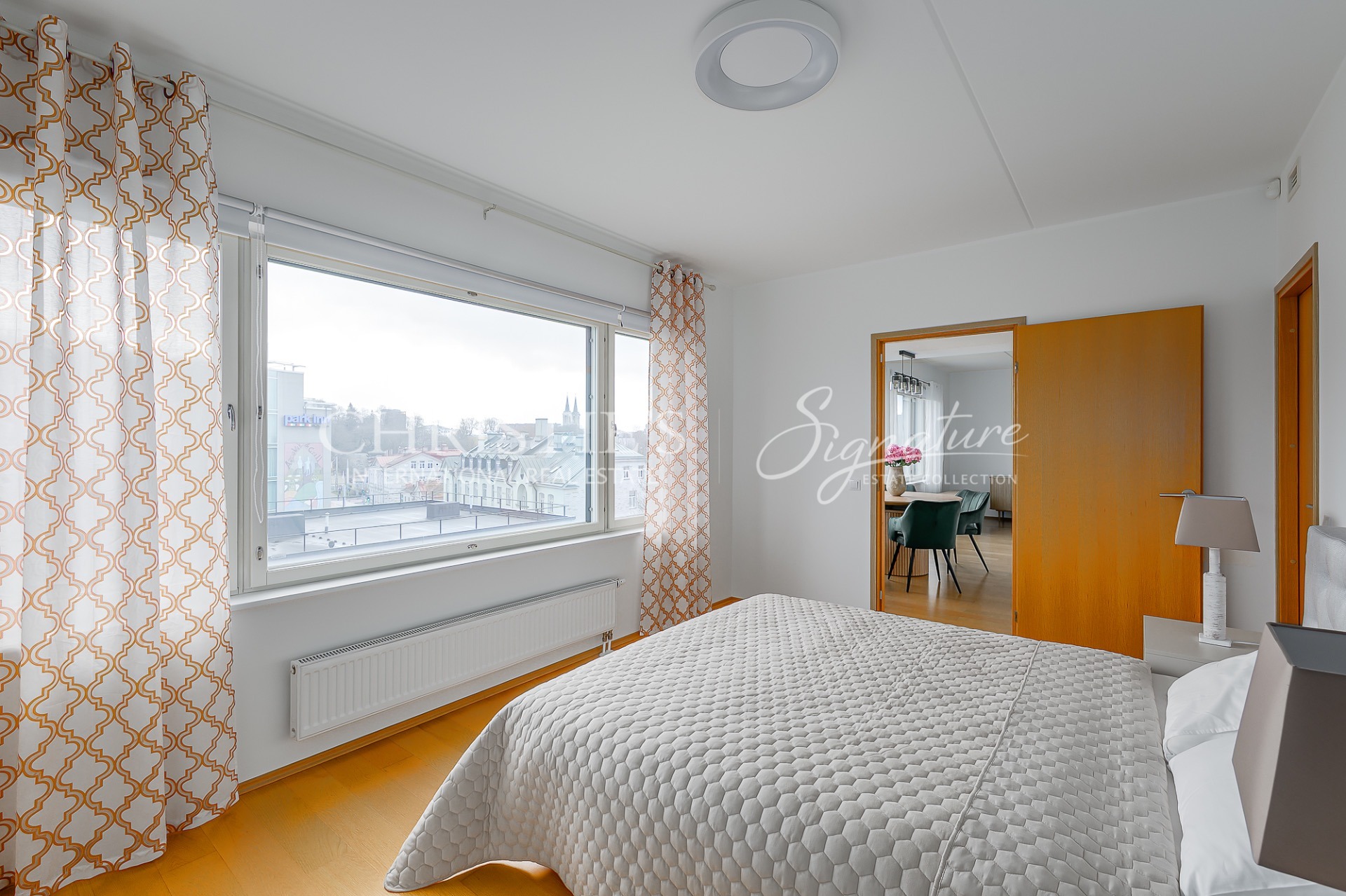At Suve 2, an elegant and fully furnished 57.4 m² home awaits its new owner. Situated on the sixth floor of a modern seven-storey building, this residence is bathed in natural light thanks to large windows that span almost the entire exterior wall. The result is a bright, airy and welcoming living space, where harmony, openness and a homely warmth come together seamlessly. A well-considered layout and carefully planned use of space add to the apartment’s sense of spaciousness, while energy efficiency, central heating and air conditioning ensure a comfortable indoor climate with stable temperatures throughout the year.