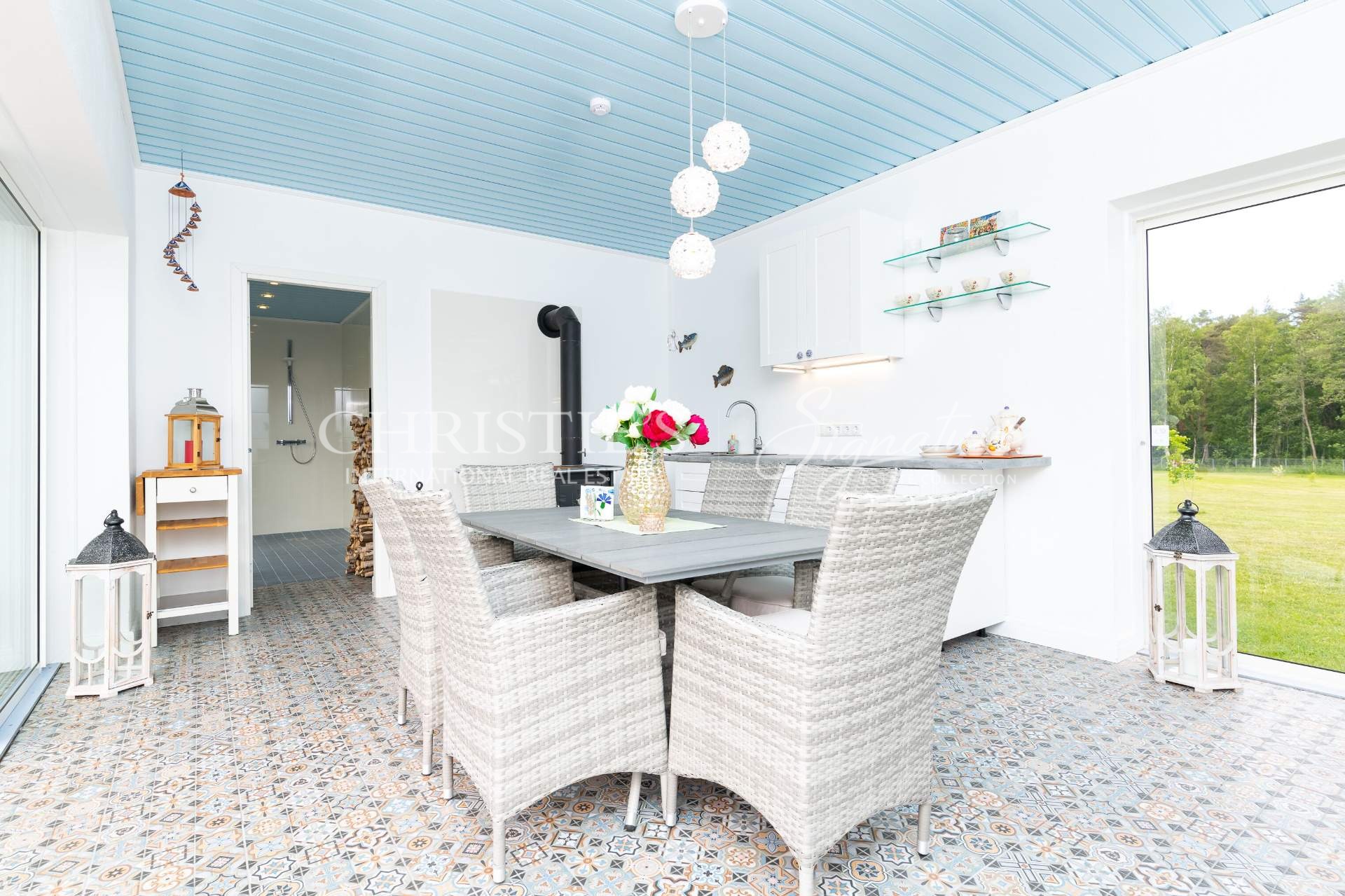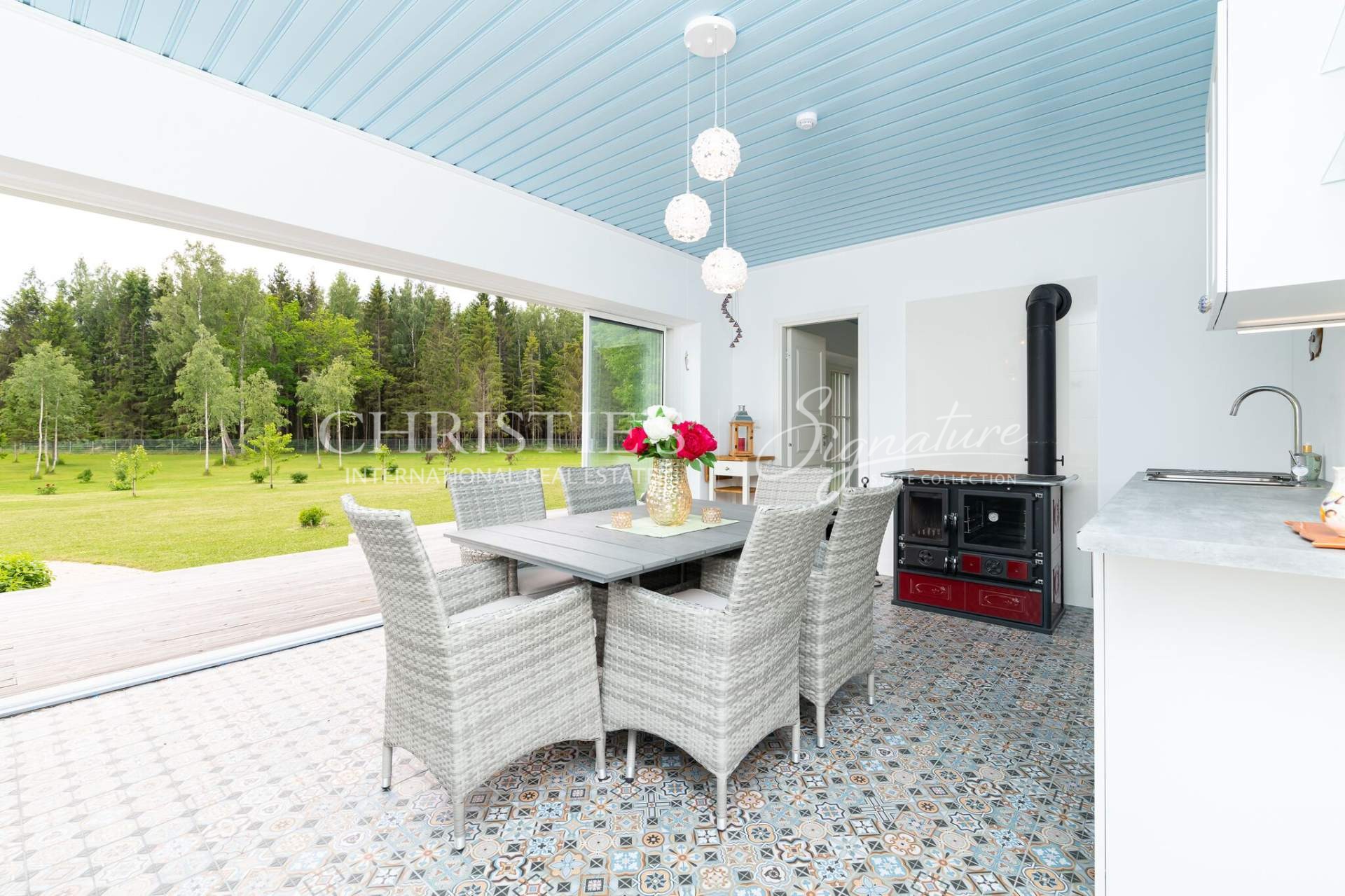 Built in 2018, this eye-catching residential complex offers the highest building and quality standards and features a main house, summer house with an outdoor kitchen and a sauna, and a garden house.