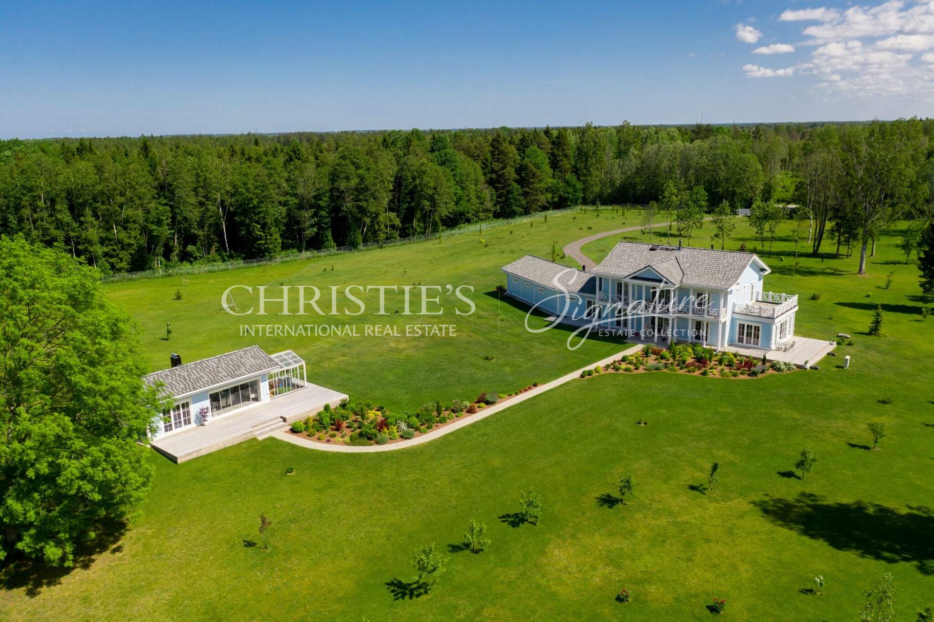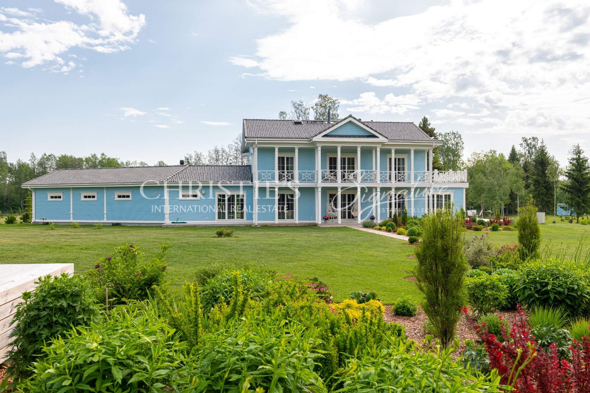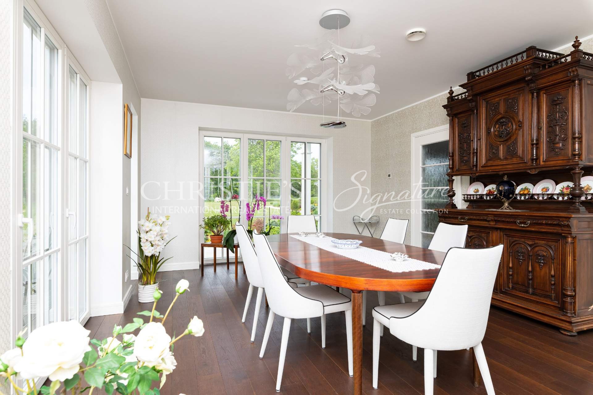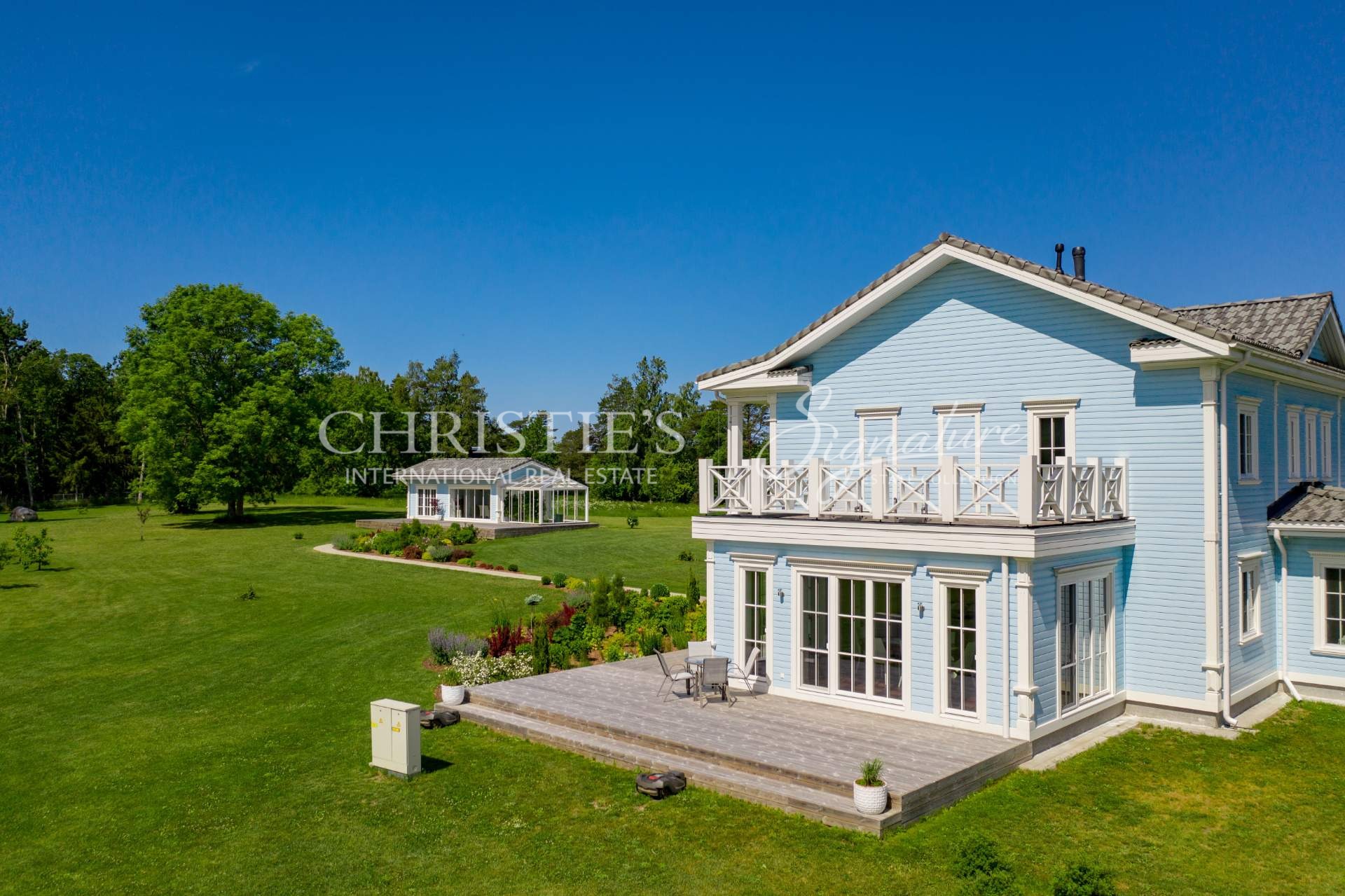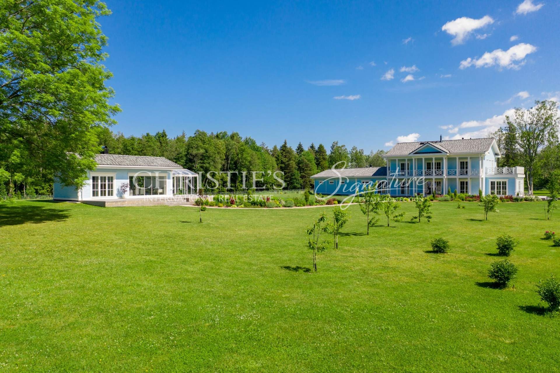The main building offers unique combination of colonial and Nordic style and features only the best quality natural materials like precious wood and stone, timeless cornice elements and much more. Elegance is enhanced by special interior details and antique furniture. All the planning, both on the plot and inside the house, is in line with Feng Shui principles, to let the good energy reach every point of the home. The landscaping was done by a landscape architect, and the 50,000 square meter beautiful garden offers a fruit-bearing orchard and an elegant greenhouse with vine plants.