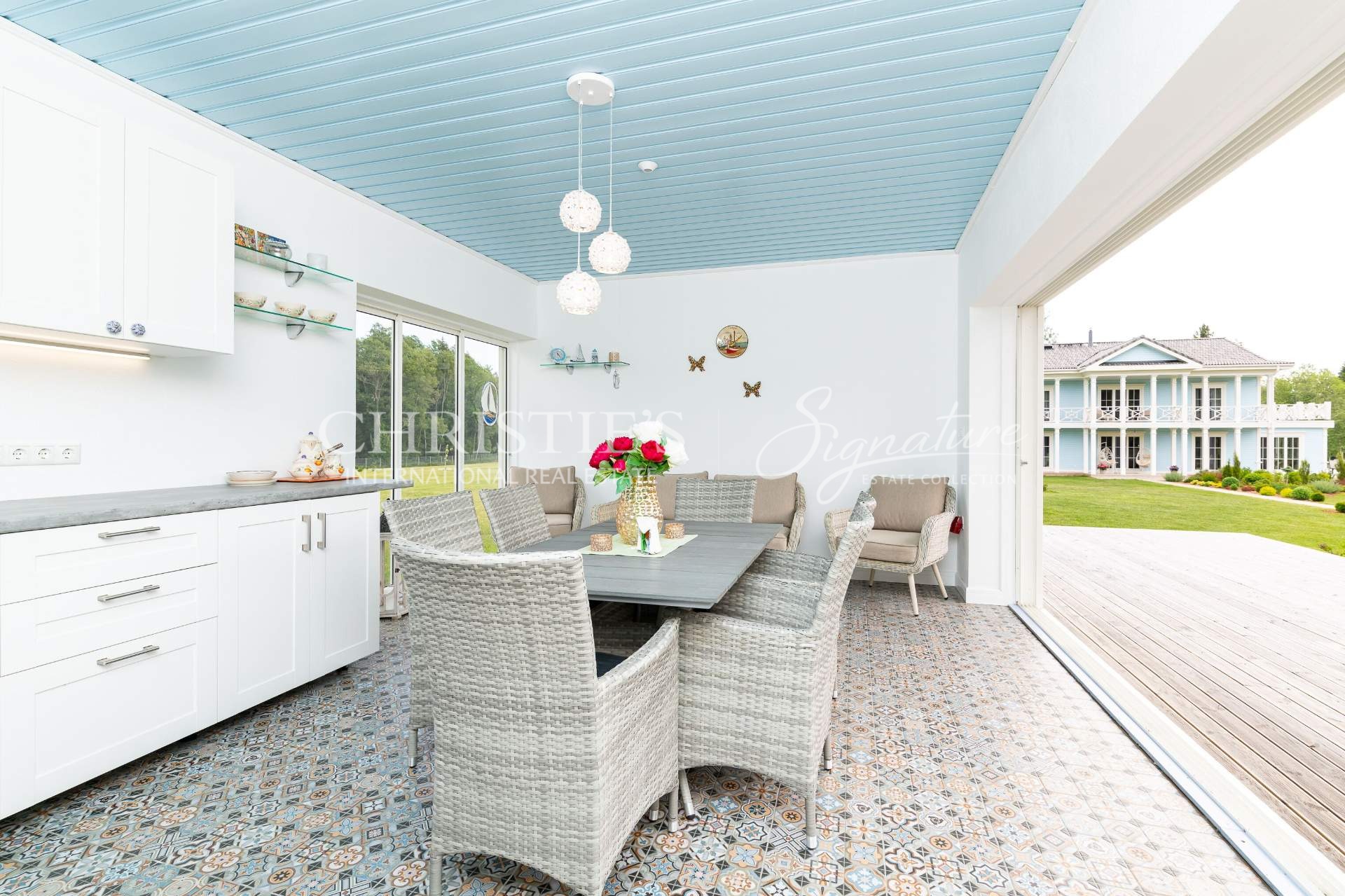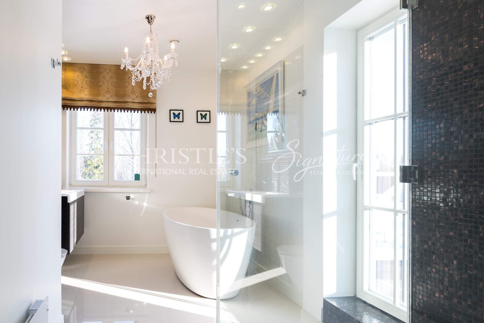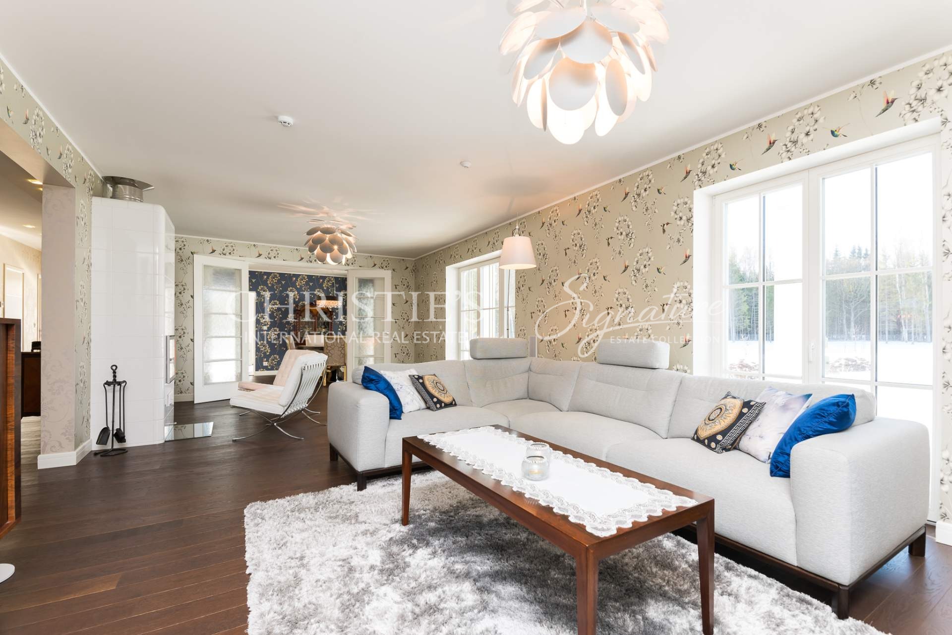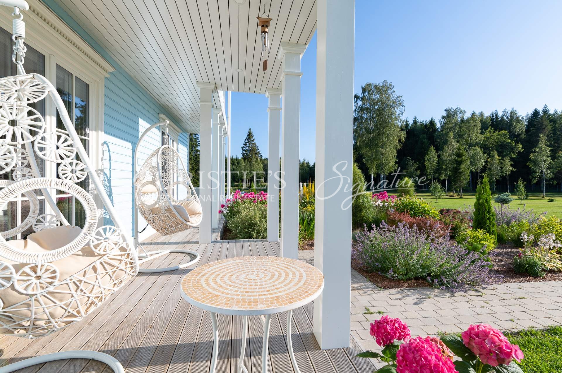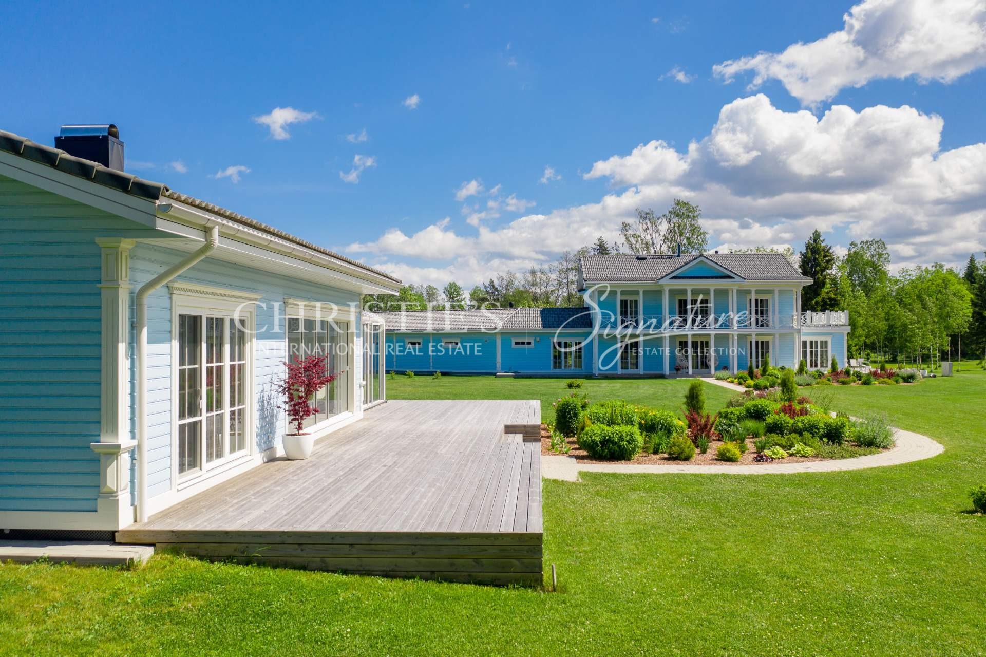 The main building offers unique combination of colonial and Nordic style and features only the best quality natural materials like precious wood and stone, timeless cornice elements and much more. Elegance is enhanced by special interior details and antique furniture. All the planning, both on the plot and inside the house, is in line with Feng Shui principles, to let the good energy reach every point of the home. The landscaping was done by a landscape architect, and the 50,000 square meter beautiful garden offers a fruit-bearing orchard and an elegant greenhouse with vine plants.