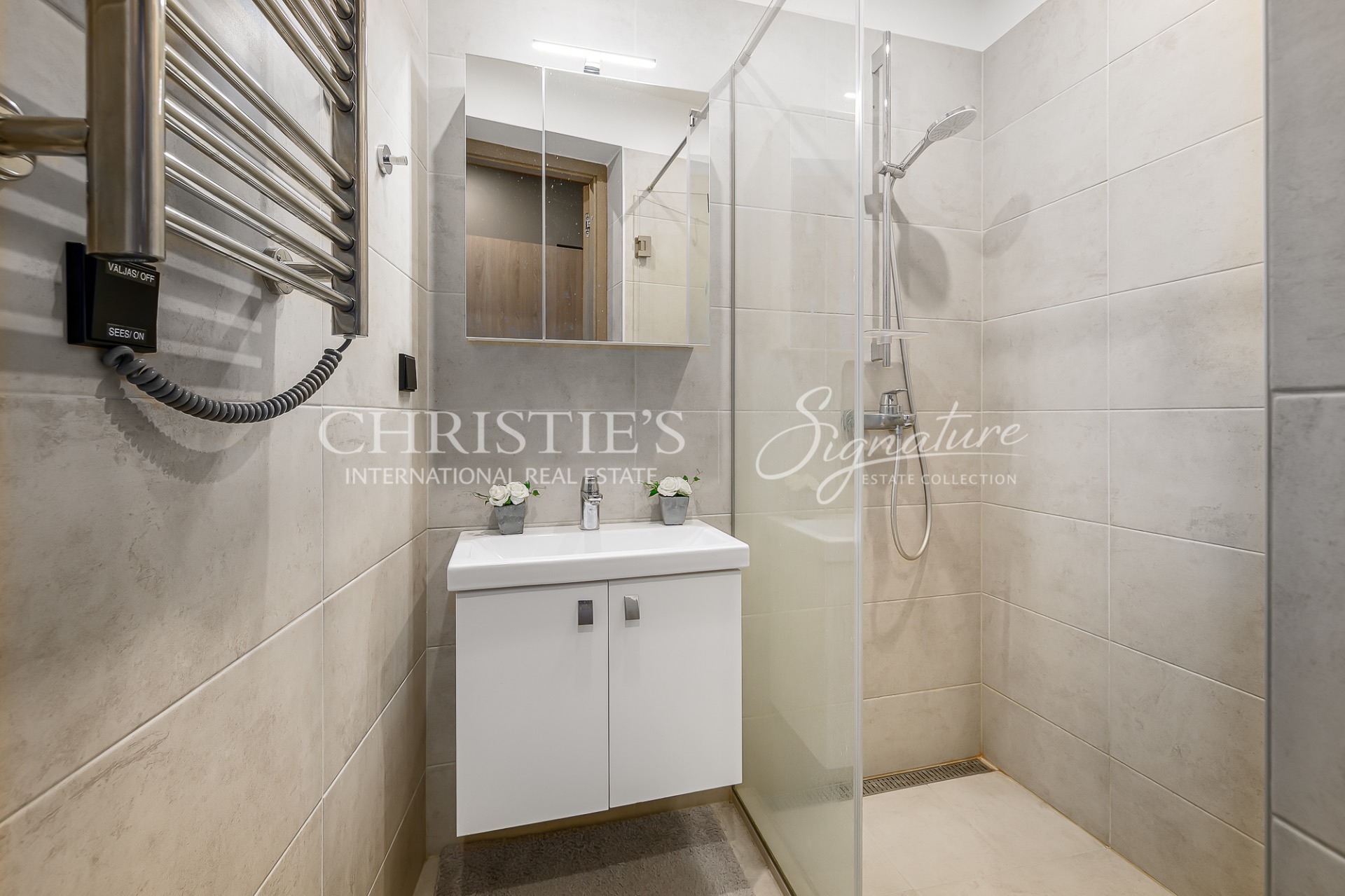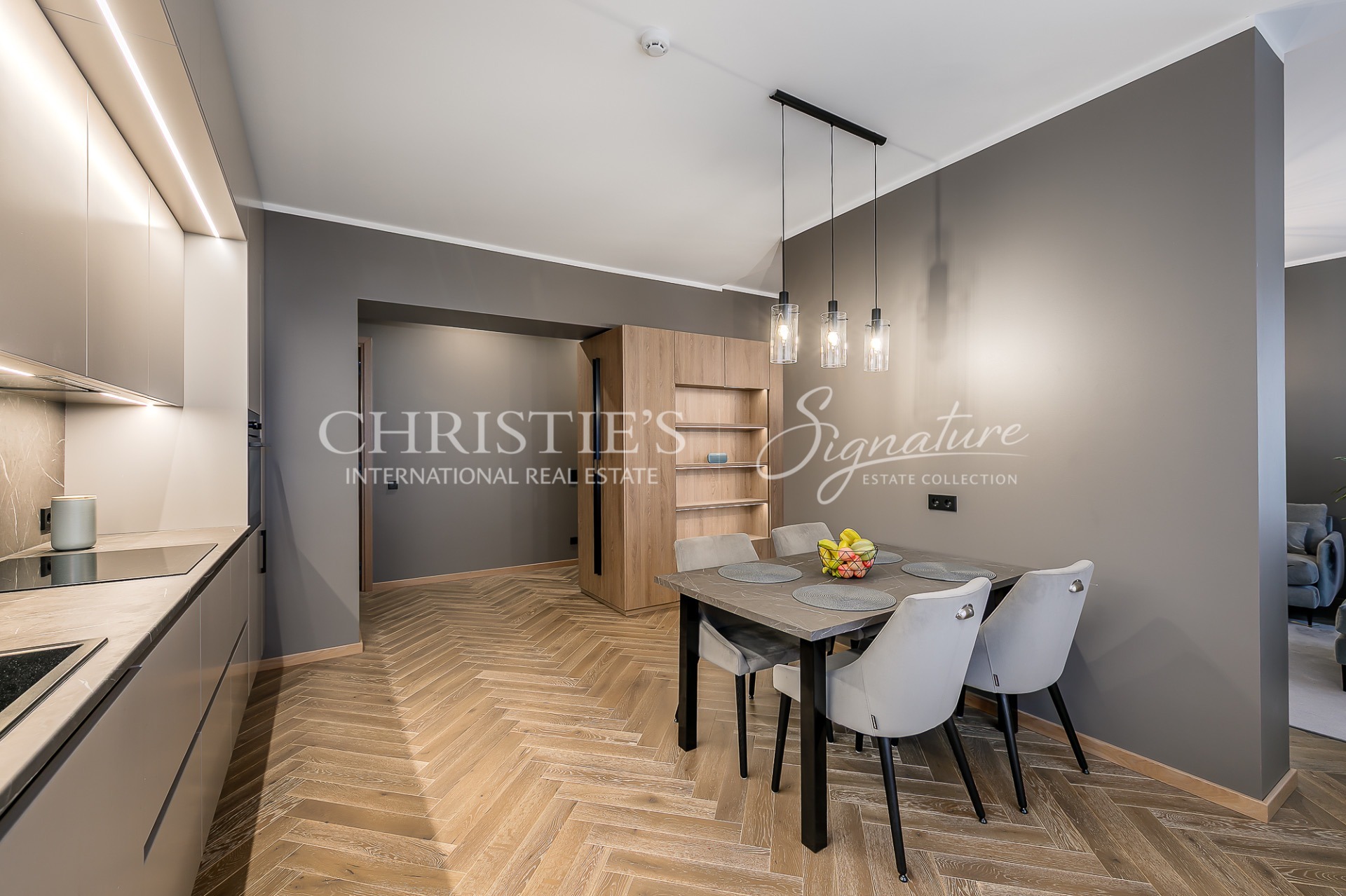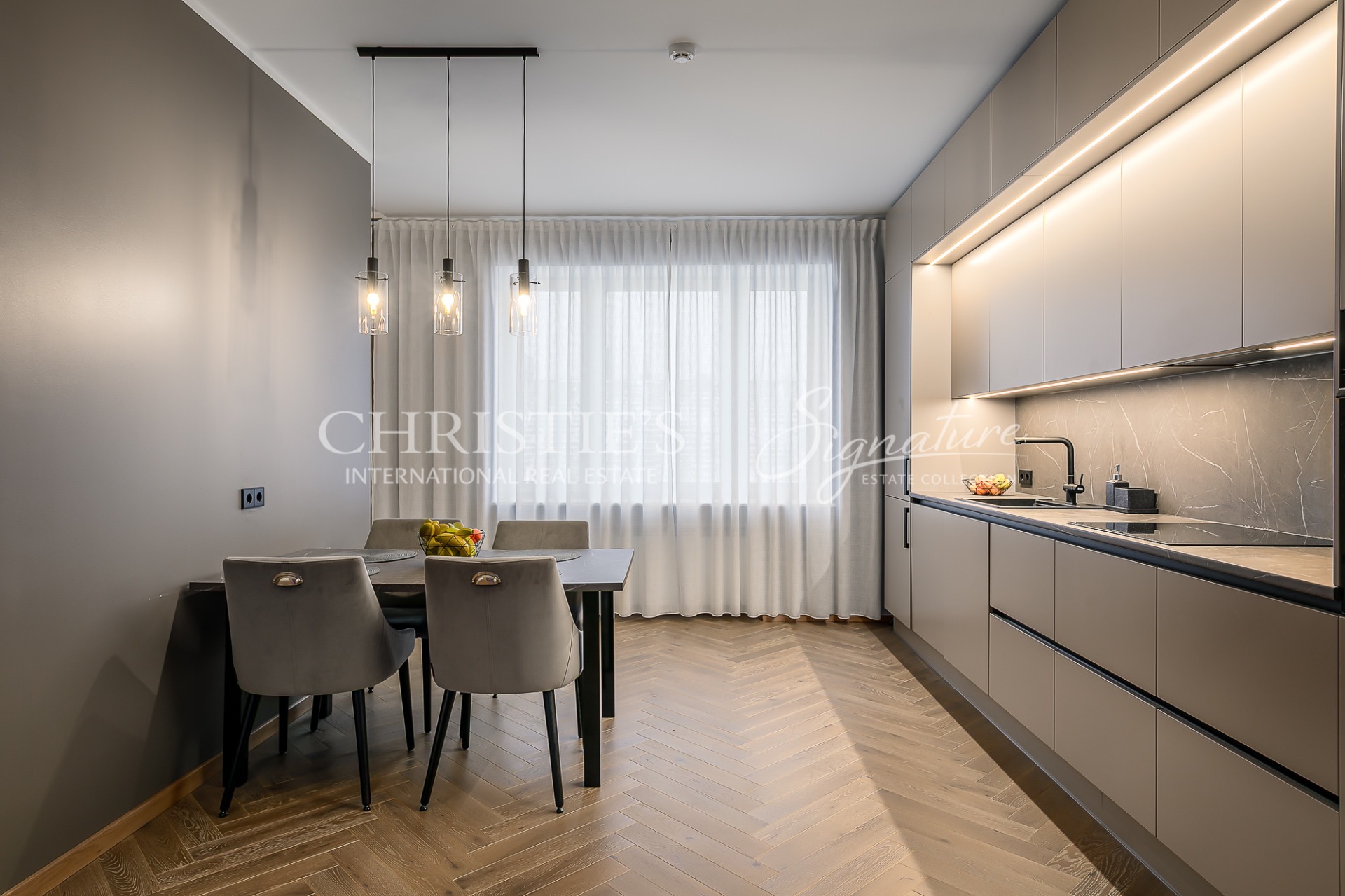The kitchen is equipped with kitchen furniture and all the necessary Electrolux appliances: induction hob, electrical oven, fridge-freezer, dishwasher, washing machine.