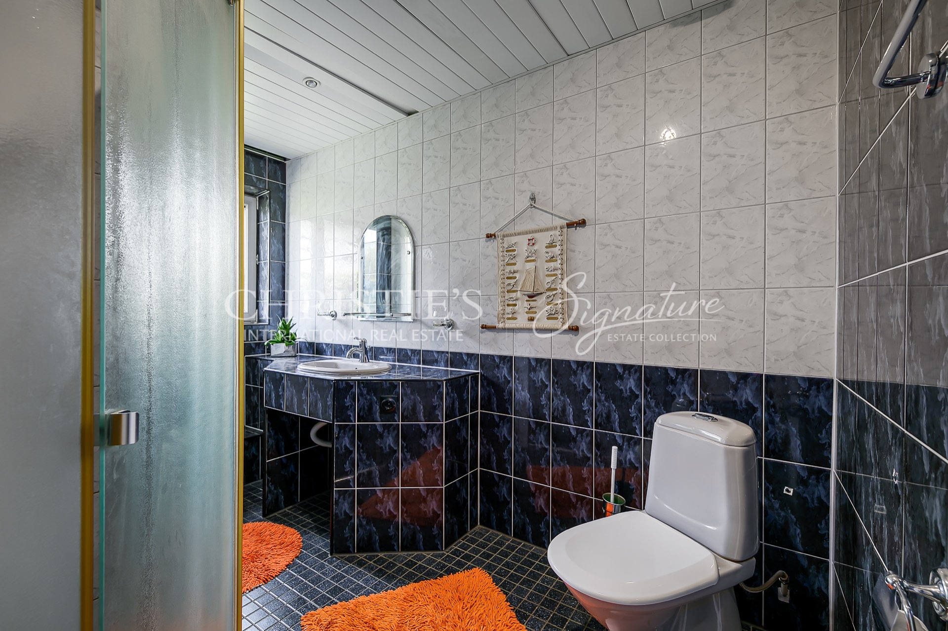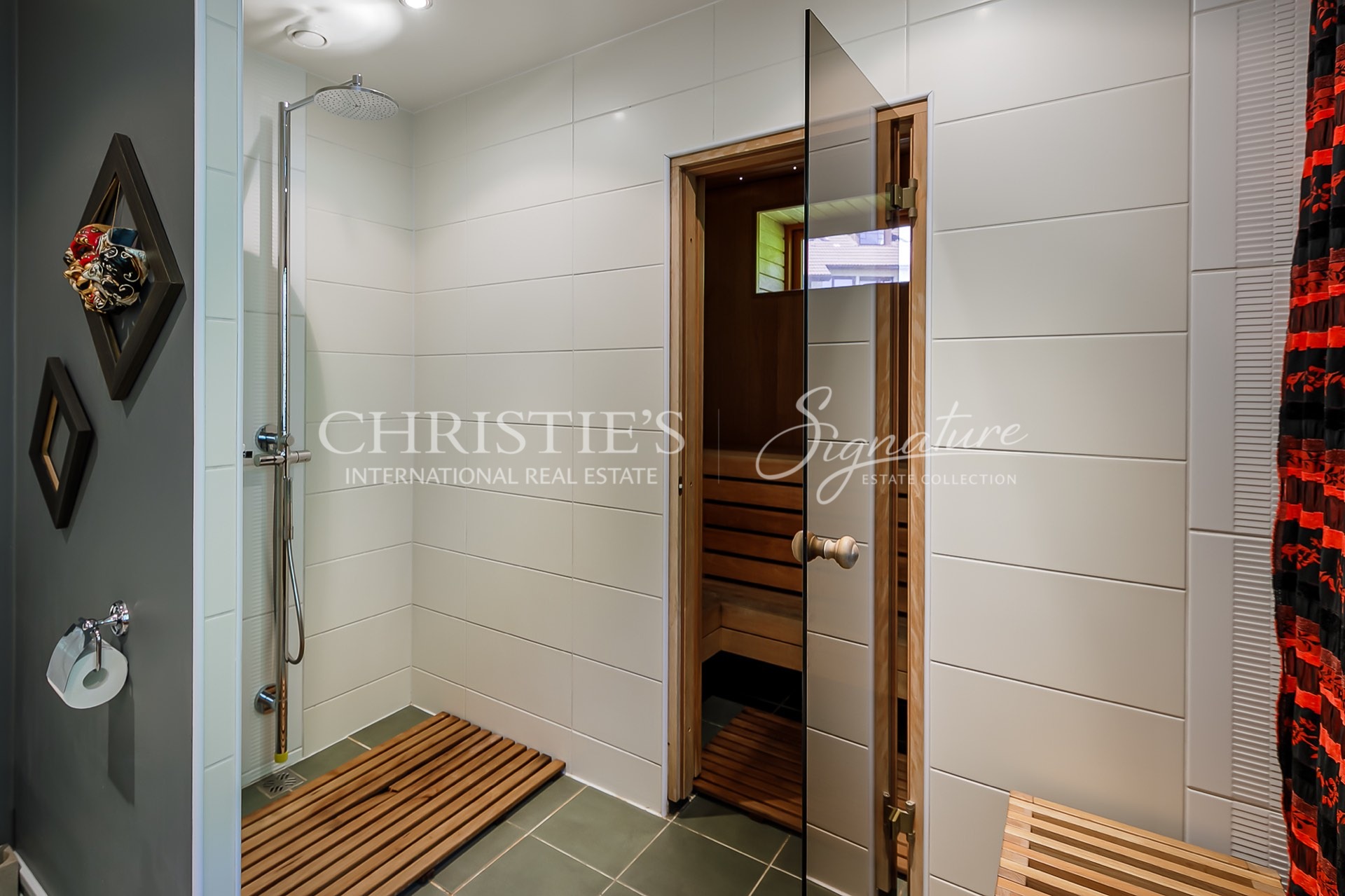 On the first floor there is also a shower room, a toilet and a sauna with an electric heater. There is a separate utility room downstairs, where the washing machine, dryer, cleaning supplies, technical systems are located. There is direct access to the garage from the hall.
