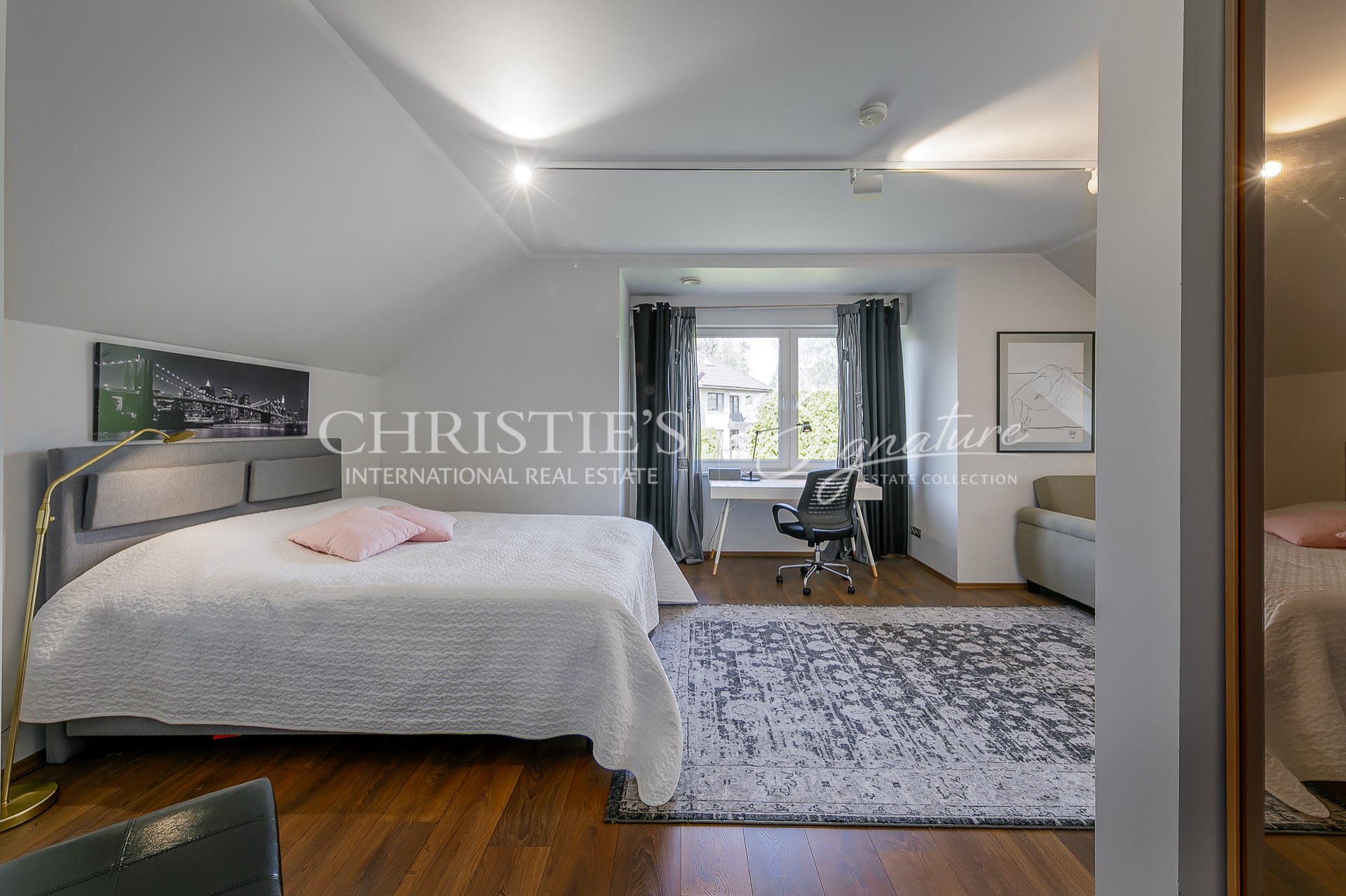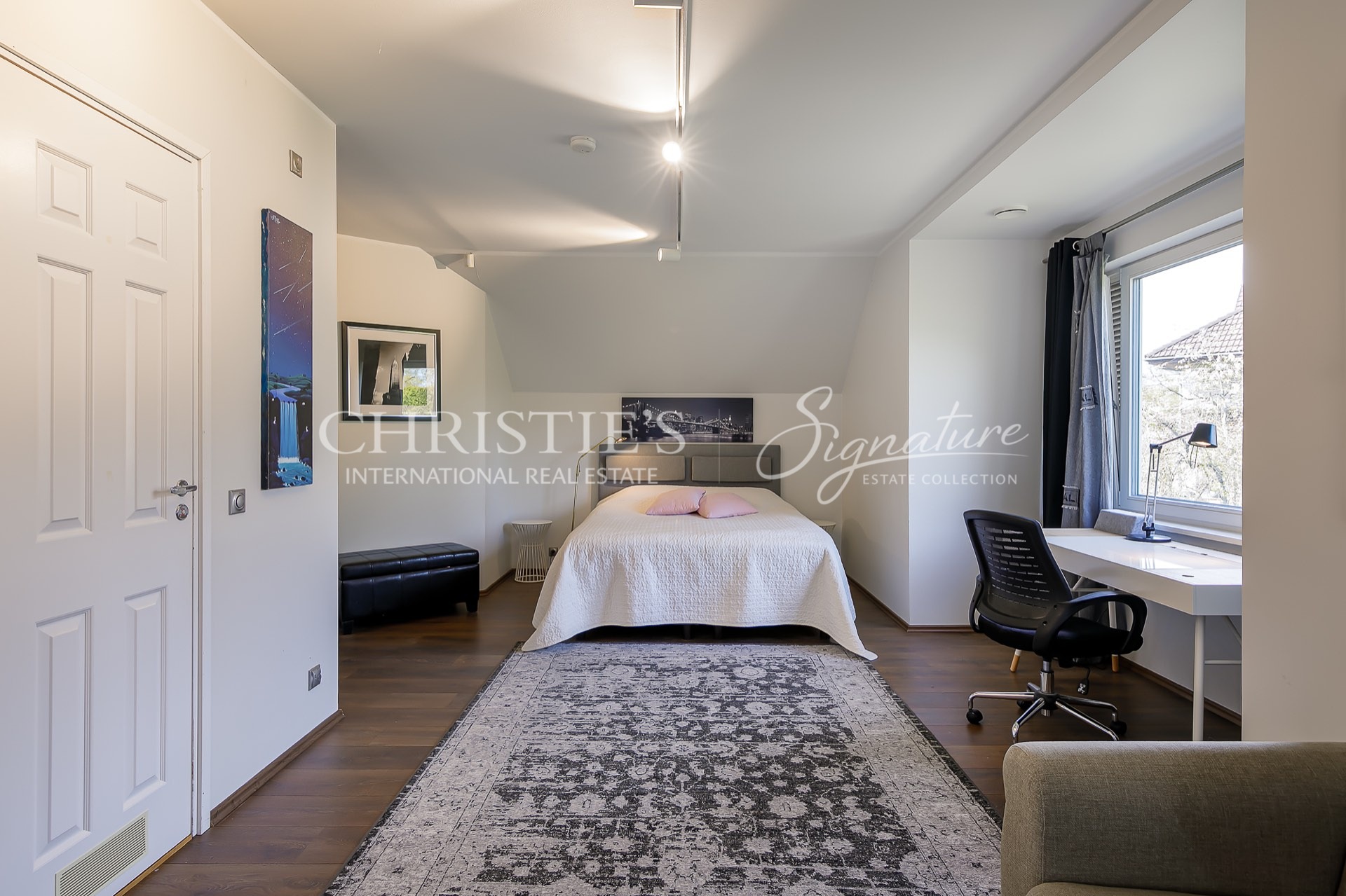 Moving up the stairs to the second floor, you will be greeted by a stairwell. On the second floor there are three large bedrooms. What makes the house unique is that each bedroom has its own bathroom and toilet. The master bedroom has a separate wardrobe.