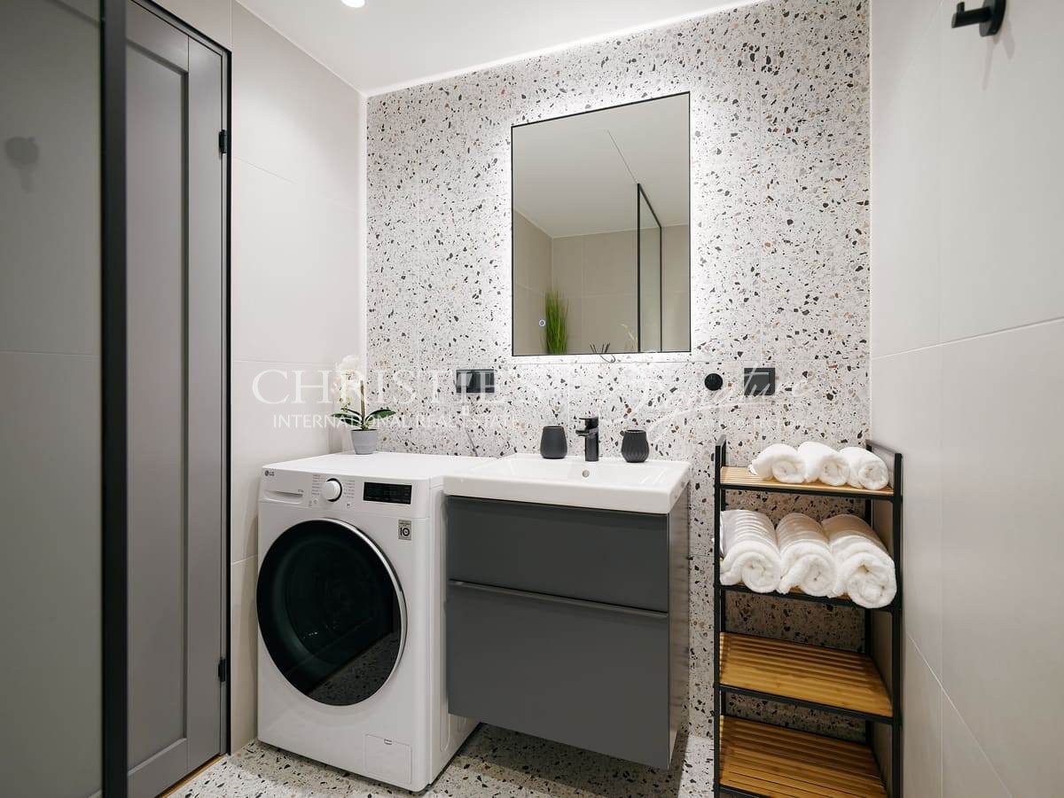 The 36.3 m² apartment consists of a living room with open kitchen, bedroom, bathroom with shower and hallway. In addition, there is a 15 m² terrace. The apartment is bright, well planned and ready for immediate move-in. Floors are finished with natural wood parquet and the bathroom with ceramic tiles.