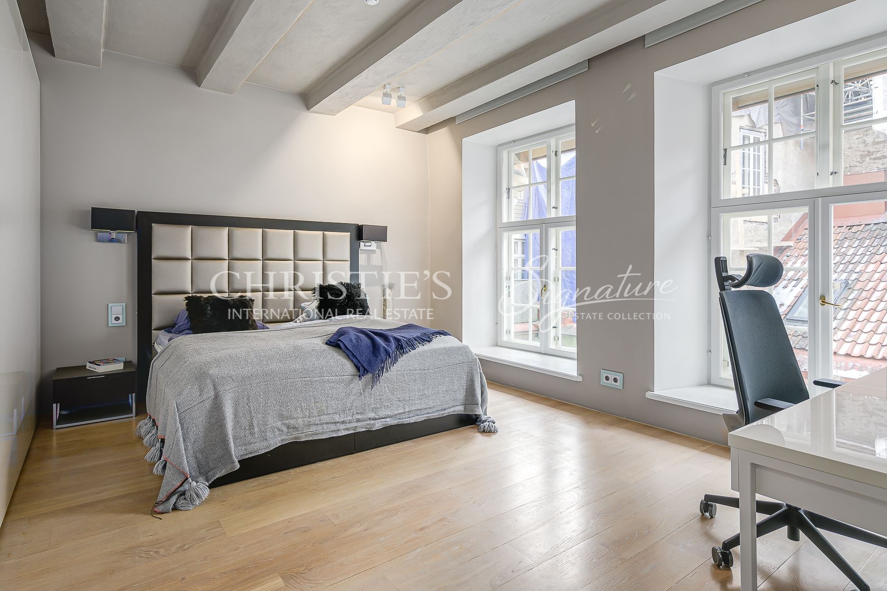 There is access from this room to a small terrace. Its big enough to admire the evening sun or the majestic St Olaviste church tower that stands protectively behind the building.