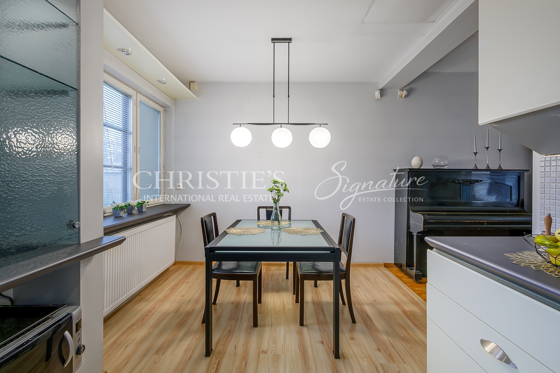 The house has radiators in each room, which are on the air-water system (two pumps in the house). The winter garden has underfloor heating on the air-water system. There is underfloor heating on the electric system in the wet rooms and in the hallway.