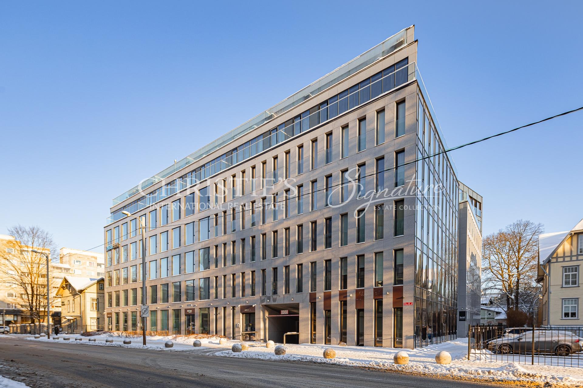 This contemporary stone building was designed by Meelis Press Architectural Bureau and completed in 2014. The property stands out for its high-quality architecture and prestigious residential environment.