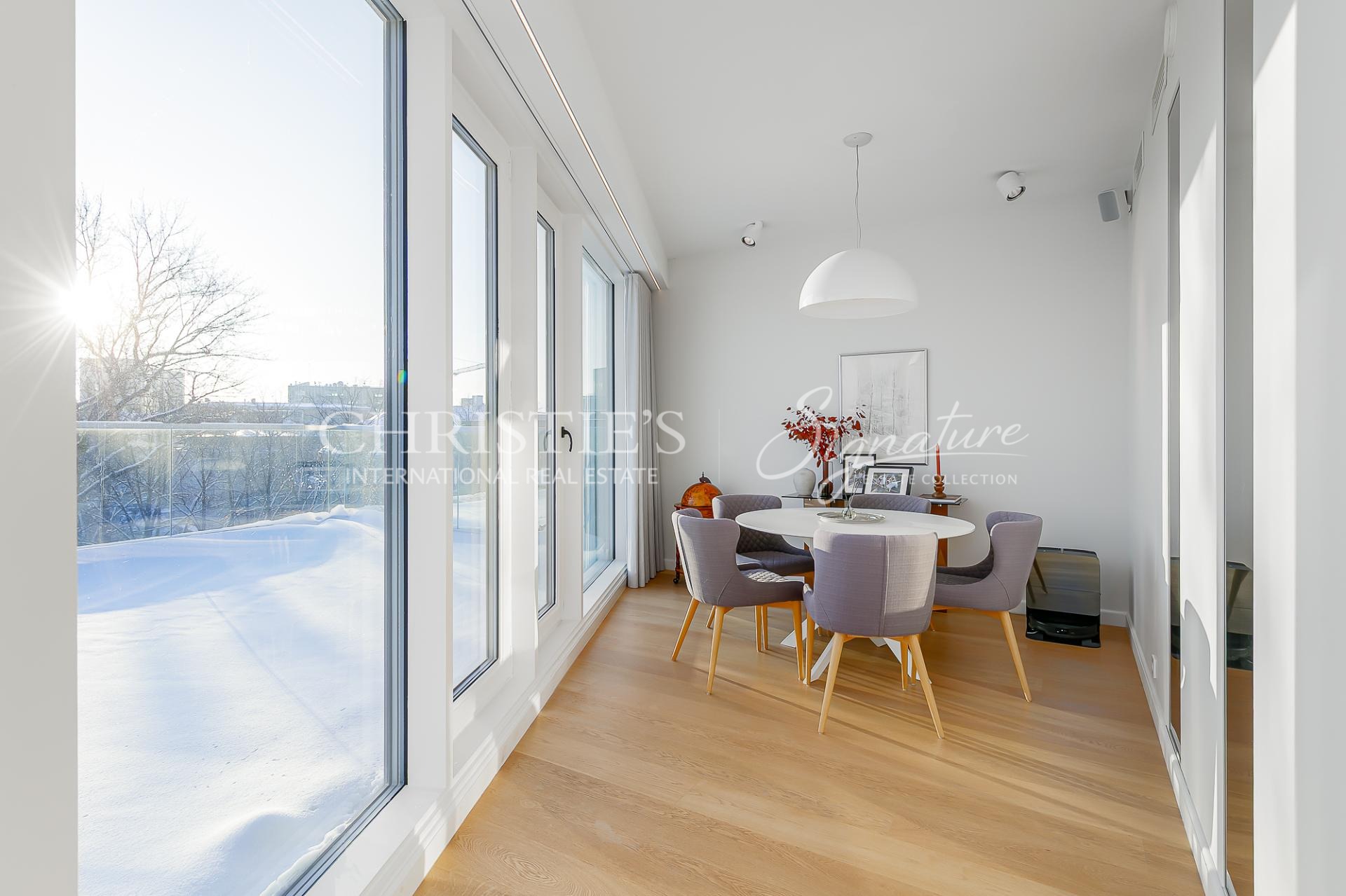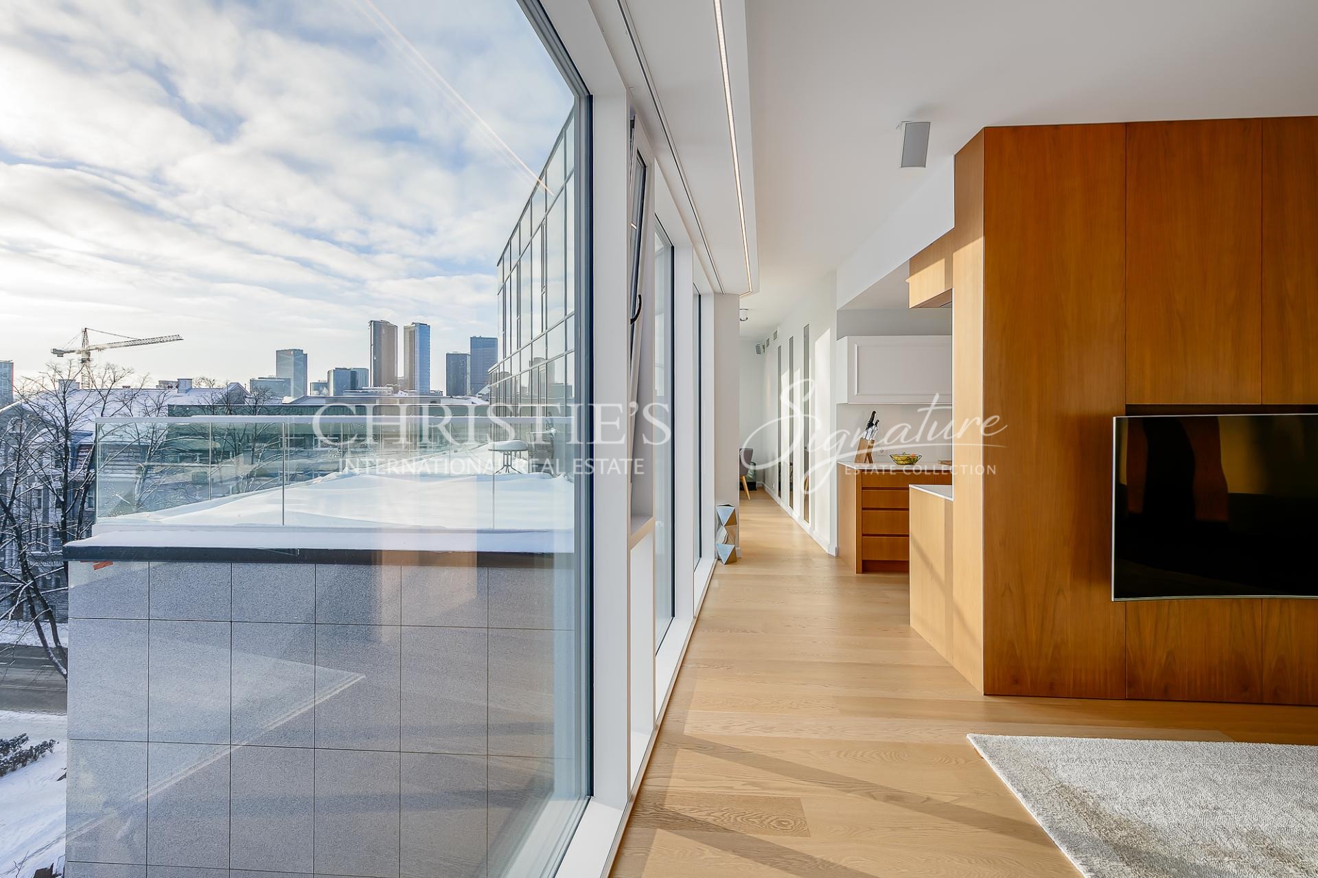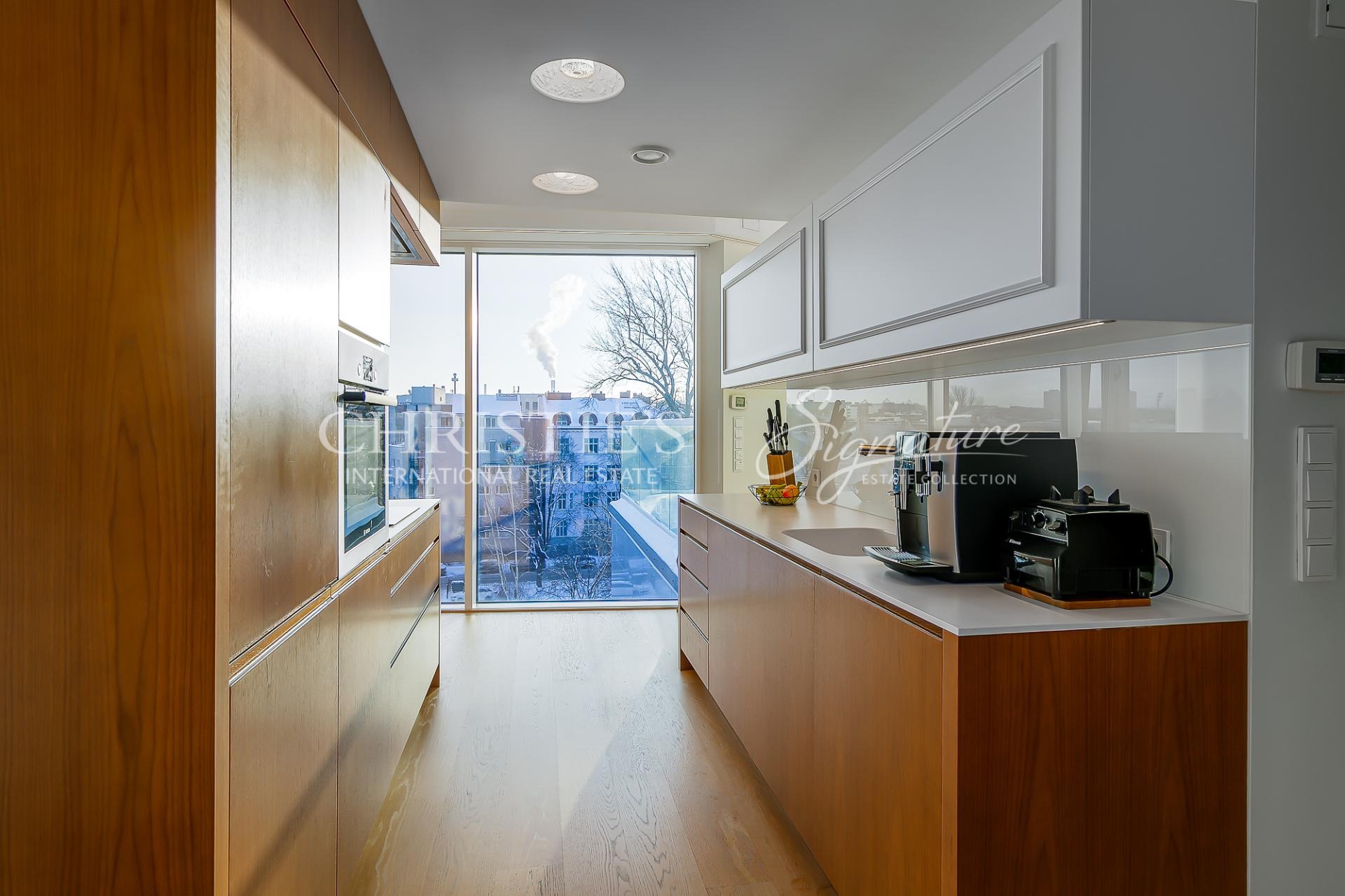 The apartment is equipped with water-based underfloor heating, a heat-recovery ventilation system, and cooling, ensuring a comfortable indoor climate throughout the year.