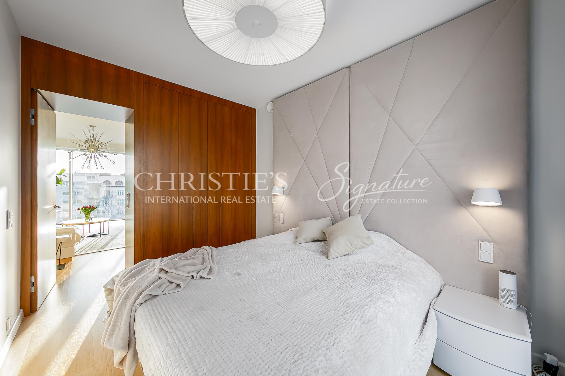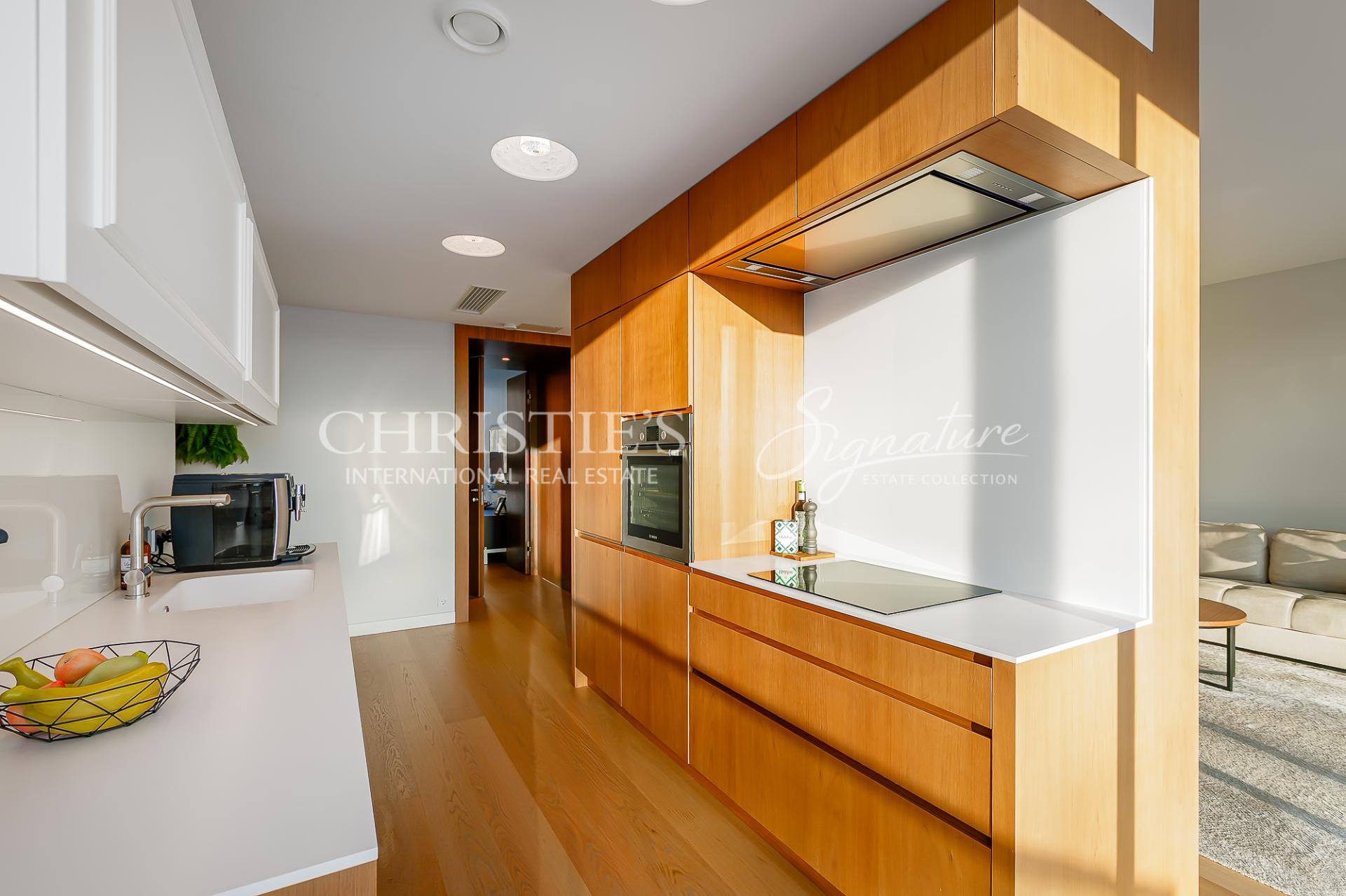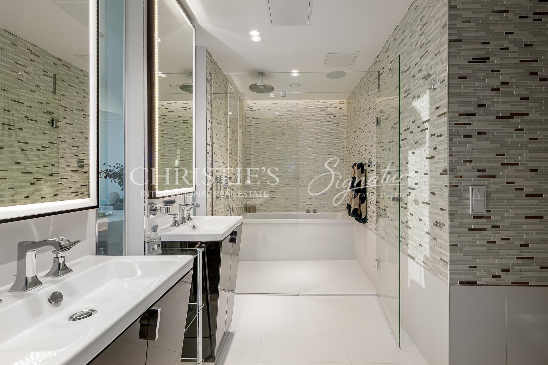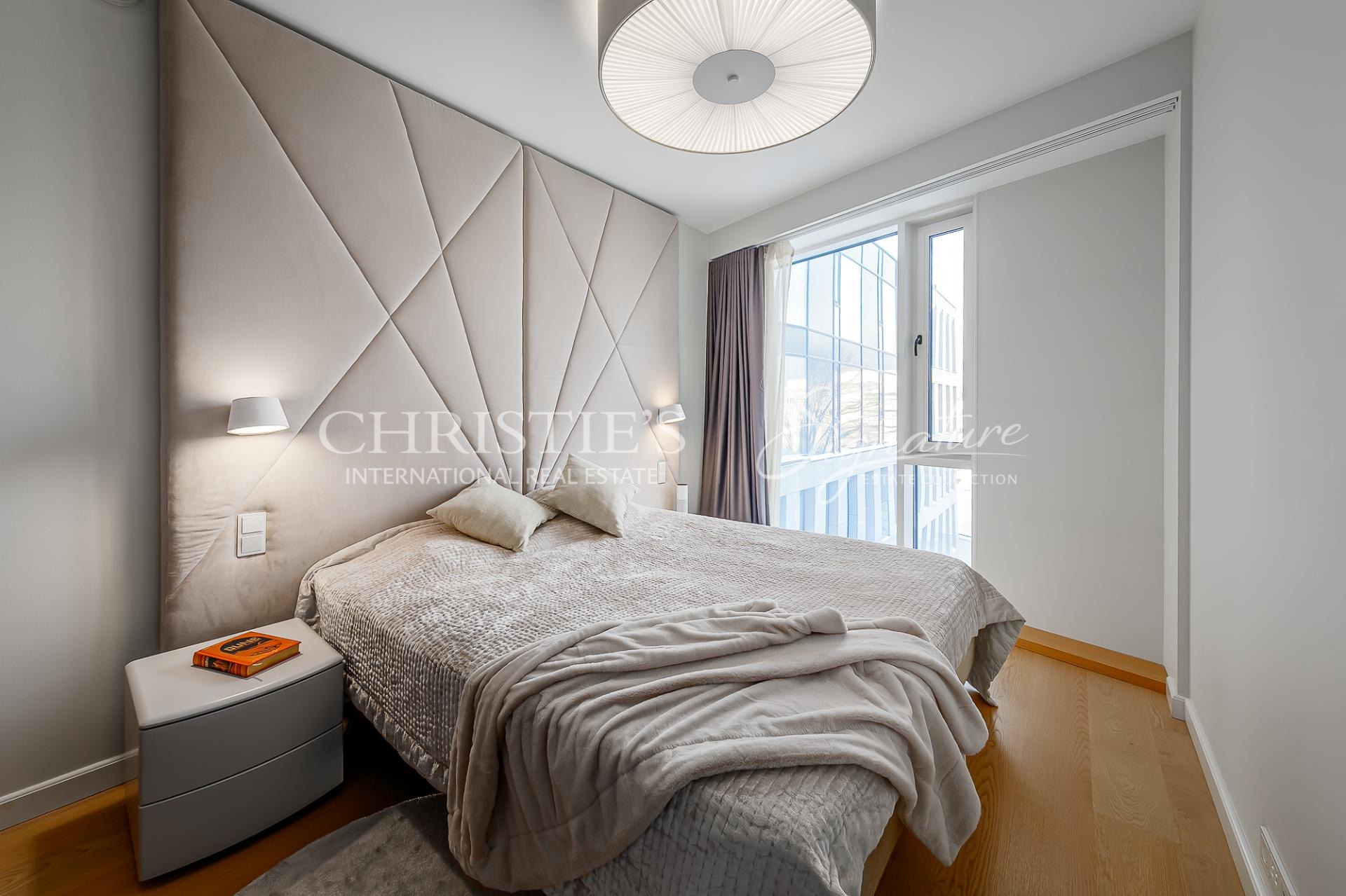 The apartment is equipped with water-based underfloor heating, a heat-recovery ventilation system, and cooling, ensuring a comfortable indoor climate throughout the year.