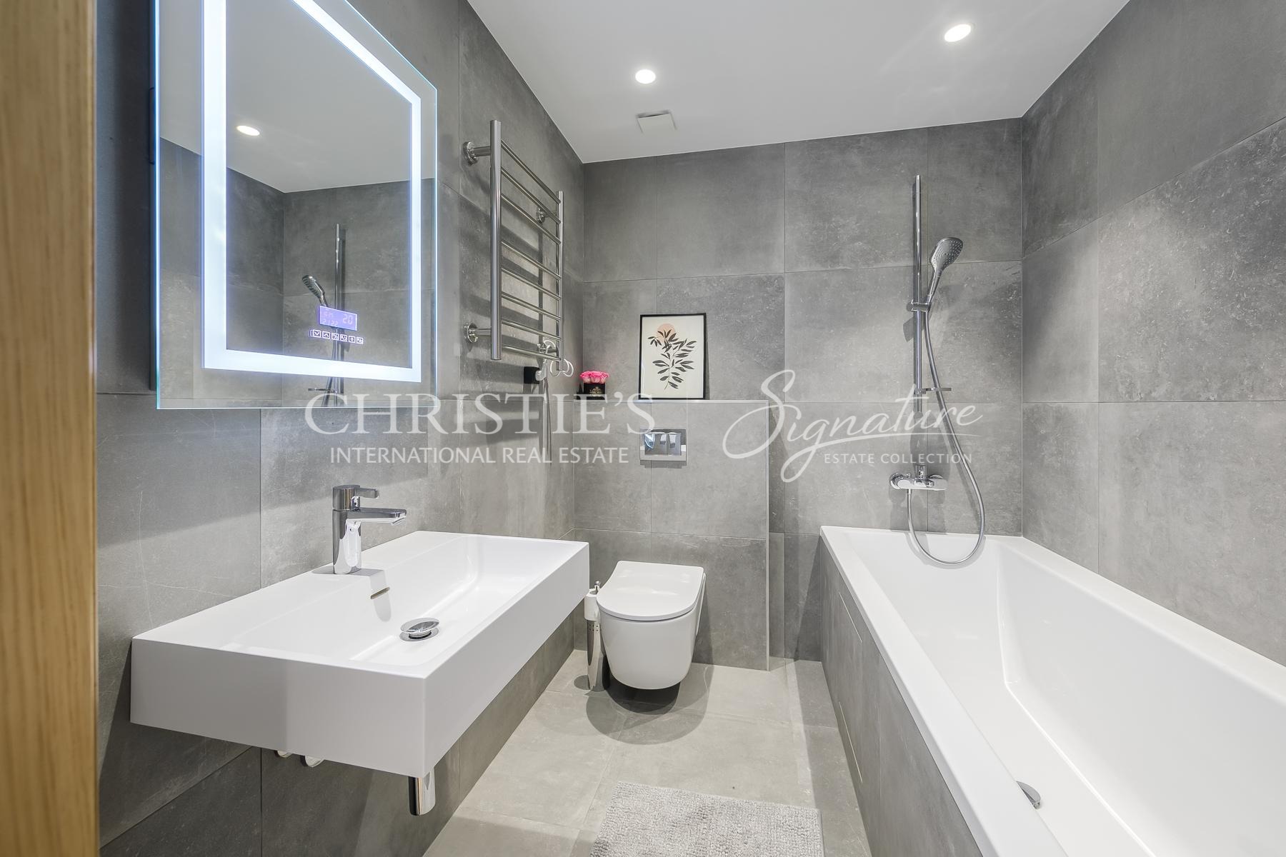 The apartment is furnished with care and love so that its resident can feel as at home as possible. The quality of the furnishings is indicated by "Design by Casa Andretti" custom-made wooden furniture, "Design by Caesarstone" marble quartz kitchen countertops and much more that offers both comfort and eye-pleasing.