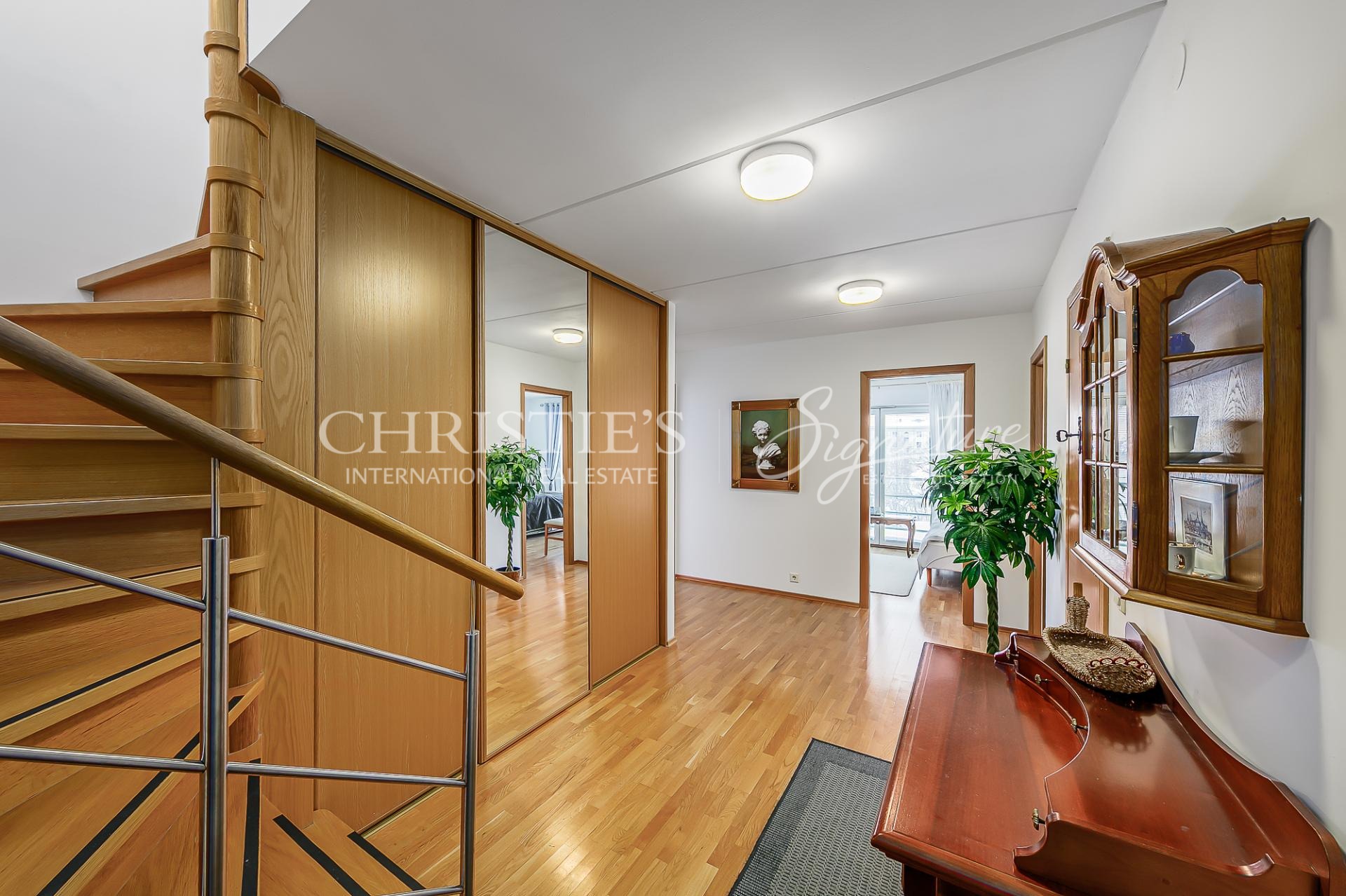 The entrance on the 7th floor leads to the floor with 3 bedrooms, a bathroom with a sauna and a large hallway with a spacious wardrobe.