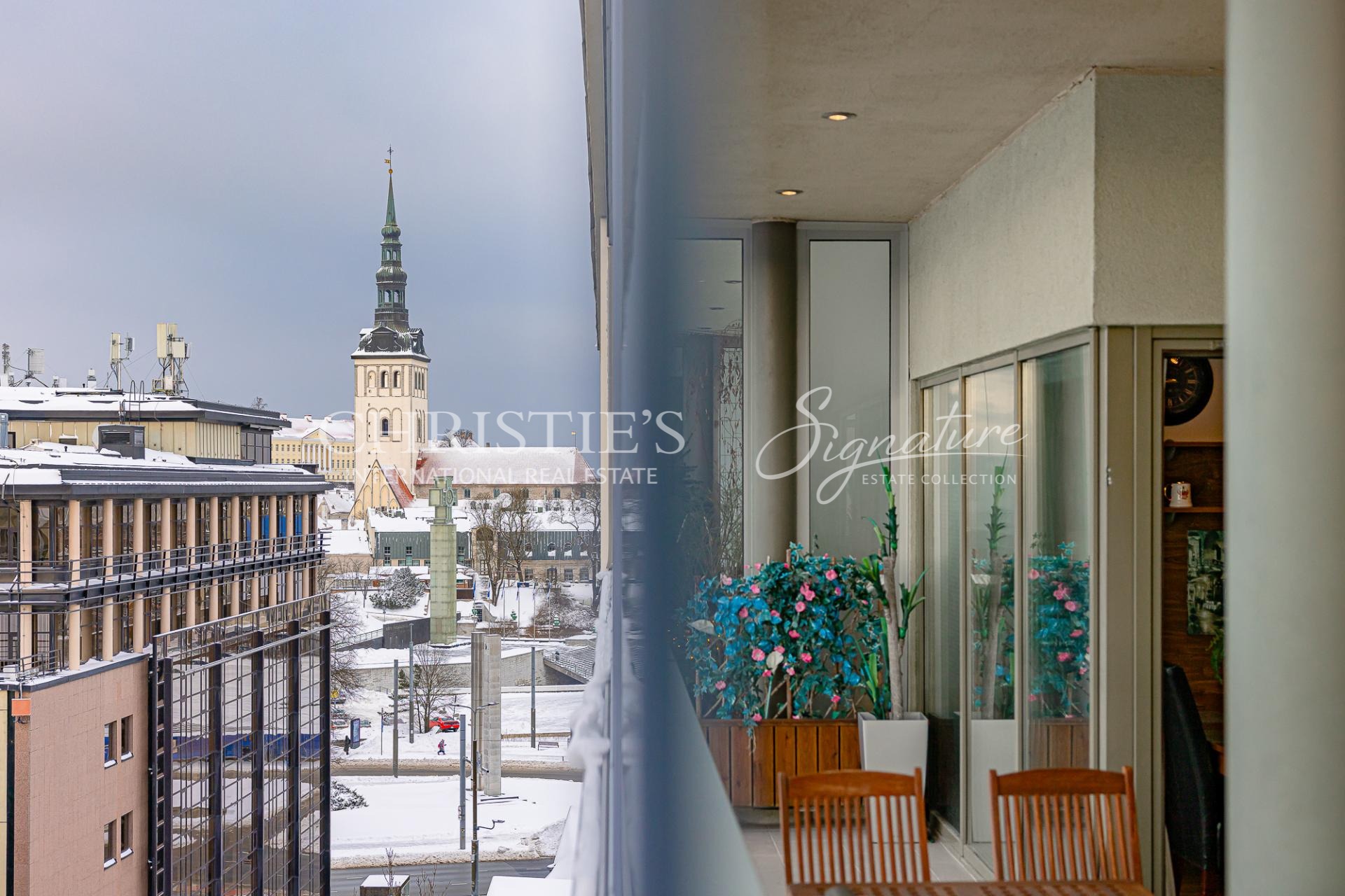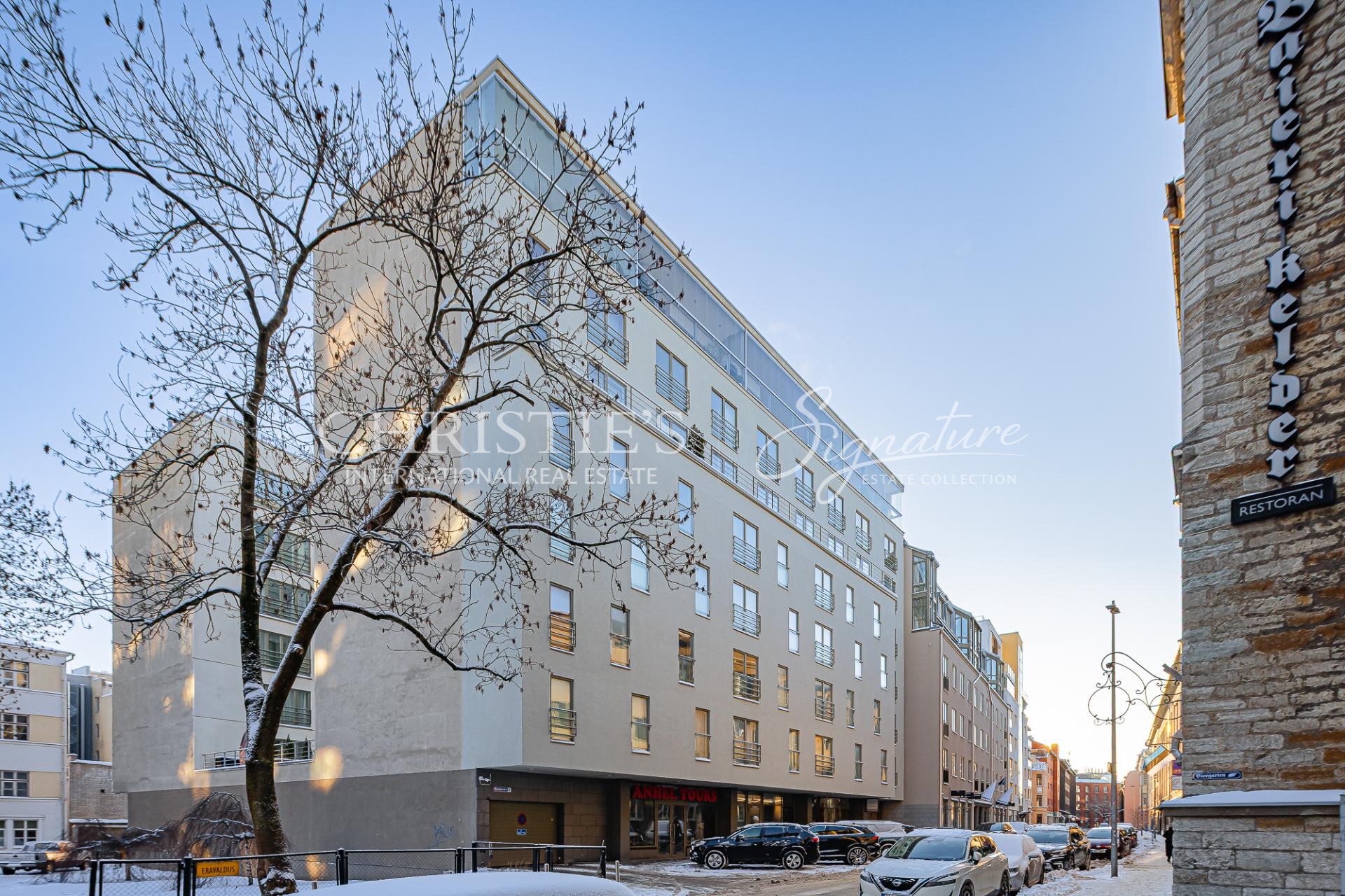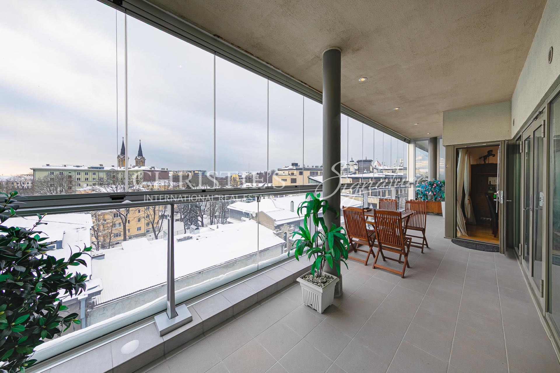 A three-bedroom, two-story penthouse apartment is for sale in the city center, on Roosikrantsi Street. The apartment has 2 entrances: