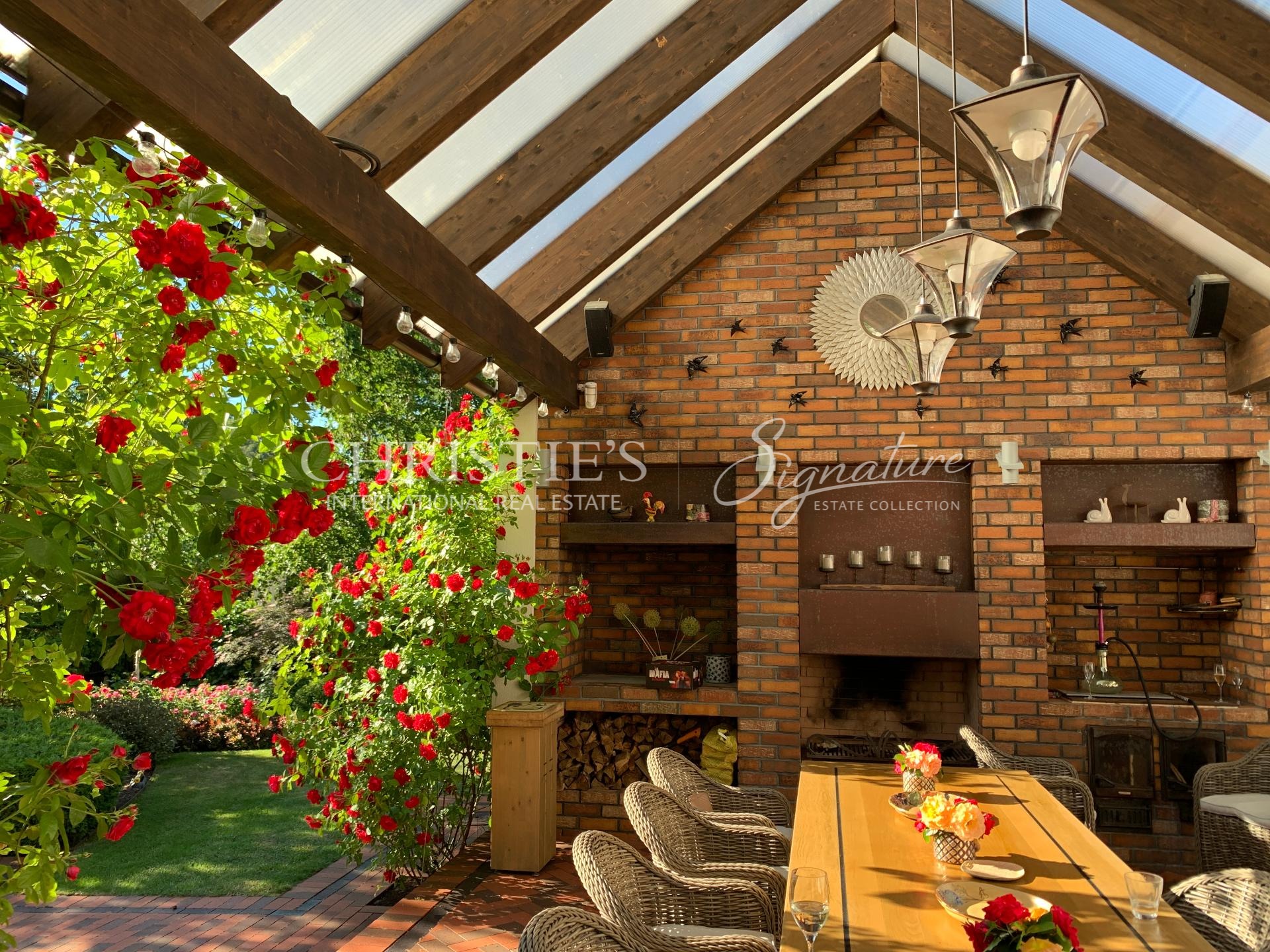 The beautifully landscaped and well-maintained garden offers privacy and visual enjoyment throughout the year. It also features a cozy summer kitchen, perfect for enjoying long summer evenings with family and friends.