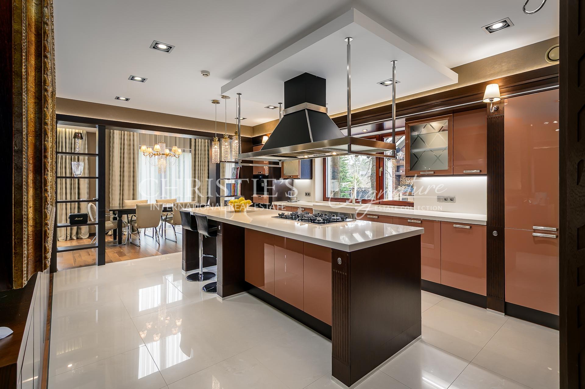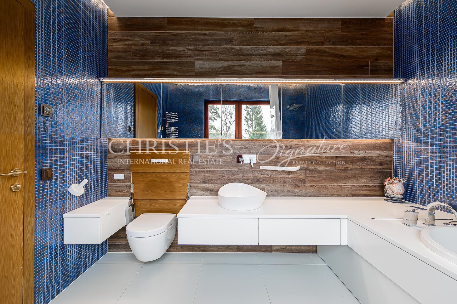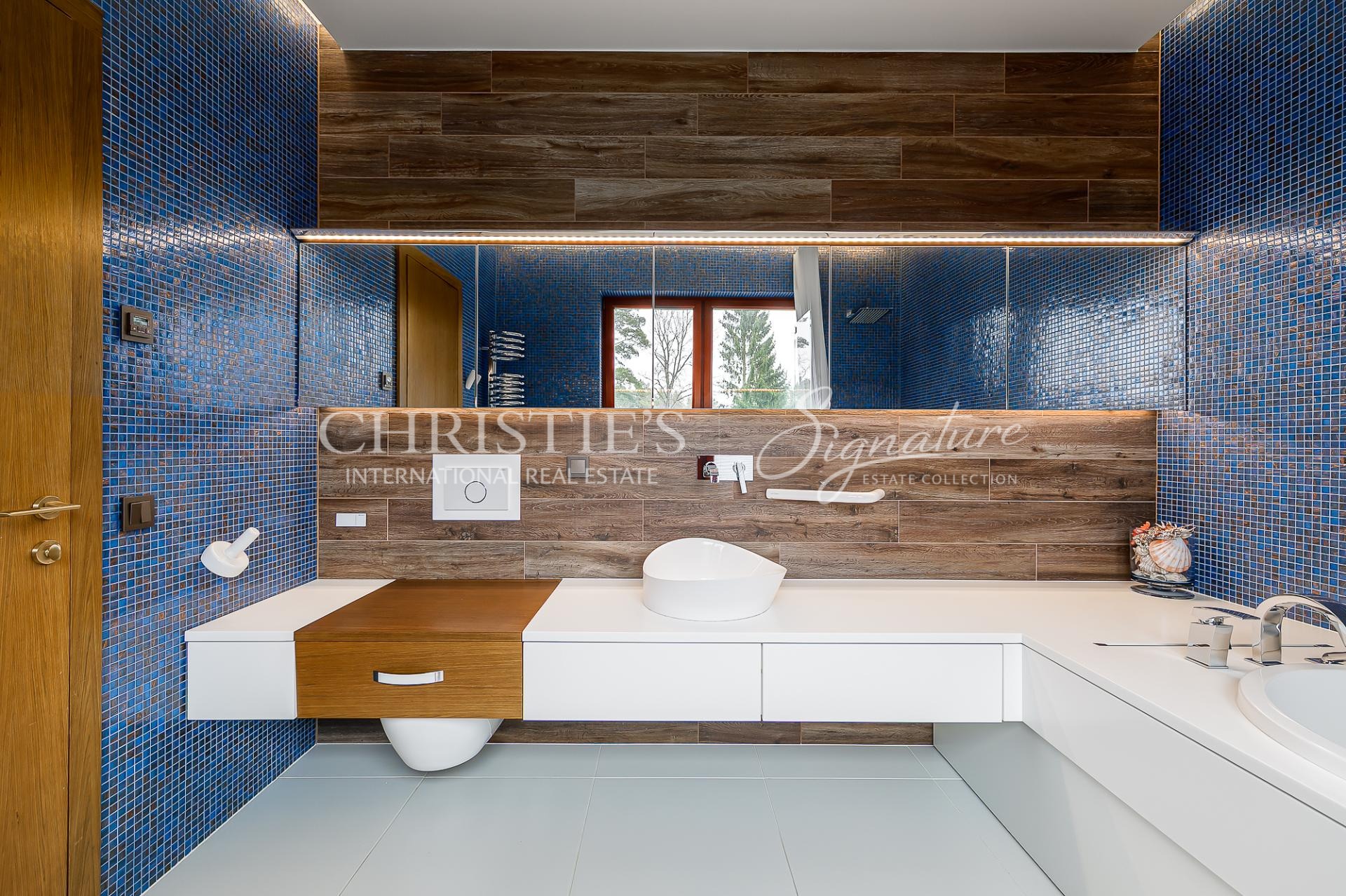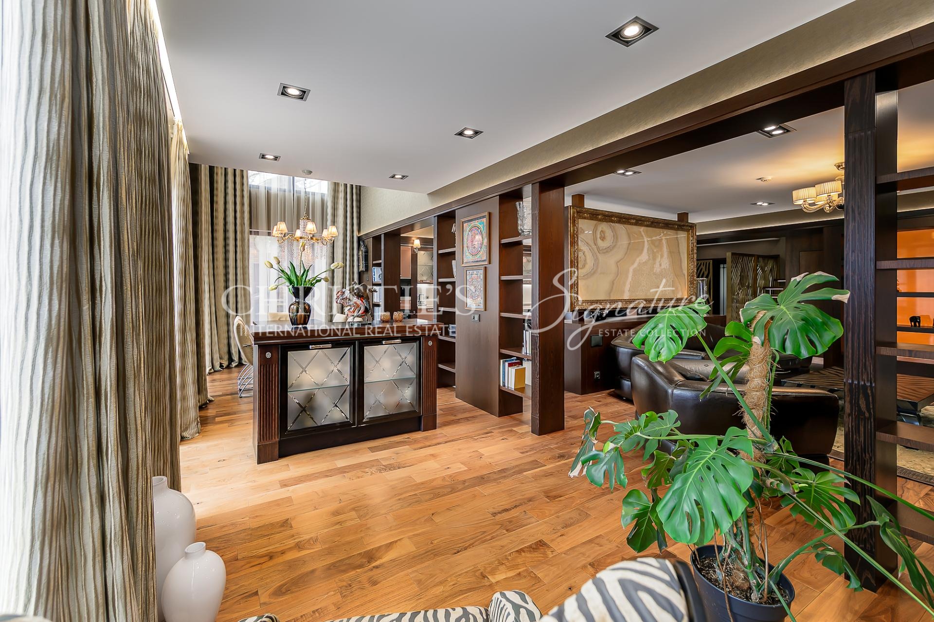 All furniture in the house has been custom-made according to bespoke design solutions, using high-quality natural materials such as wood, marble, and stone.