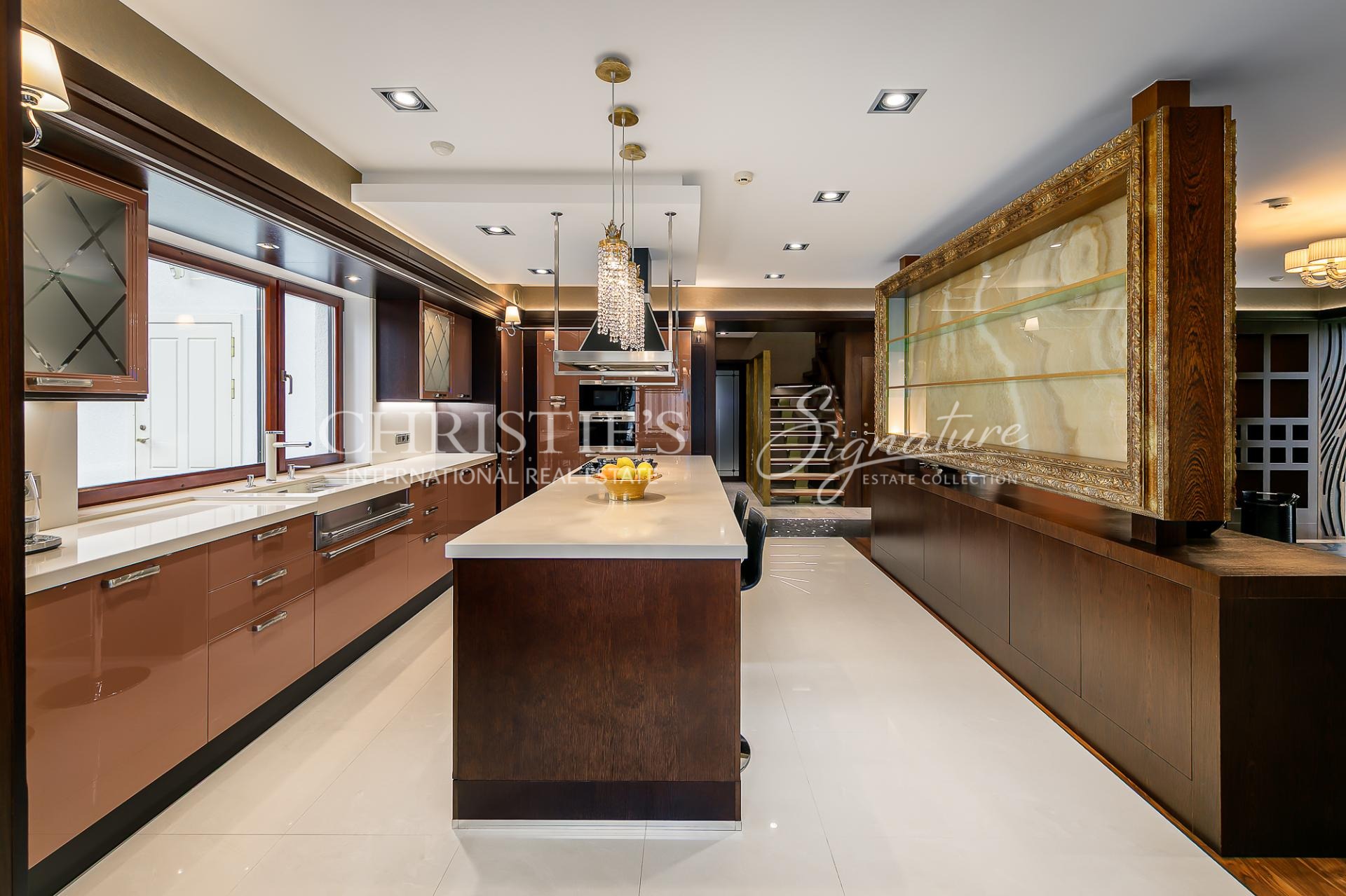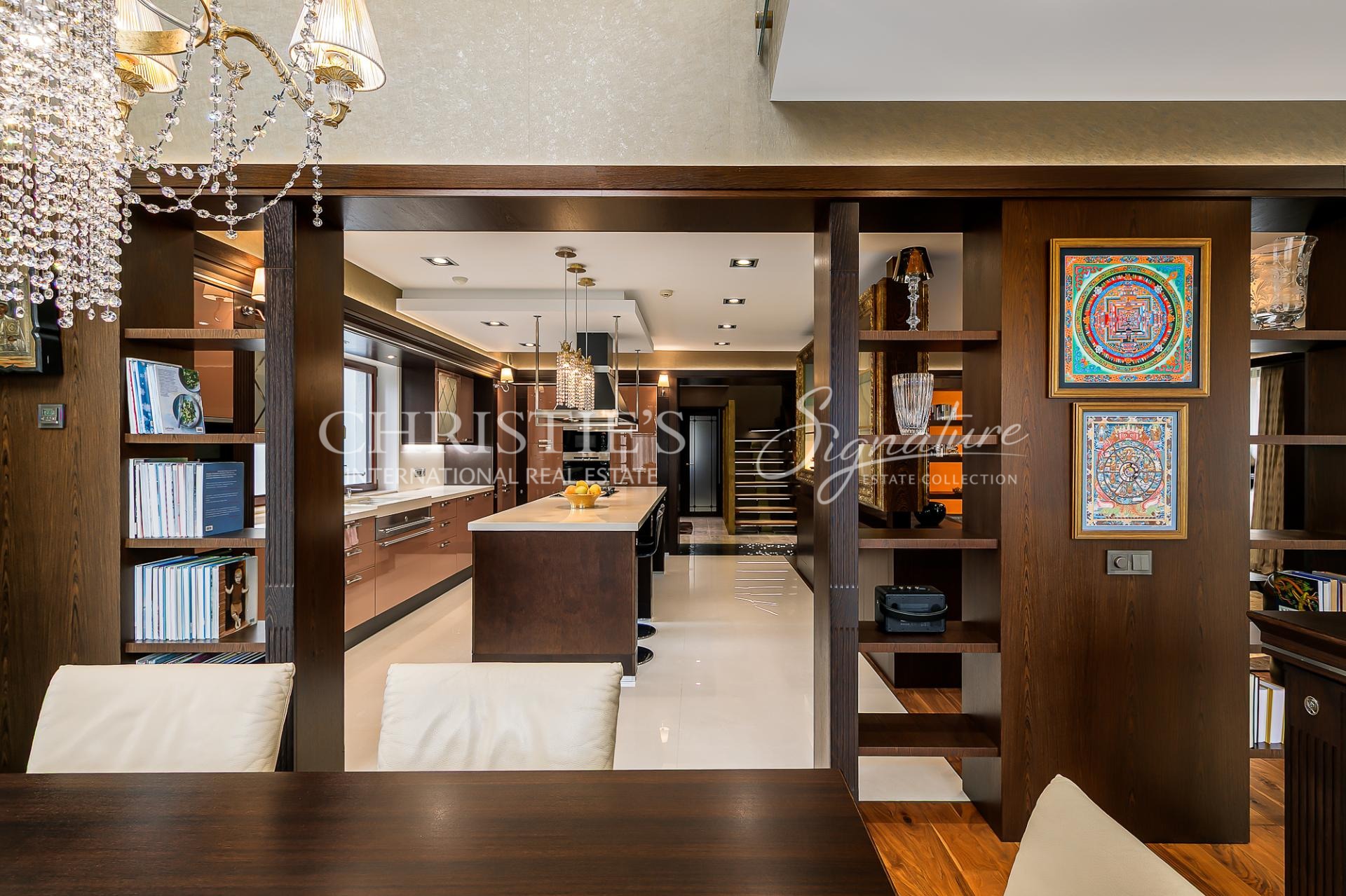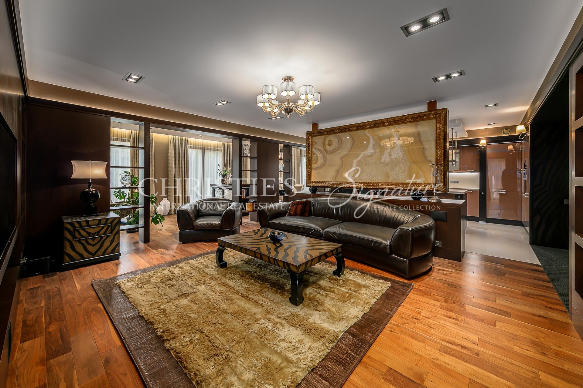 All furniture in the house has been custom-made according to bespoke design solutions, using high-quality natural materials such as wood, marble, and stone.