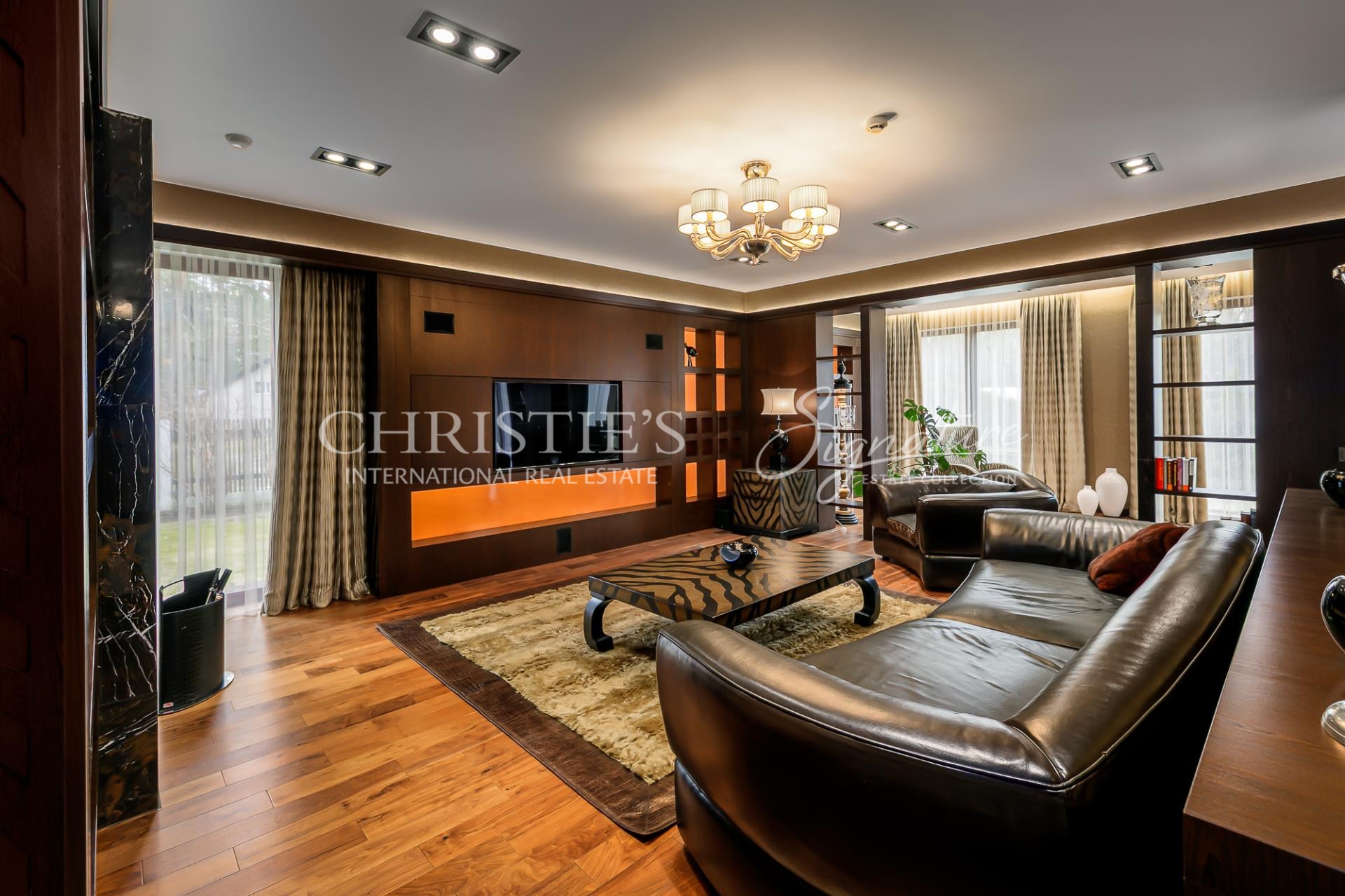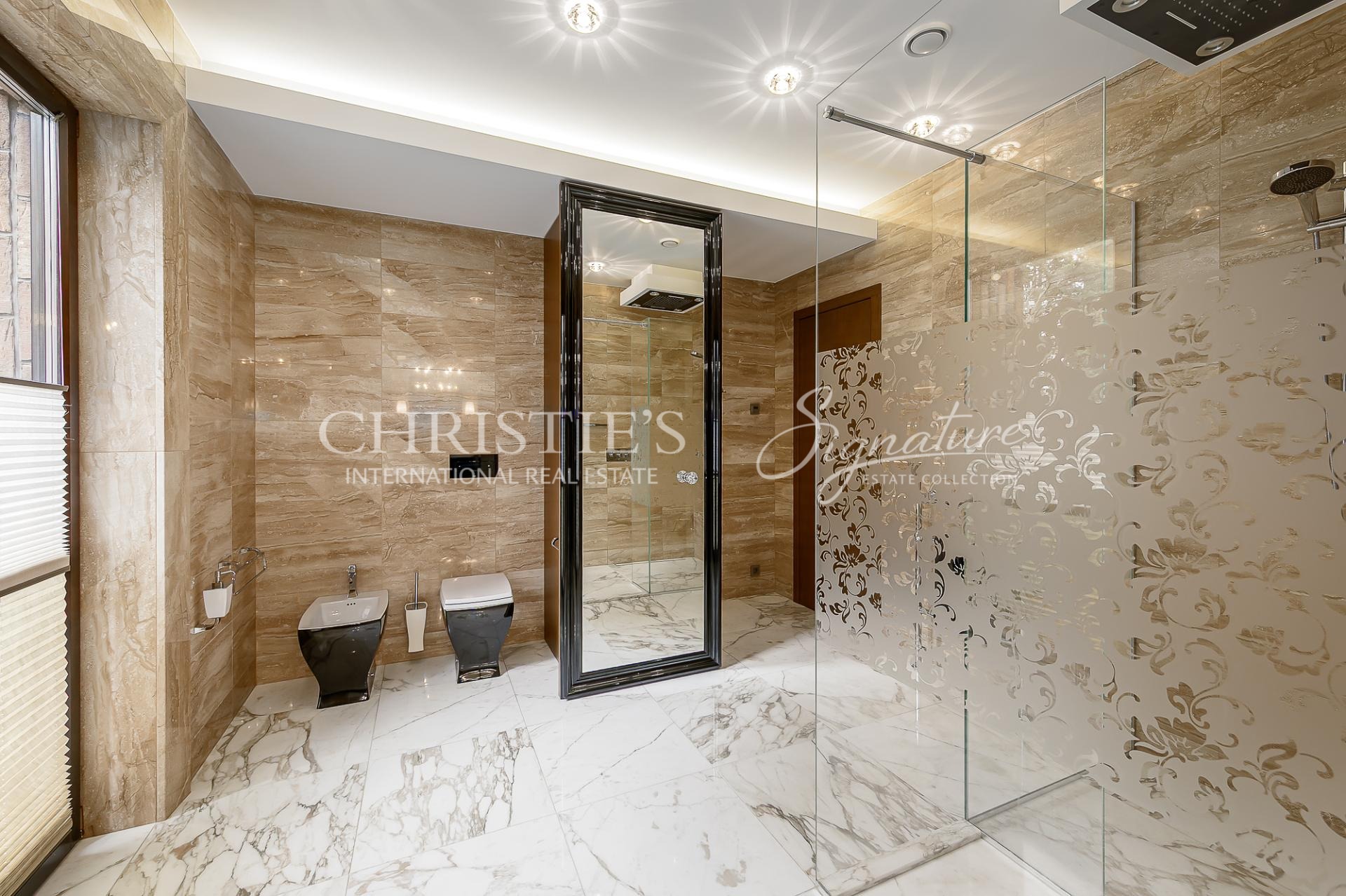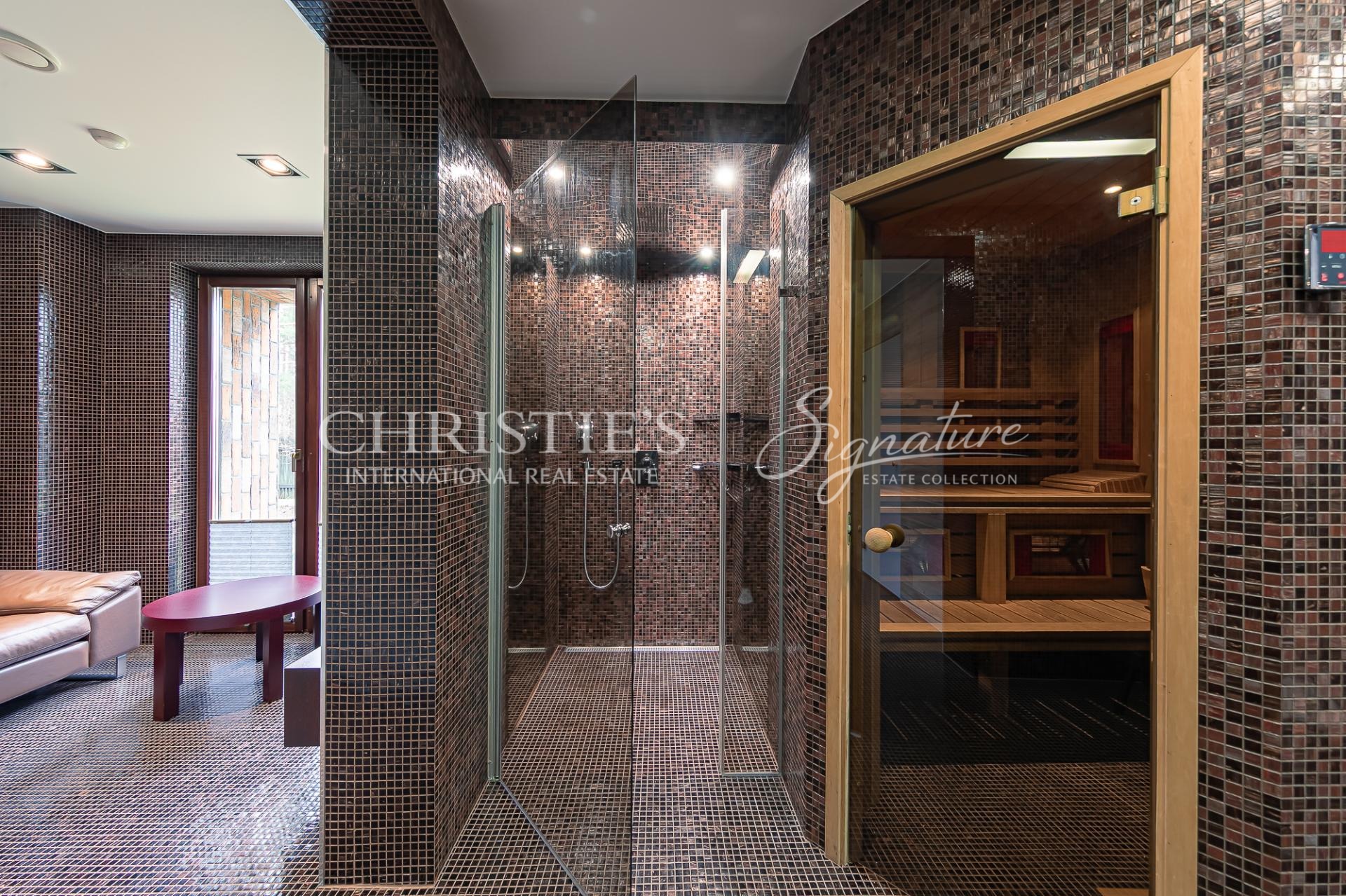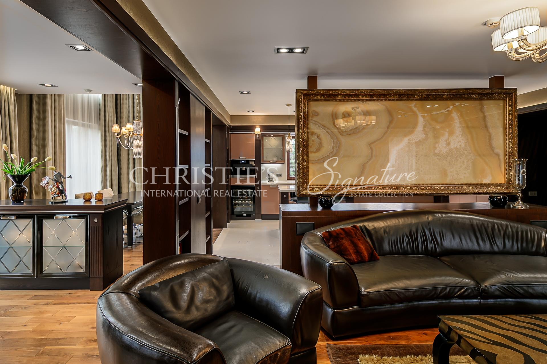 All furniture in the house has been custom-made according to bespoke design solutions, using high-quality natural materials such as wood, marble, and stone.