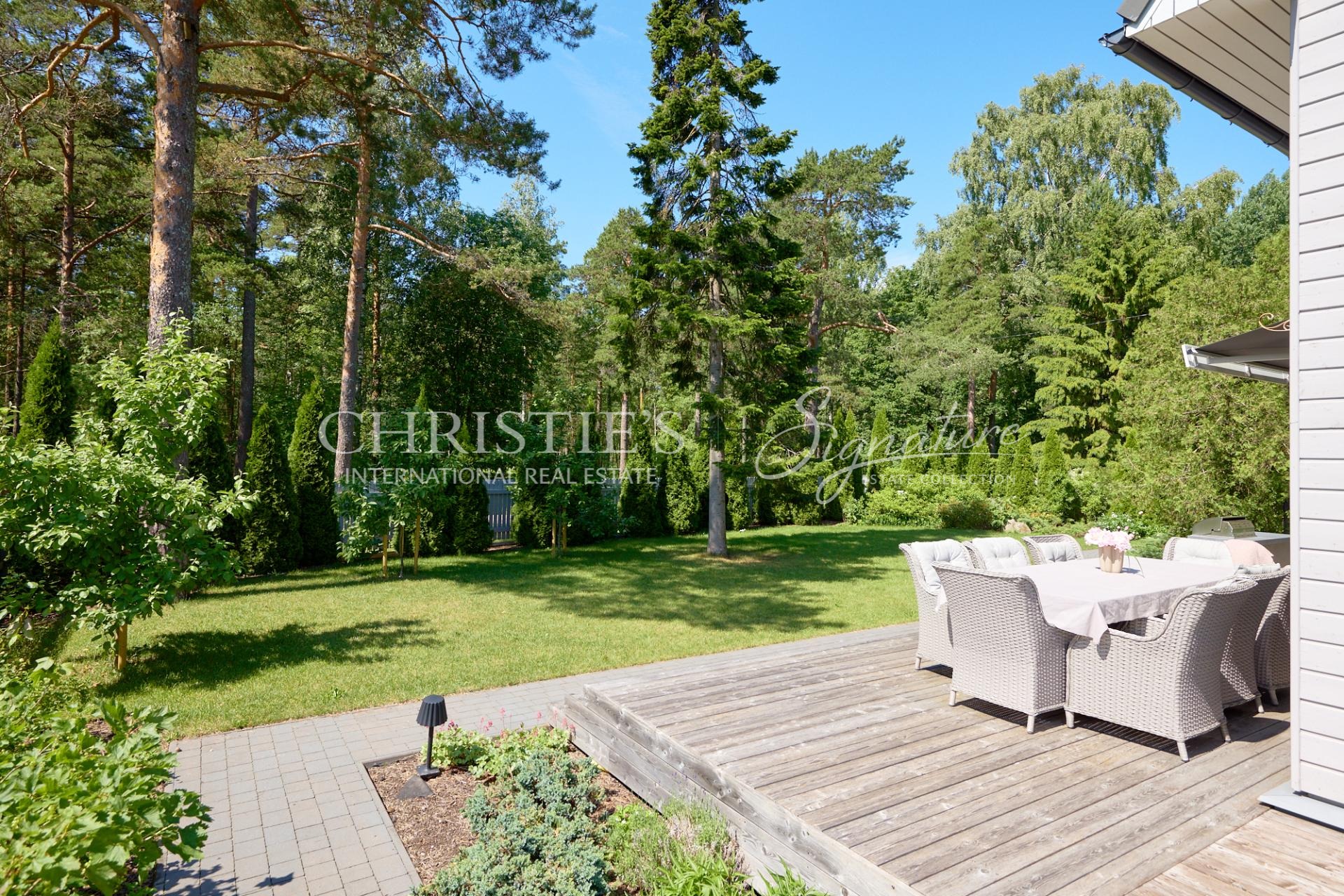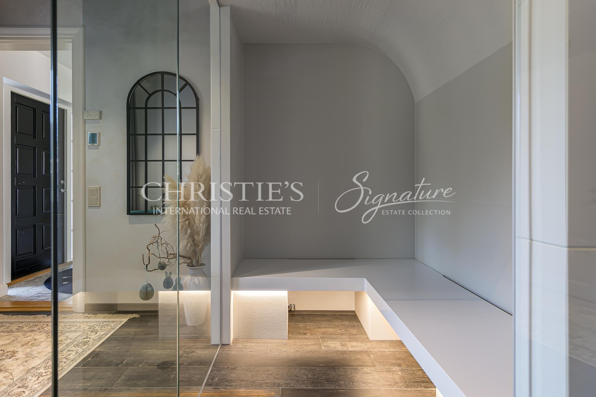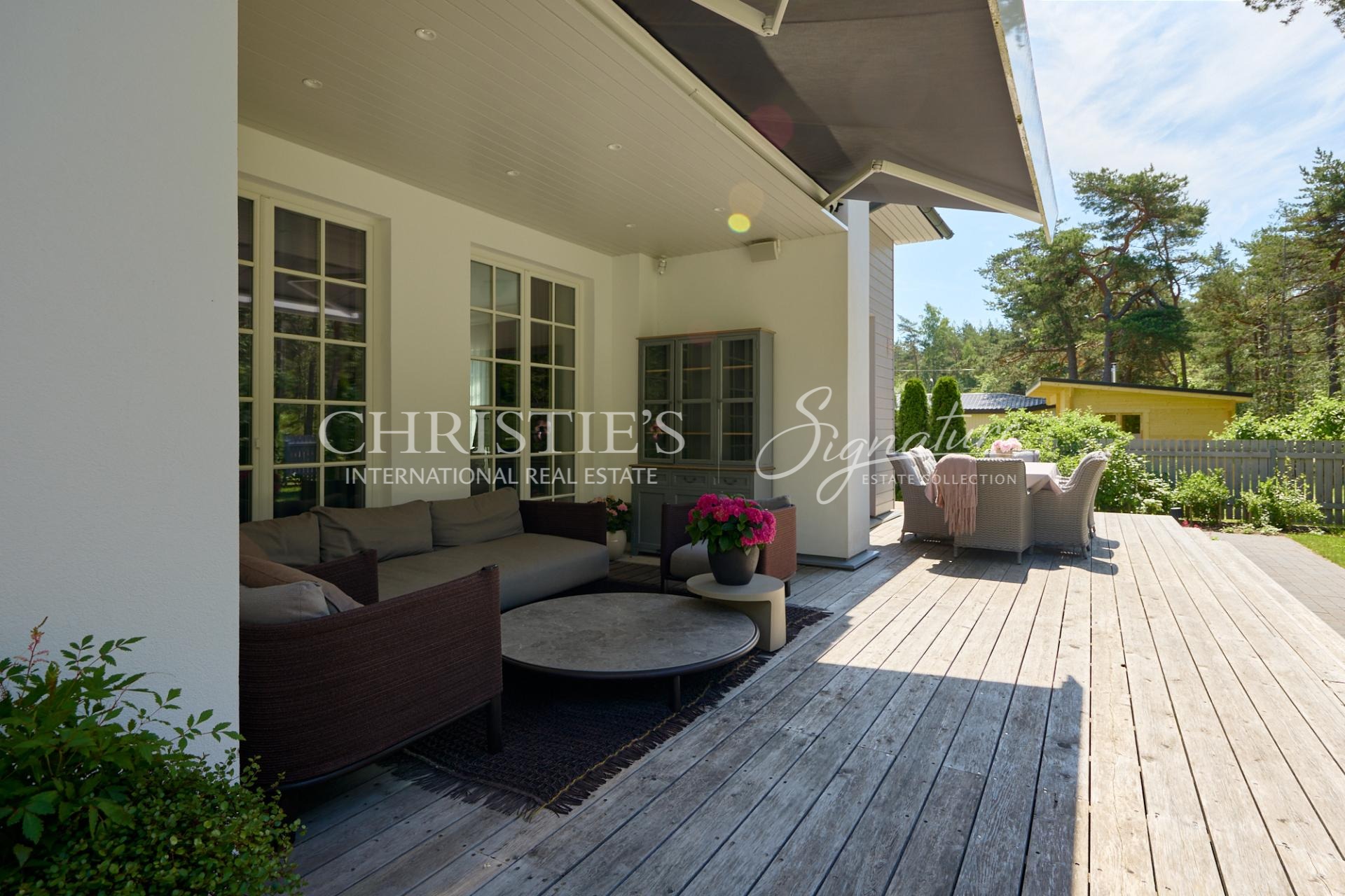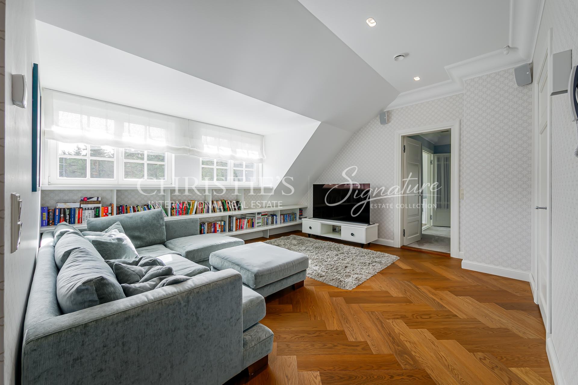 This spacious and bright villa has an extremely large living and dining room with a fireplace, a separate practical kitchen, a stunning spa complex with a swimming pool, steam and Finnish sauna. On the second floor there is a second living room, a large master bedroom with an en-suite bathroom and a dressing room. In addition, there are 3 additional bedrooms on the second floor, one of which has an en-suite bathroom and the other bedrooms use the third bathroom. There is also a practical utility room on the second floor. The house also has a basement floor, where in addition to utility rooms, a gym and a sports room are located.