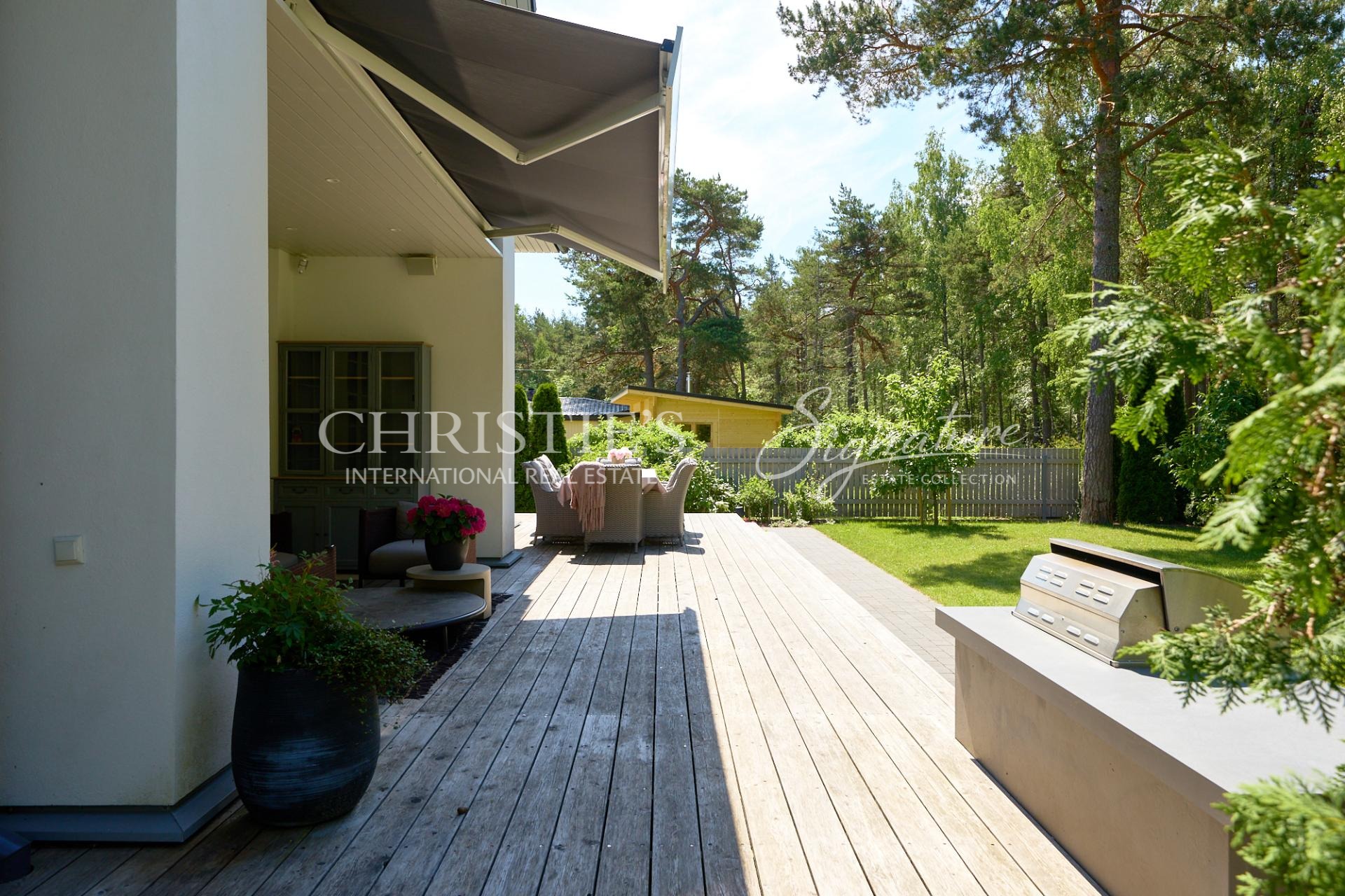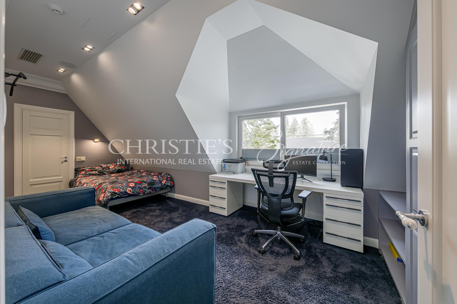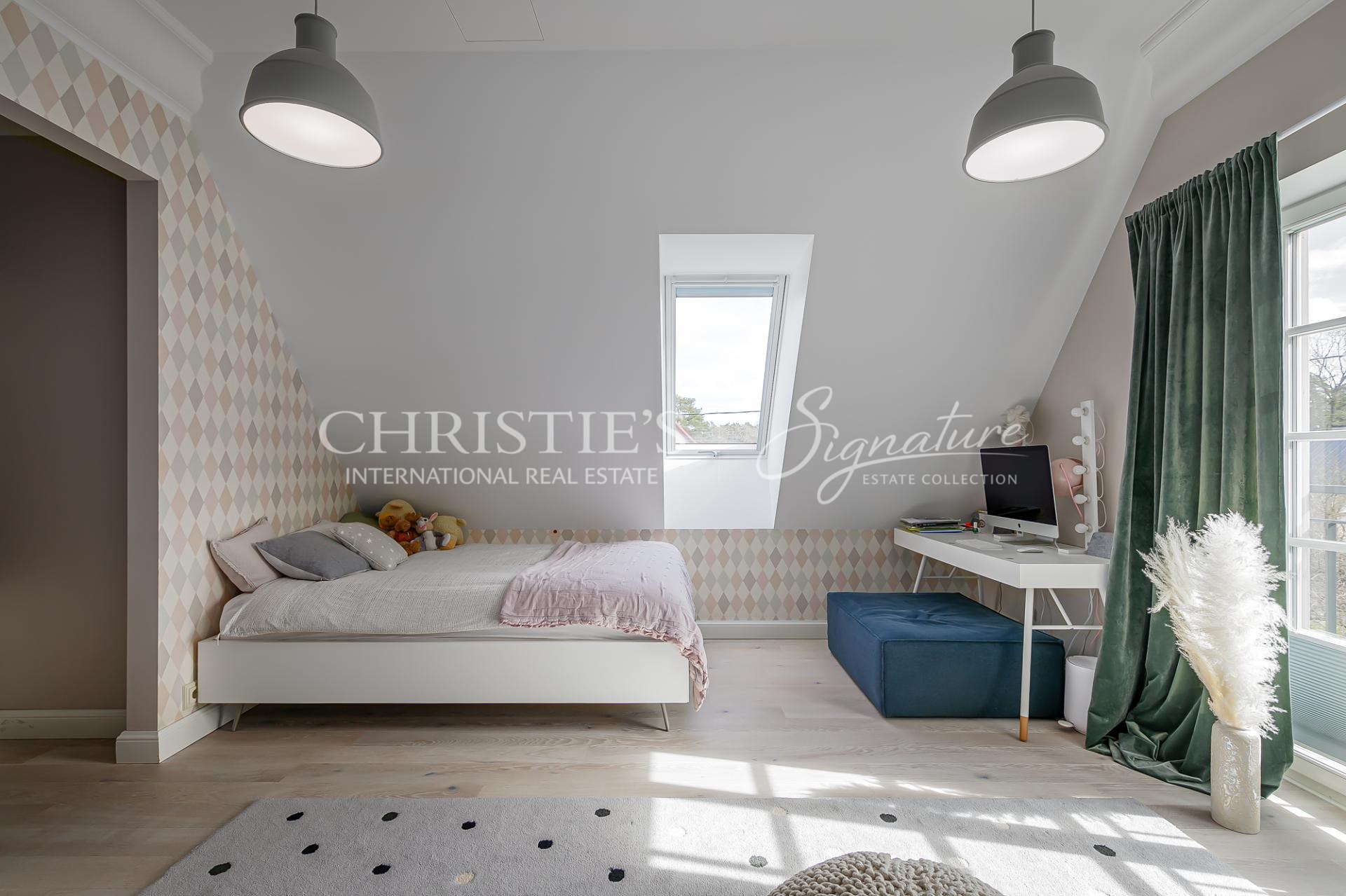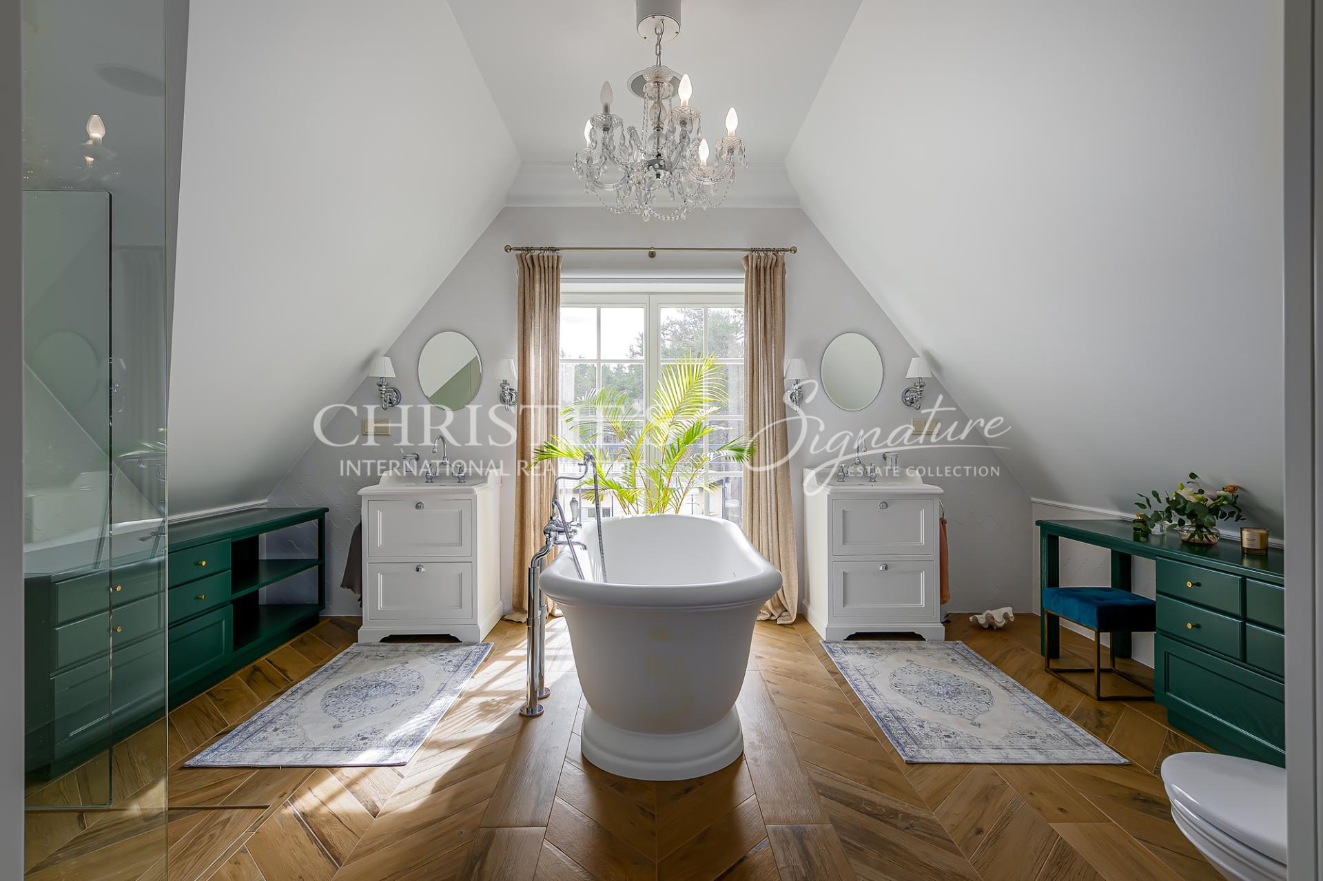 This spacious and bright villa has an extremely large living and dining room with a fireplace, a separate practical kitchen, a stunning spa complex with a swimming pool, steam and Finnish sauna. On the second floor there is a second living room, a large master bedroom with an en-suite bathroom and a dressing room. In addition, there are 3 additional bedrooms on the second floor, one of which has an en-suite bathroom and the other bedrooms use the third bathroom. There is also a practical utility room on the second floor. The house also has a basement floor, where in addition to utility rooms, a gym and a sports room are located.