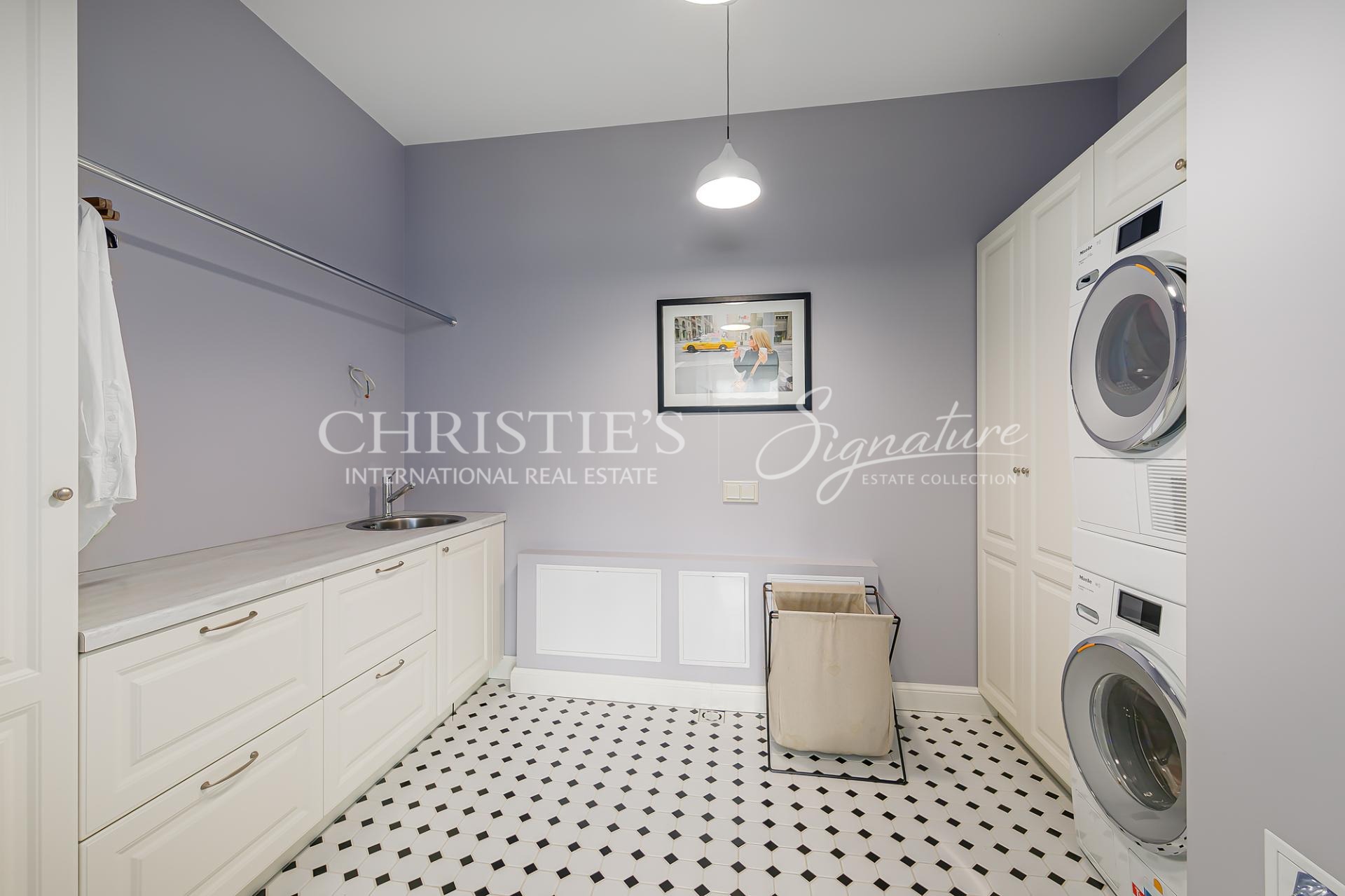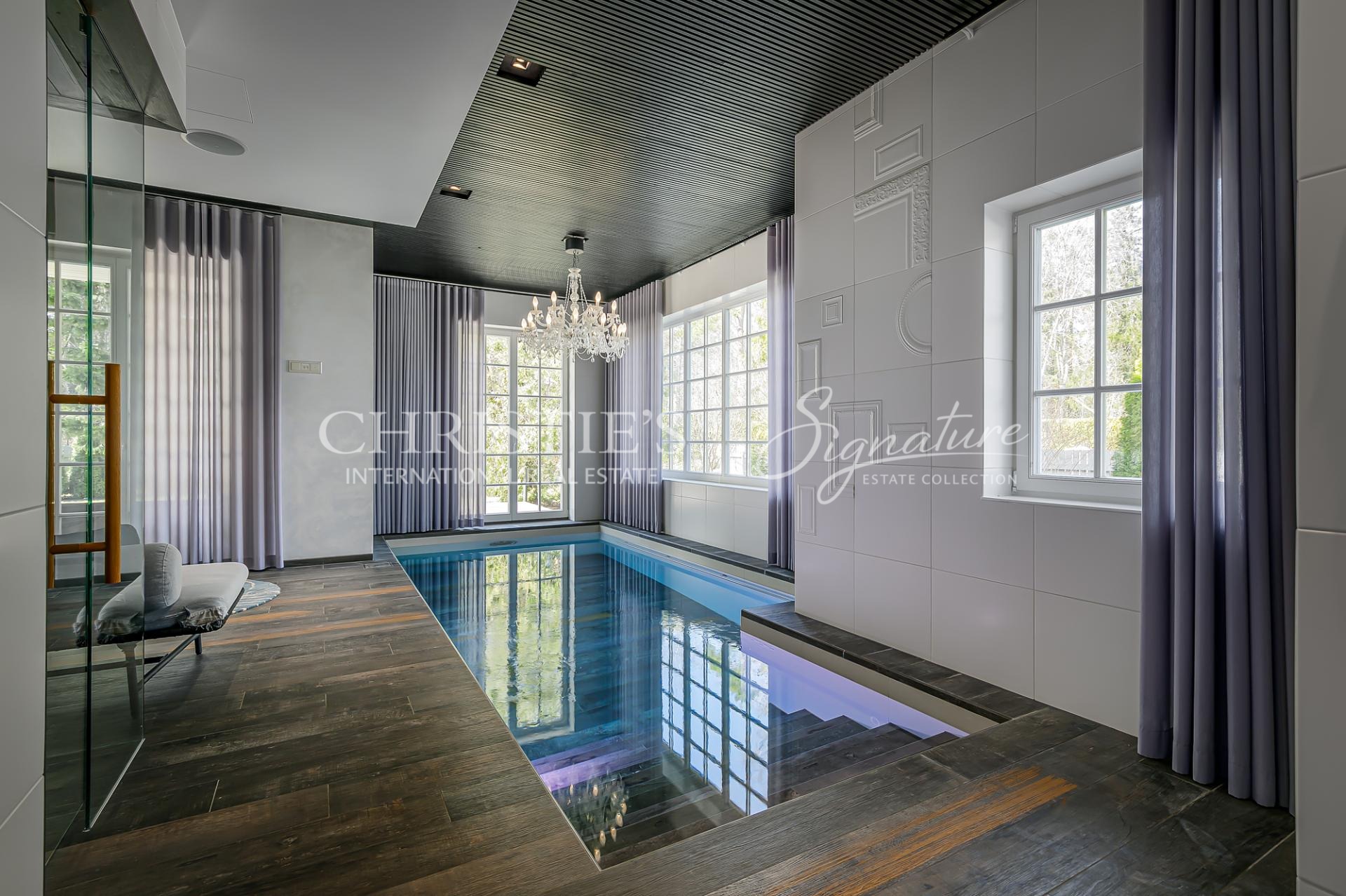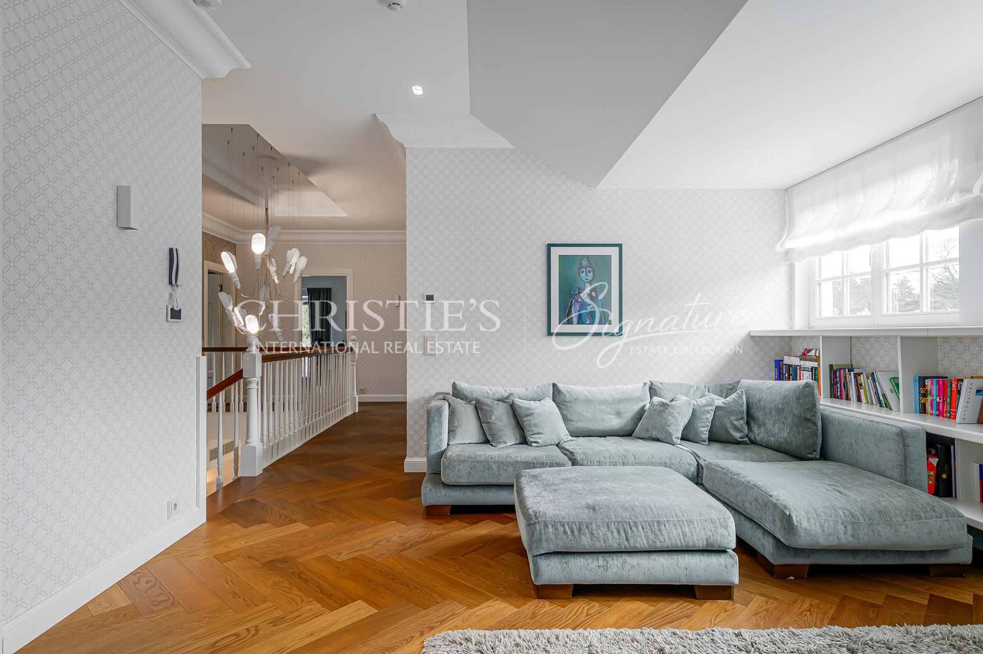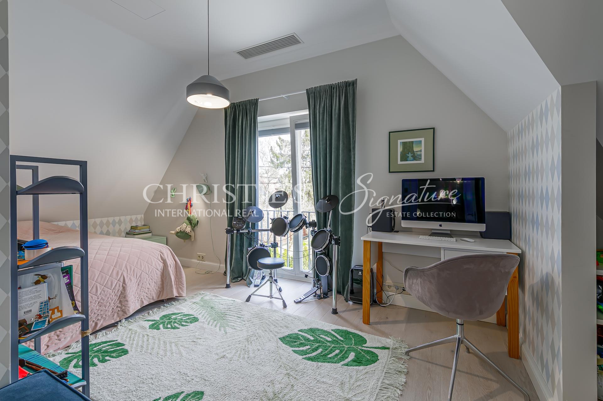 This spacious and bright villa has an extremely large living and dining room with a fireplace, a separate practical kitchen, a stunning spa complex with a swimming pool, steam and Finnish sauna. On the second floor there is a second living room, a large master bedroom with an en-suite bathroom and a dressing room. In addition, there are 3 additional bedrooms on the second floor, one of which has an en-suite bathroom and the other bedrooms use the third bathroom. There is also a practical utility room on the second floor. The house also has a basement floor, where in addition to utility rooms, a gym and a sports room are located.