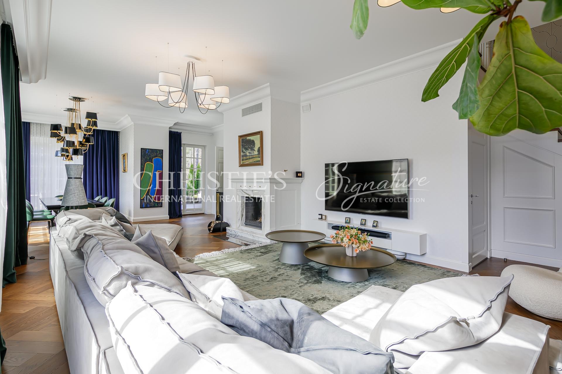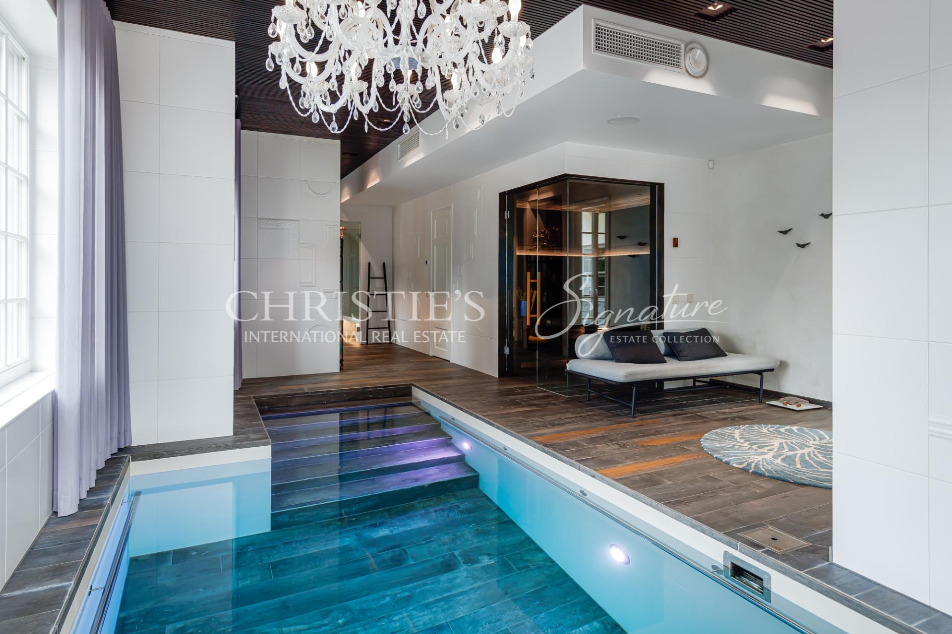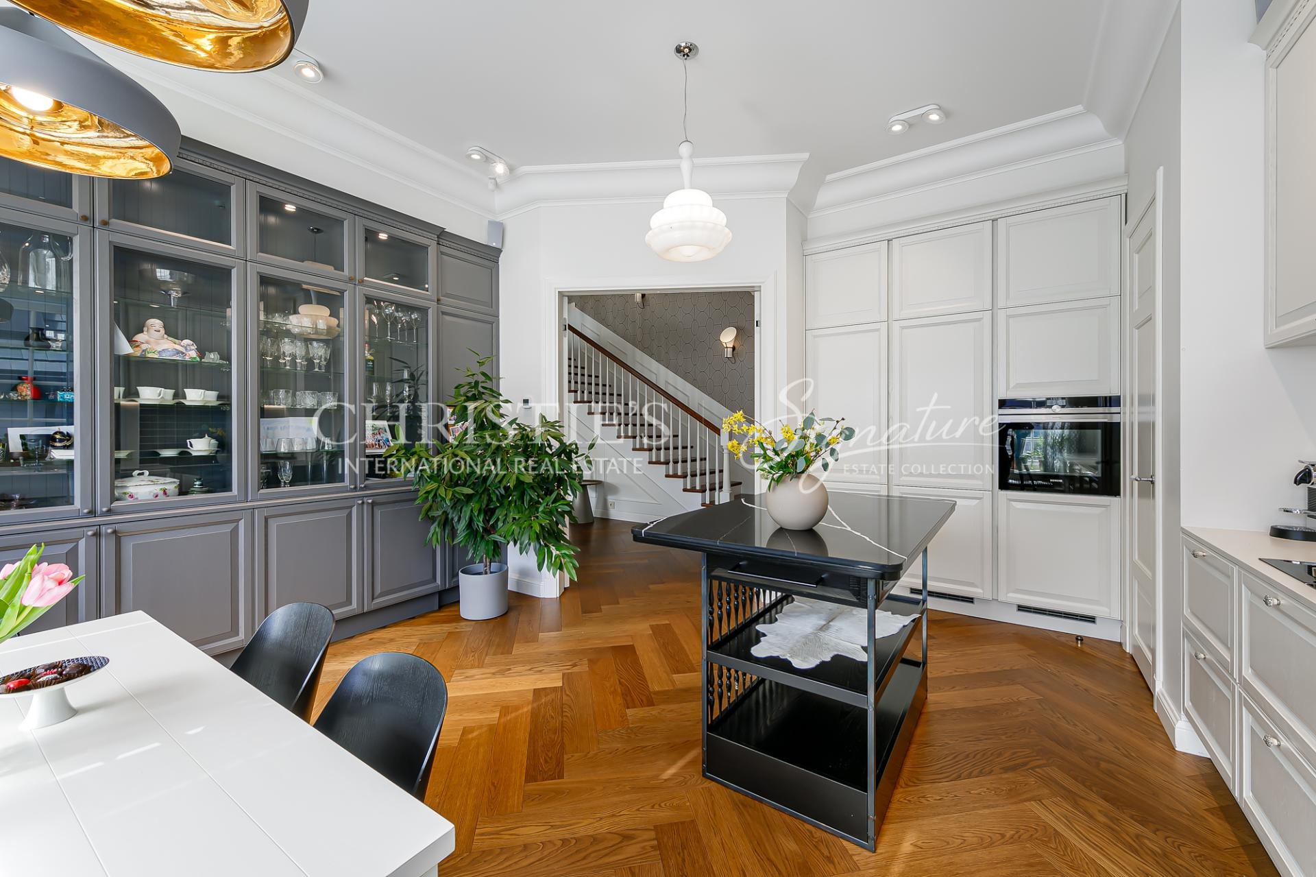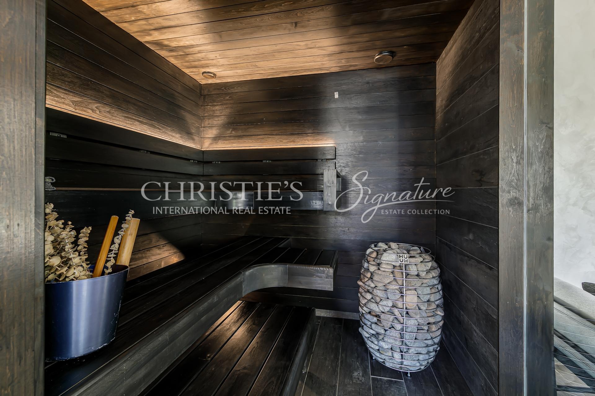 This spacious and bright villa has an extremely large living and dining room with a fireplace, a separate practical kitchen, a stunning spa complex with a swimming pool, steam and Finnish sauna. On the second floor there is a second living room, a large master bedroom with an en-suite bathroom and a dressing room. In addition, there are 3 additional bedrooms on the second floor, one of which has an en-suite bathroom and the other bedrooms use the third bathroom. There is also a practical utility room on the second floor. The house also has a basement floor, where in addition to utility rooms, a gym and a sports room are located.