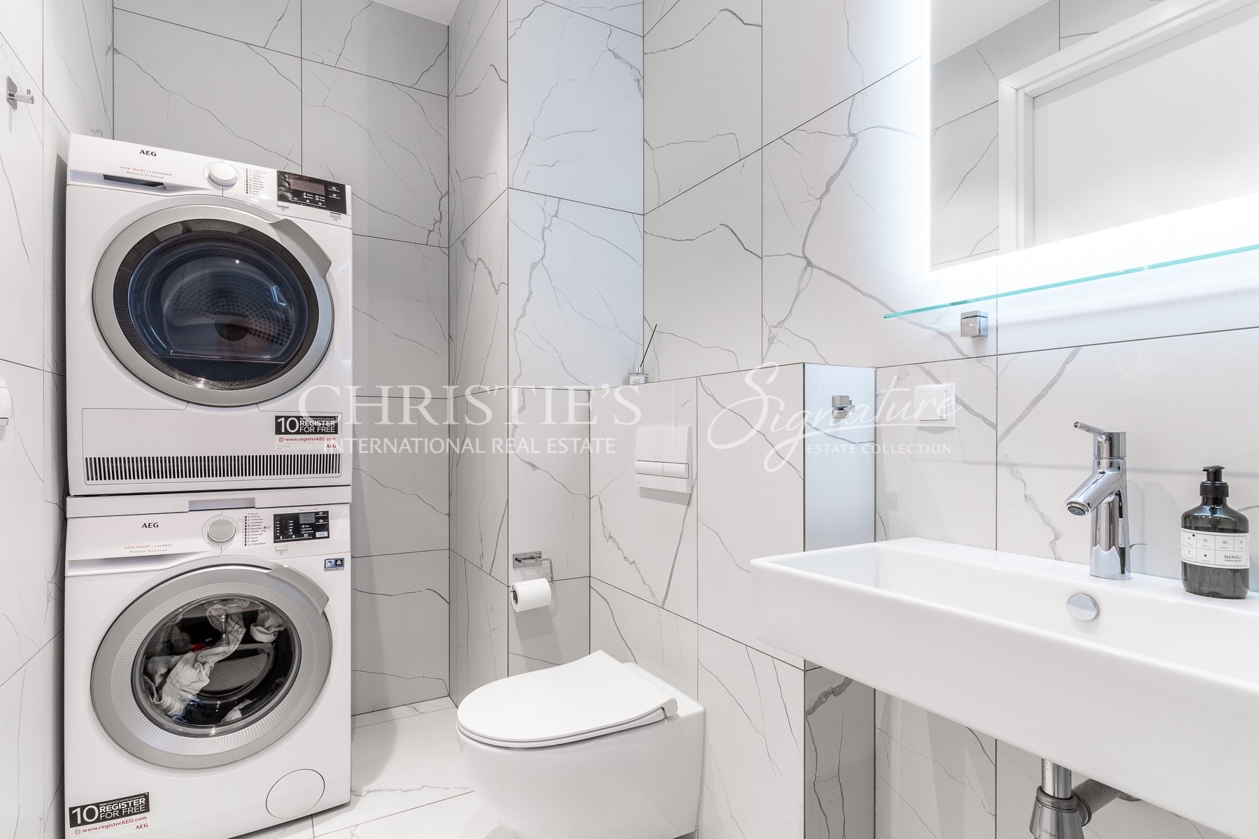 Vannituba on varustatud kaasaegse dušinurga ja pesumasina kuivatiga, täiustades teie igapäevaelu mugavust.